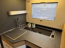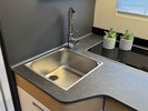 - Luxe hoek keuken die van alle gemakken is voorzien zoals o.a. een 3 pits gasfornuis, een afzuigkap, veel opbergruimte en een spoelbak met koud- en warmwaterkraan