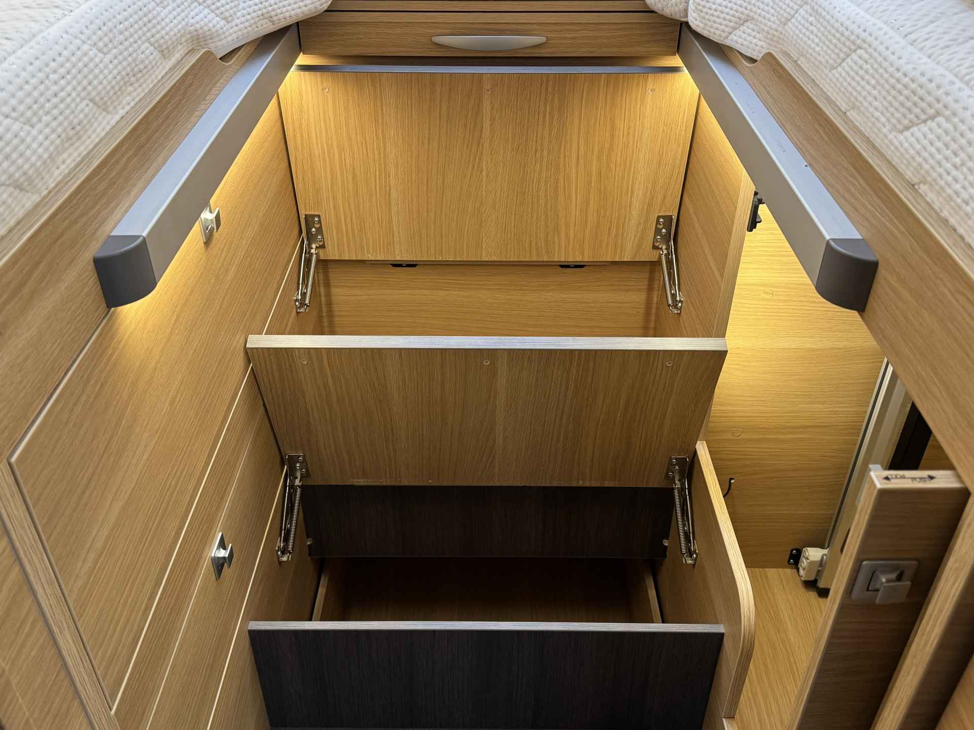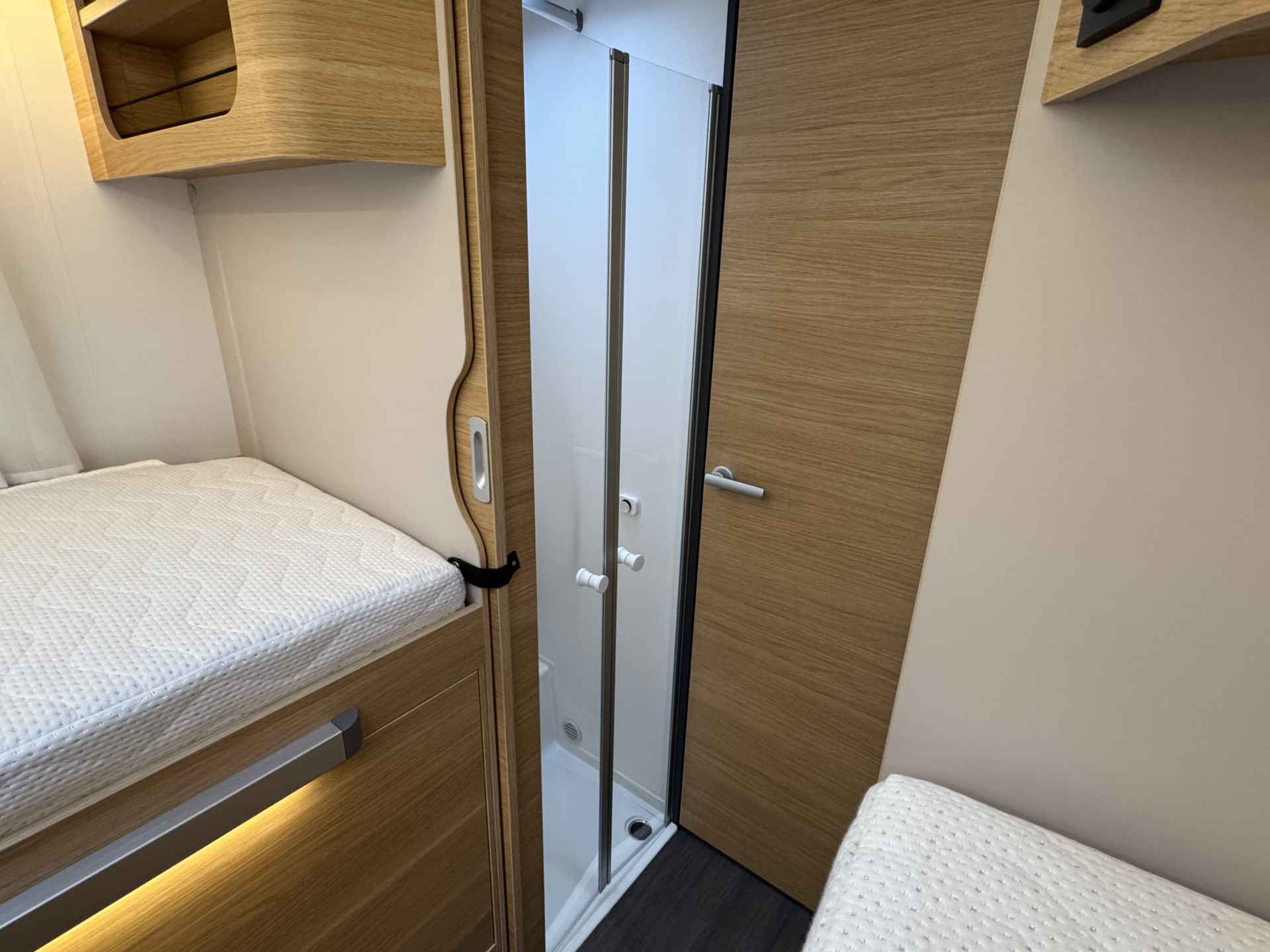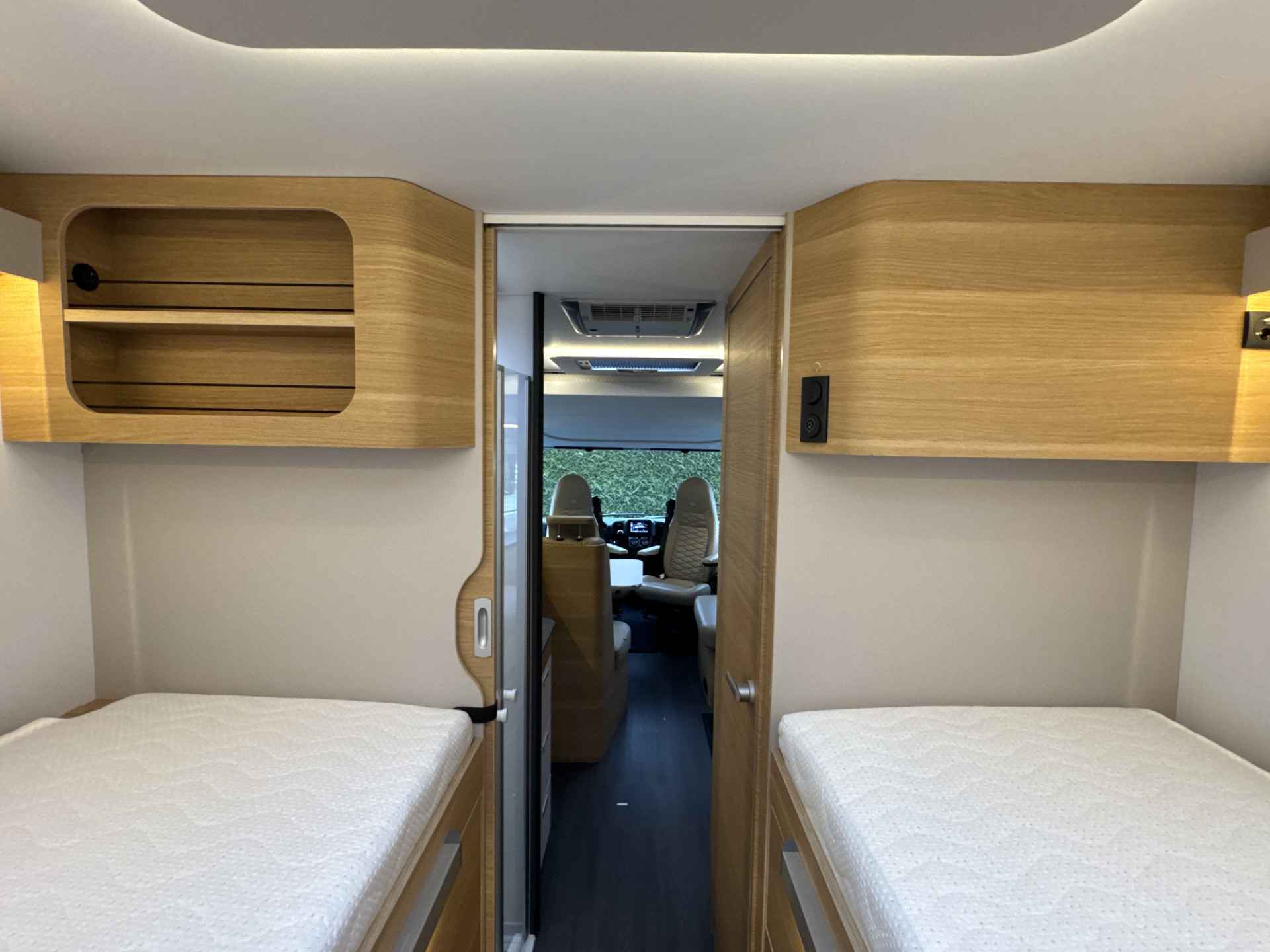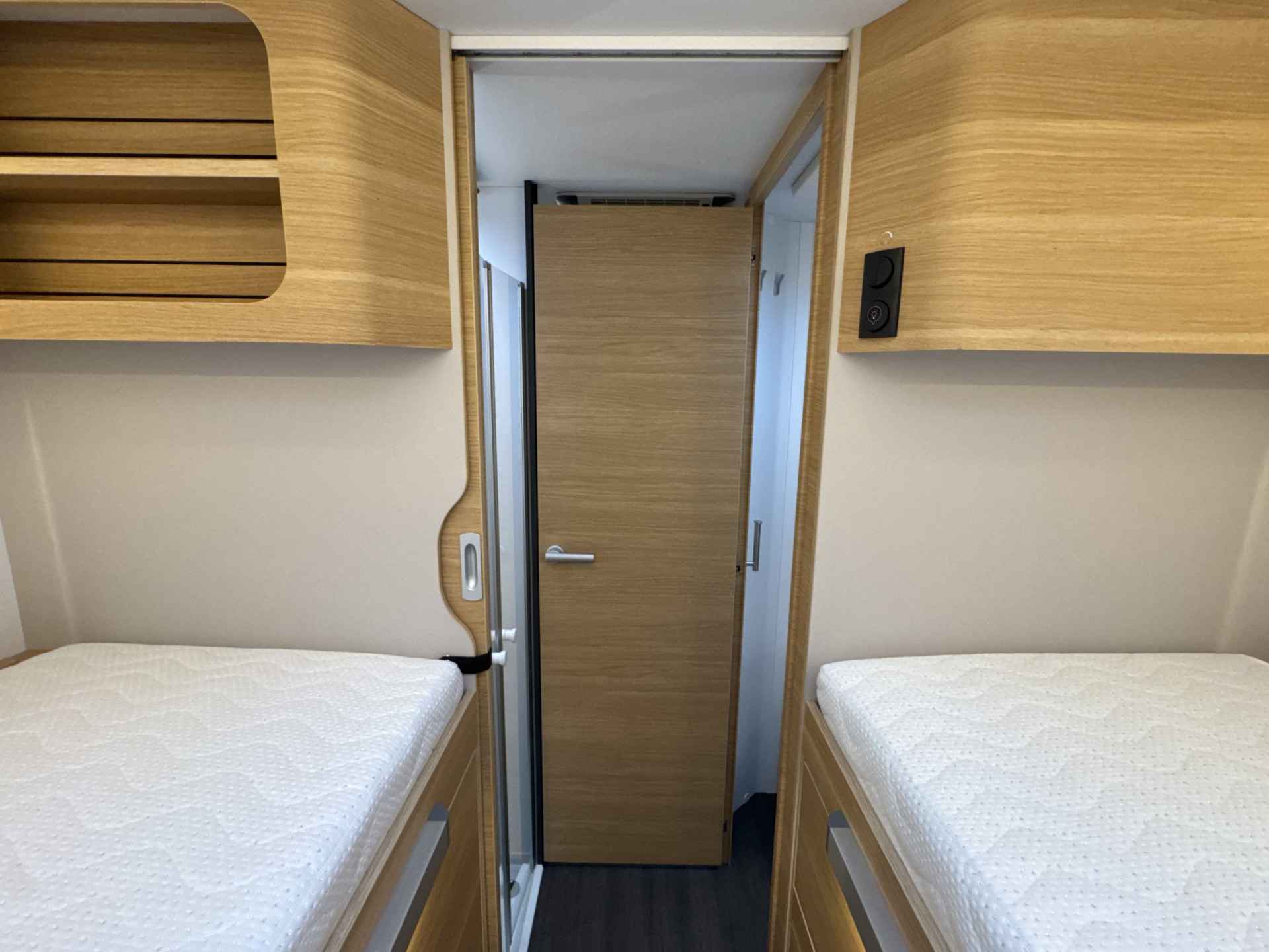 - Ruime enkele lengtebedden met daaronder een XXL garage (maatvoering bedden 205 cm x 80 en 203 cm x 80 cm Lengte x breedte)