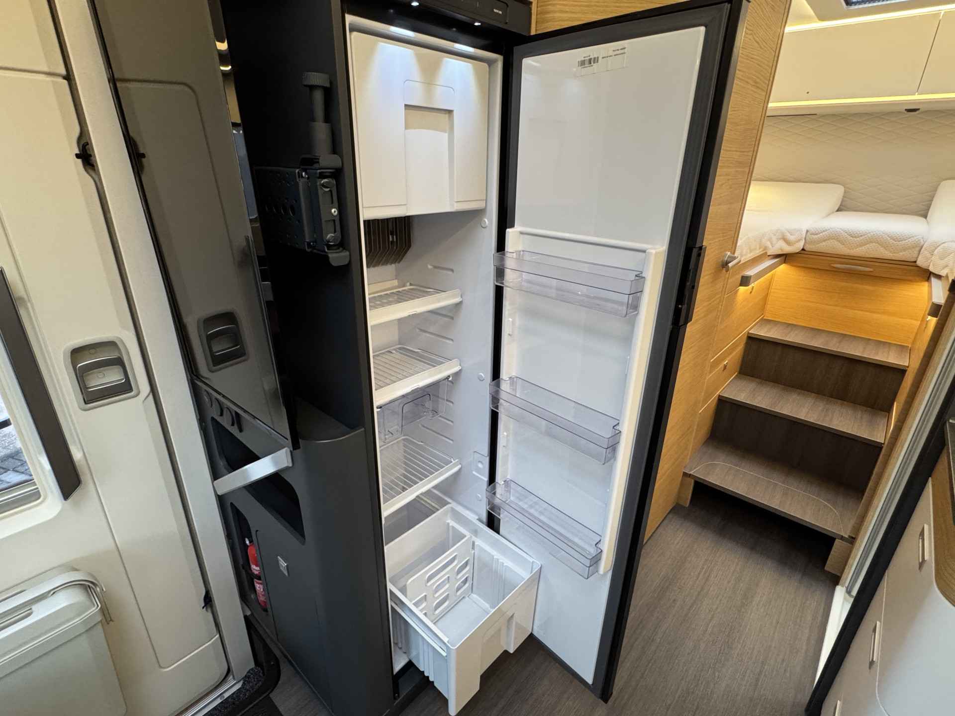 - XXL Koelkast (142 liter, hoog model) met vriesvak, De koelkast werkt zowel op gas en 12 volt als op 220 volt