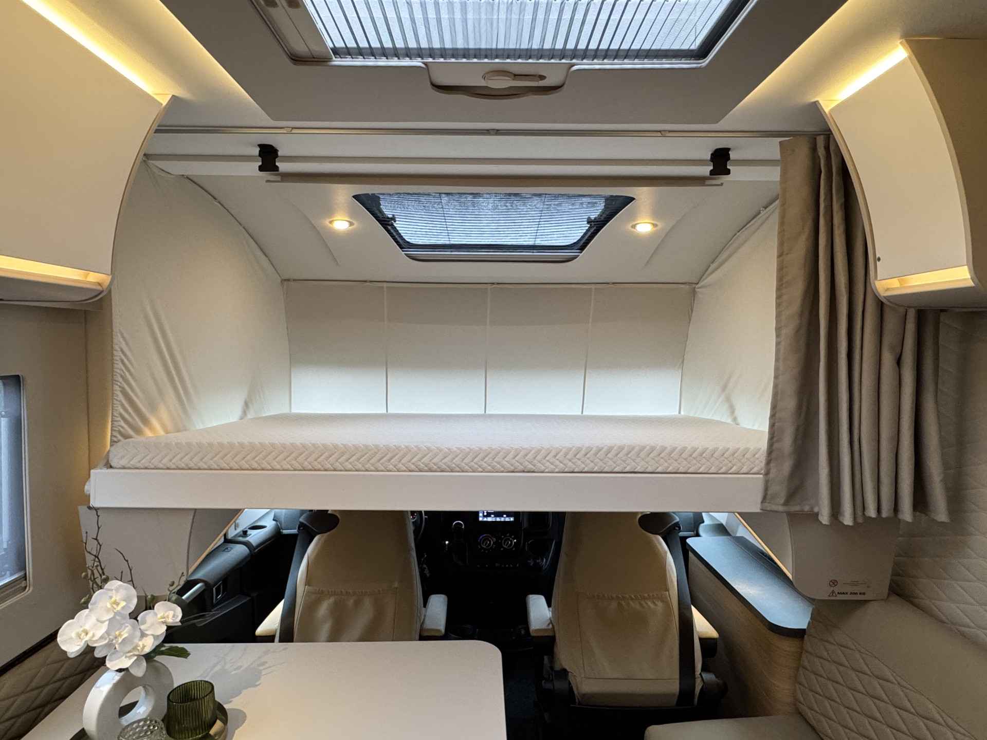 - Alle ruiten en dakluiken zijn voorzien van horren en verduistering