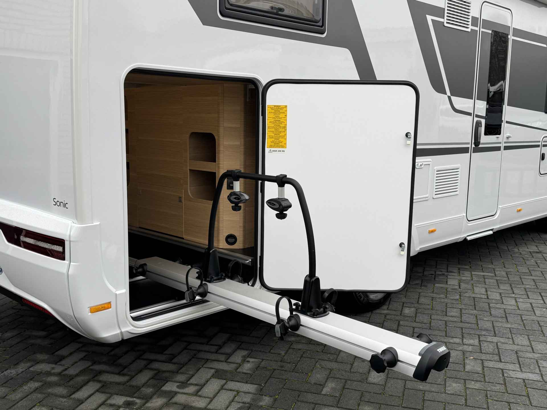 - Thule Velo-Slide uitrekbare fietsendrager in de garage voor 2 fietsen