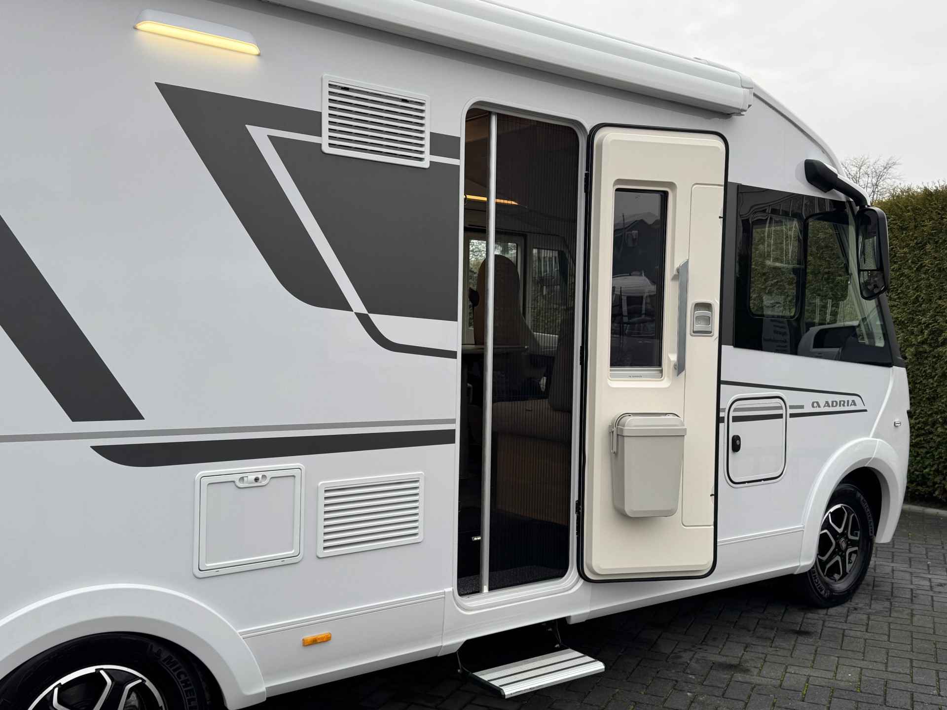 Deze Adria is te besturen met een C- of C1 rijbewijs en is 7.48 meter lang.