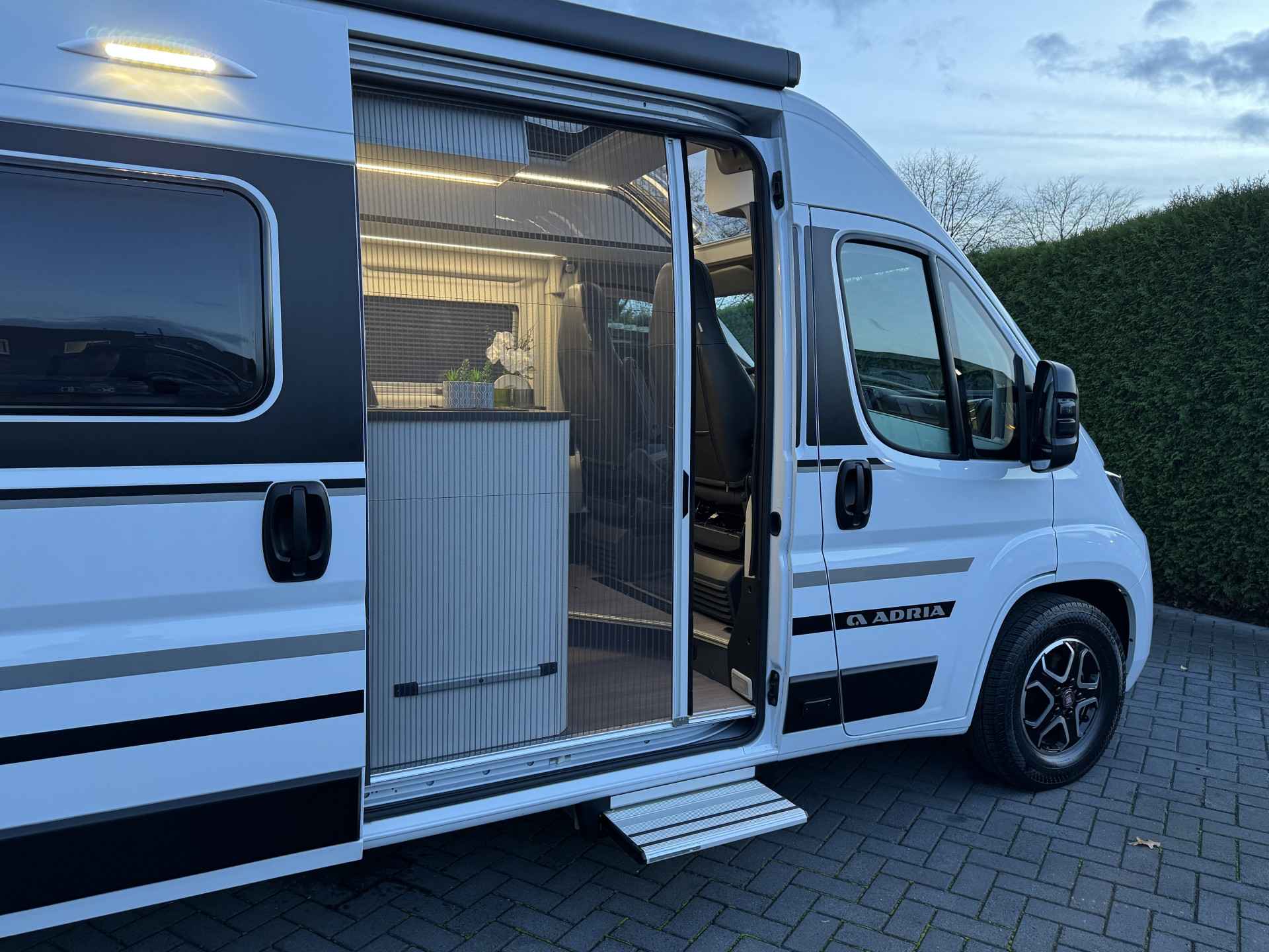 Deze Adria is te besturen met een normaal B-rijbewijs en is 6.36 meter lang.