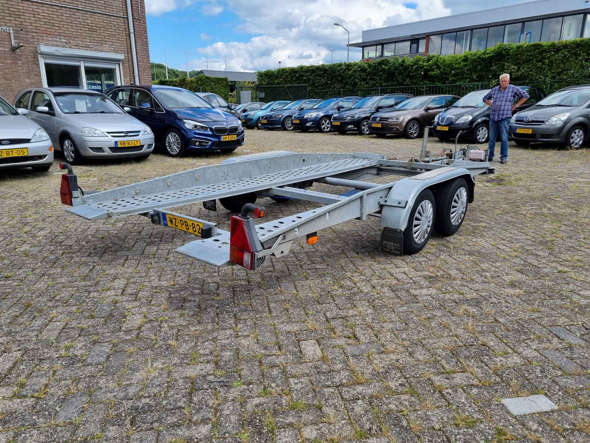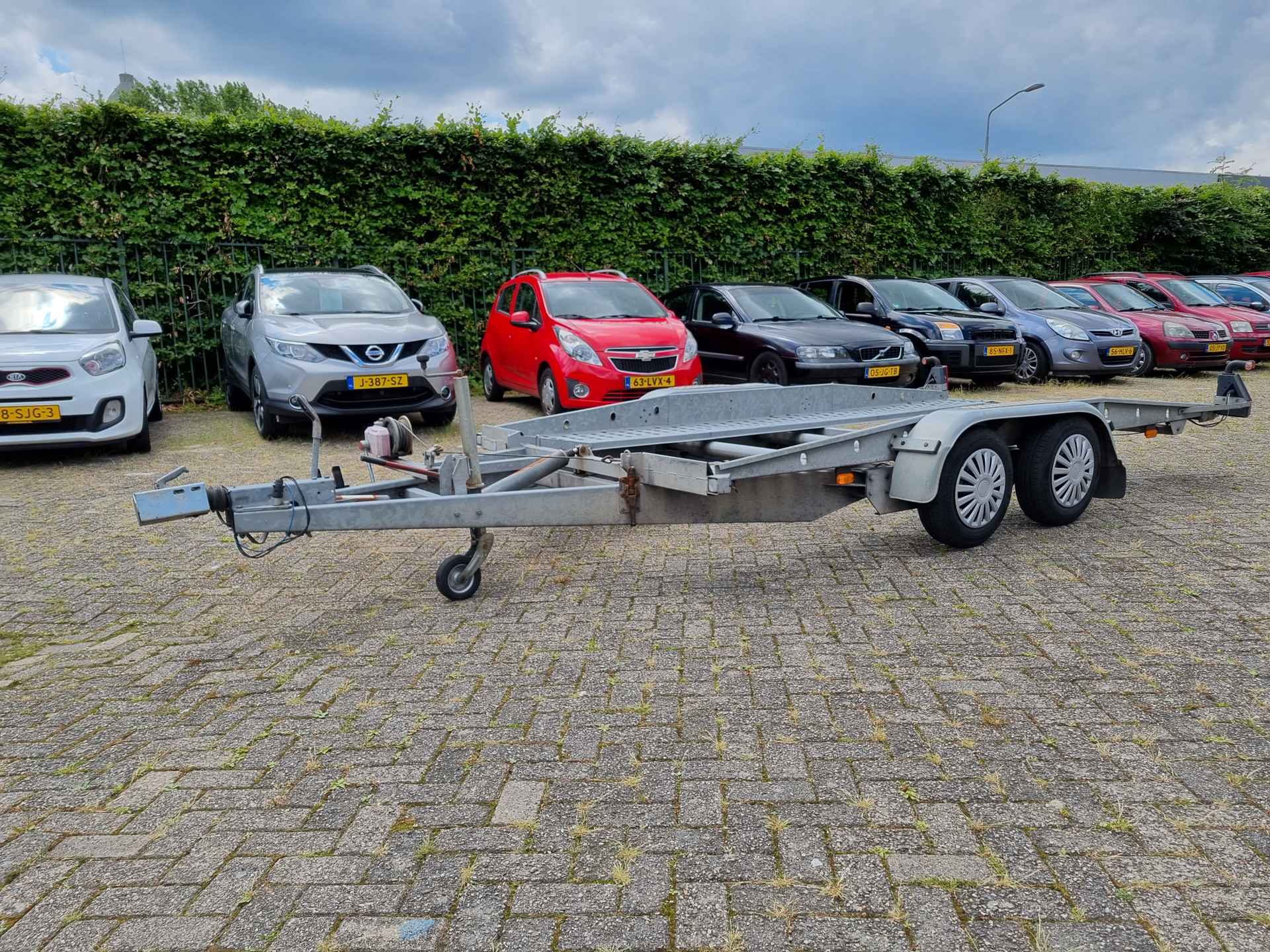 Gebruiksklare Agados Panter autoambulance/ oprijwagen met hydraulische kantelbak en lier. Je krijgt ook het disselslot er bij.