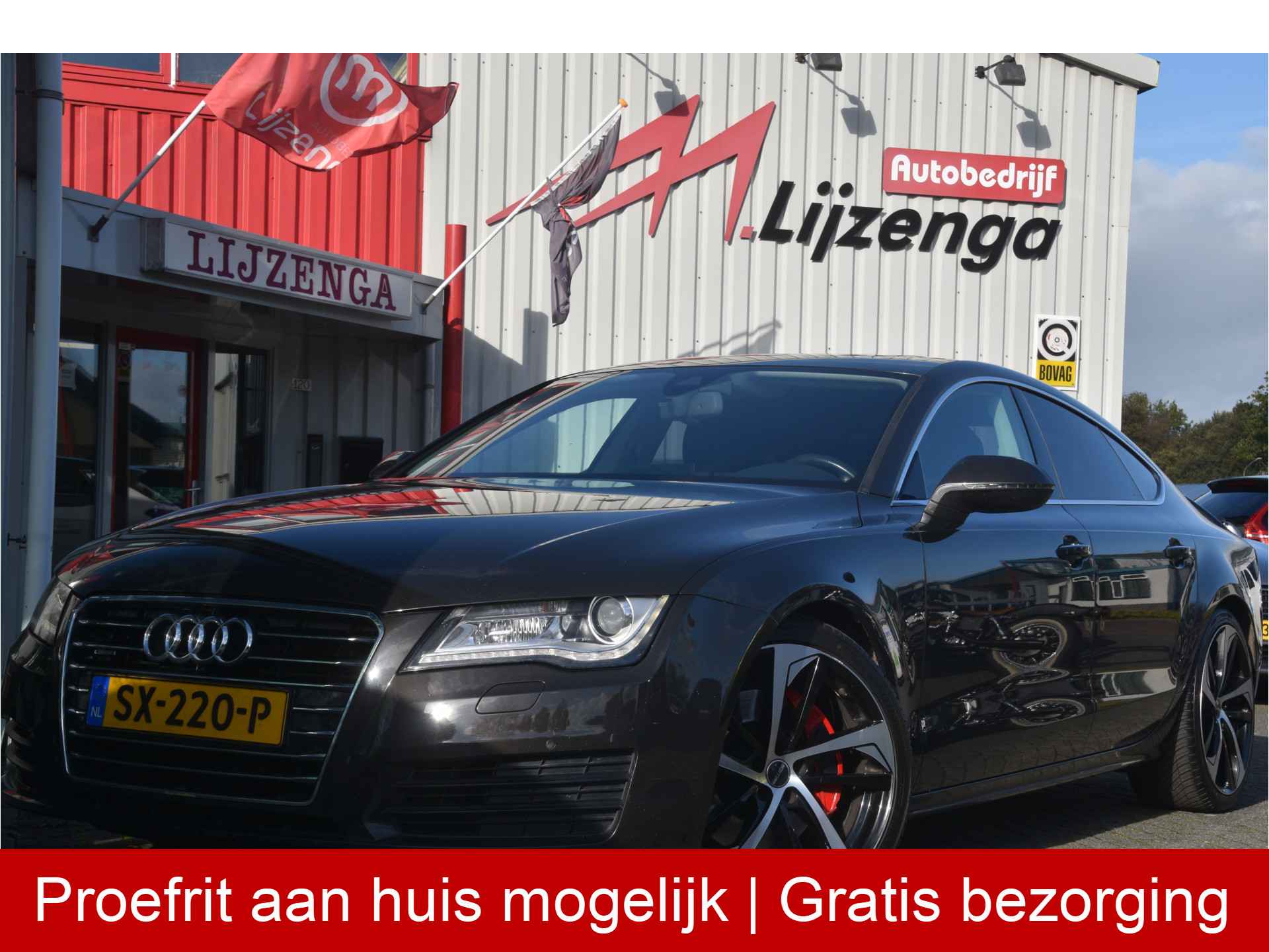 Fraaie Audi A7 benzine automaat met 300PK fijne 6-cilinder. Deze luxe limousine is o.a. voorzien van lederen interieur, luchtvering, bose, sortonderstel, keyless, schuif/kanteldak, navigatie, licht metalen wielen, bluetooth, climate control, licht + regensensor en cruise control.
