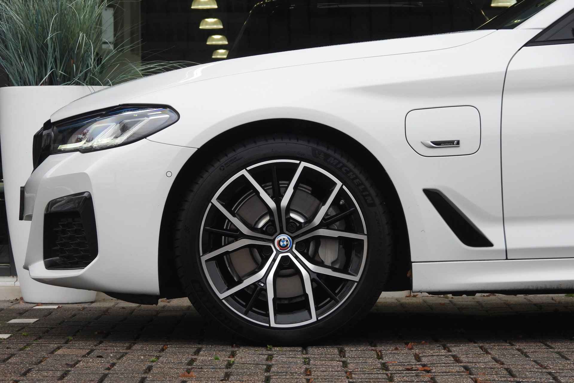 Het is niet alleen de bouwkwaliteit waar Duitse auto's om bekend staan, maar ook de rijkwaliteiten. Dat merkt u achter het stuur van deze dealeronderhouden BMW 5 Serie Touring. Het is een auto uit 2022 met 56932 kilometer op de teller. Rijden op brandstof én elektriciteit? Dat kan, met de hybride motor van deze BMW 5 Serie Touring. De elektromotor ondersteunt of neemt het deels over van de brandstofmotor als dat uitkomt. Scheelt lekker in de kosten! Een beetje luxe is nooit weg, toch? Vandaar de stoelverwarming! Licht en luchtpartijen: u krijgt ze bijgeleverd dankzij het glazen panoramadak. Laserlight koplampen zorgen voor ver en zeer helder zicht. Bij de zeer complete uitrusting van deze auto behoren ook BMW M-sportpakket en donker getint glas achter.