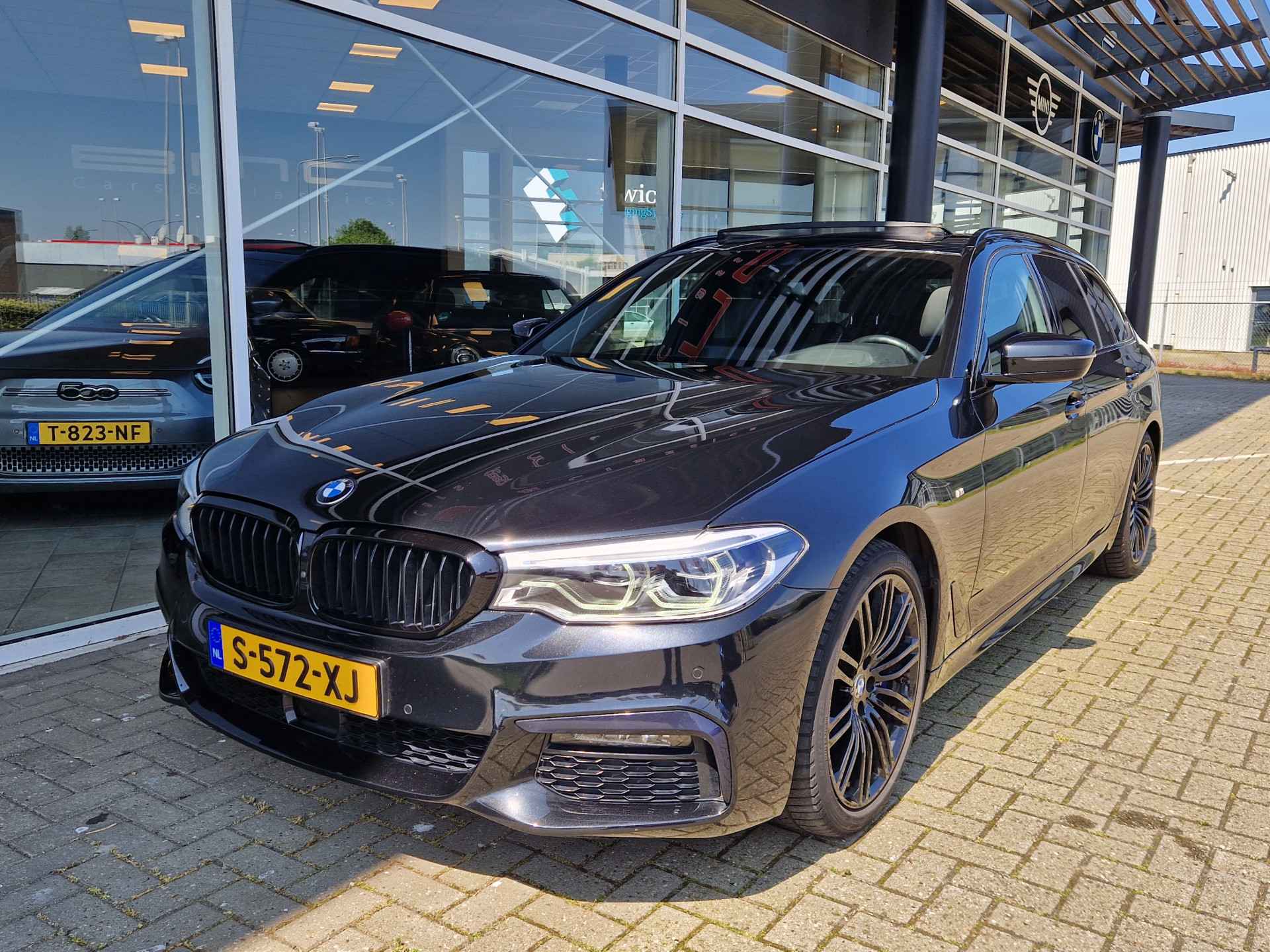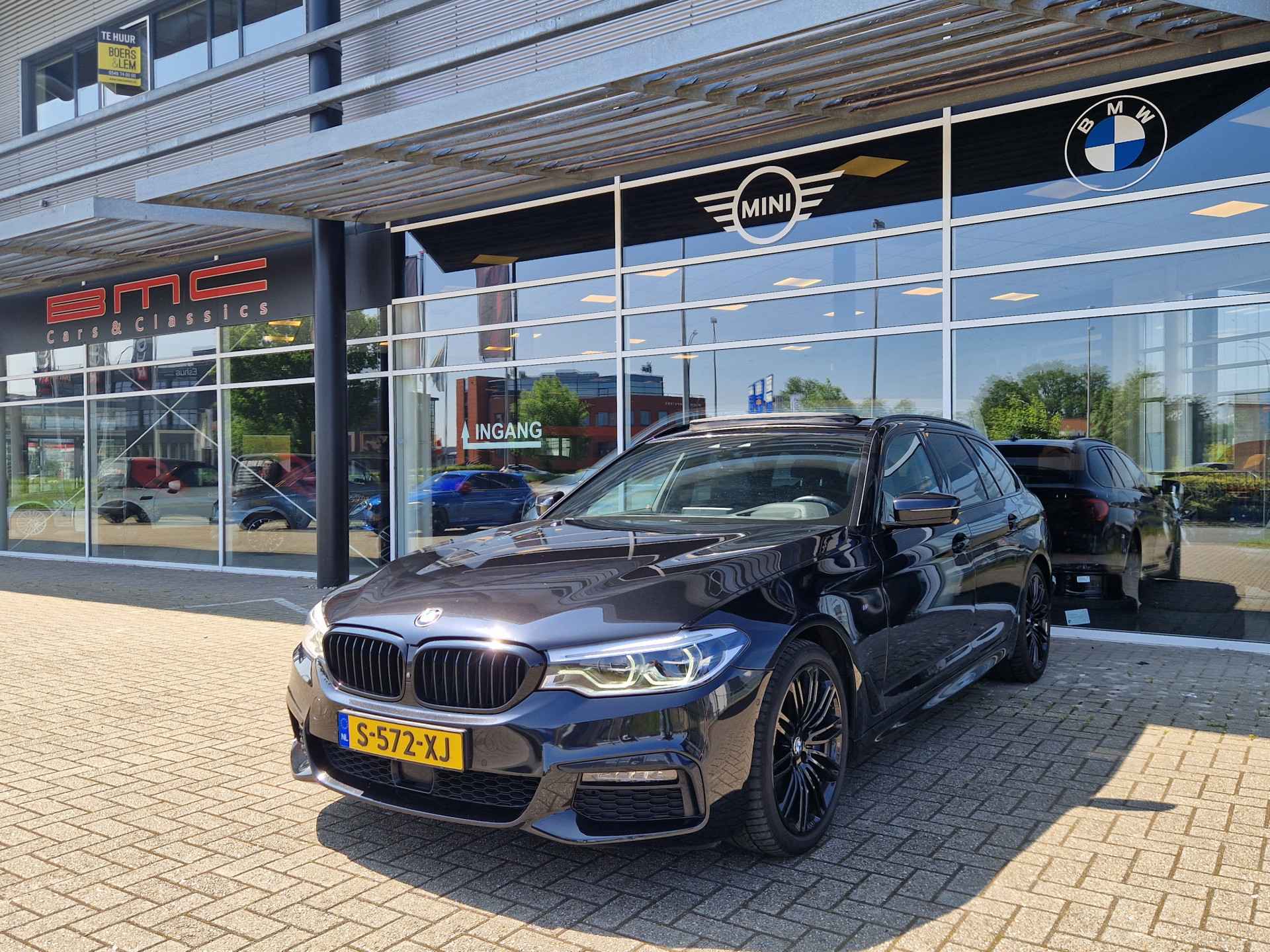 Zeer complete BMW 540I touring M-Sport in Saphir schwarz Metallic. Uitgerust met onder andere: