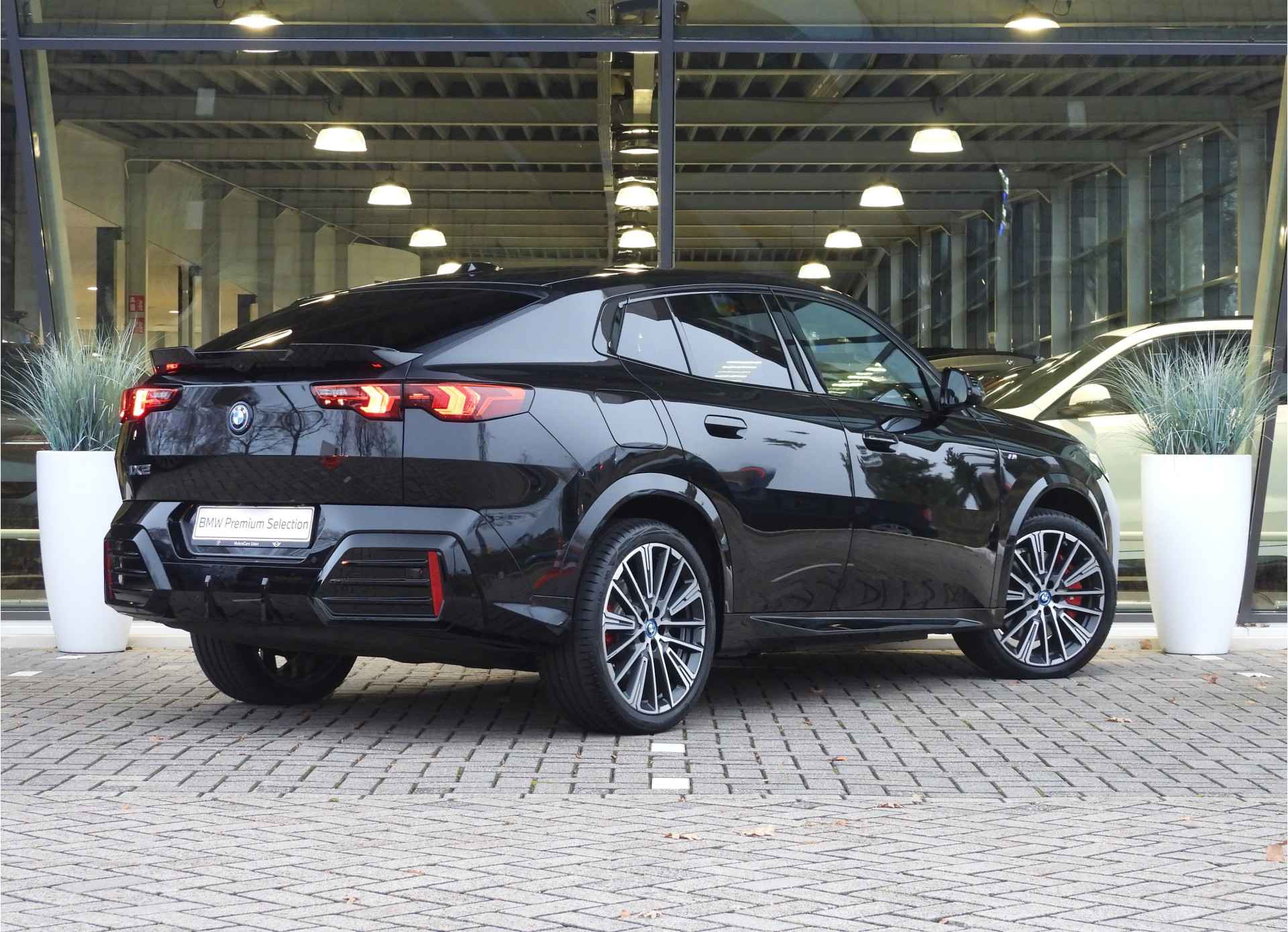 Schoonheid van buiten, schone techniek van binnen. Deze BMW iX2 maakt elektrisch rijden aantrekkelijker dan ooit. Het aantal kilometers dat u op een acculading kunt rijden, is ruimschoots genoeg voor de gangbare dagelijkse ritten, en het opladen kan in de meeste gevallen 's nachts gebeuren. Een krachtige motor geeft deze auto zijn sportieve prestaties. Tijdens koude winterdagen verjaagt uw stoelverwarming de kou en maakt het rijden heerlijk comfortabel. Licht en luchtpartijen: u krijgt ze bijgeleverd dankzij het glazen panoramadak. Geen gekleum meer in de koude dagen. Het verwarmd stuurwiel voelt als een weldaad na het ijskrabben. Ook BMW M-sportpakket, LED-koplampen en donker getint glas achter zijn aan boord.