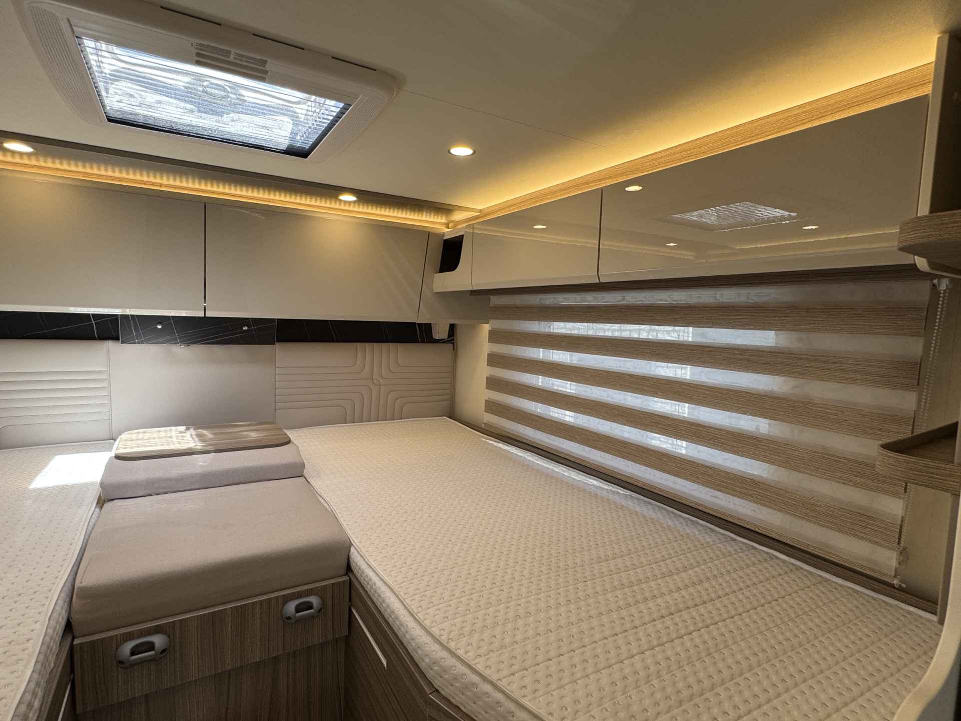 - Alle ruiten en dakluiken zijn voorzien van horren en verduistering
