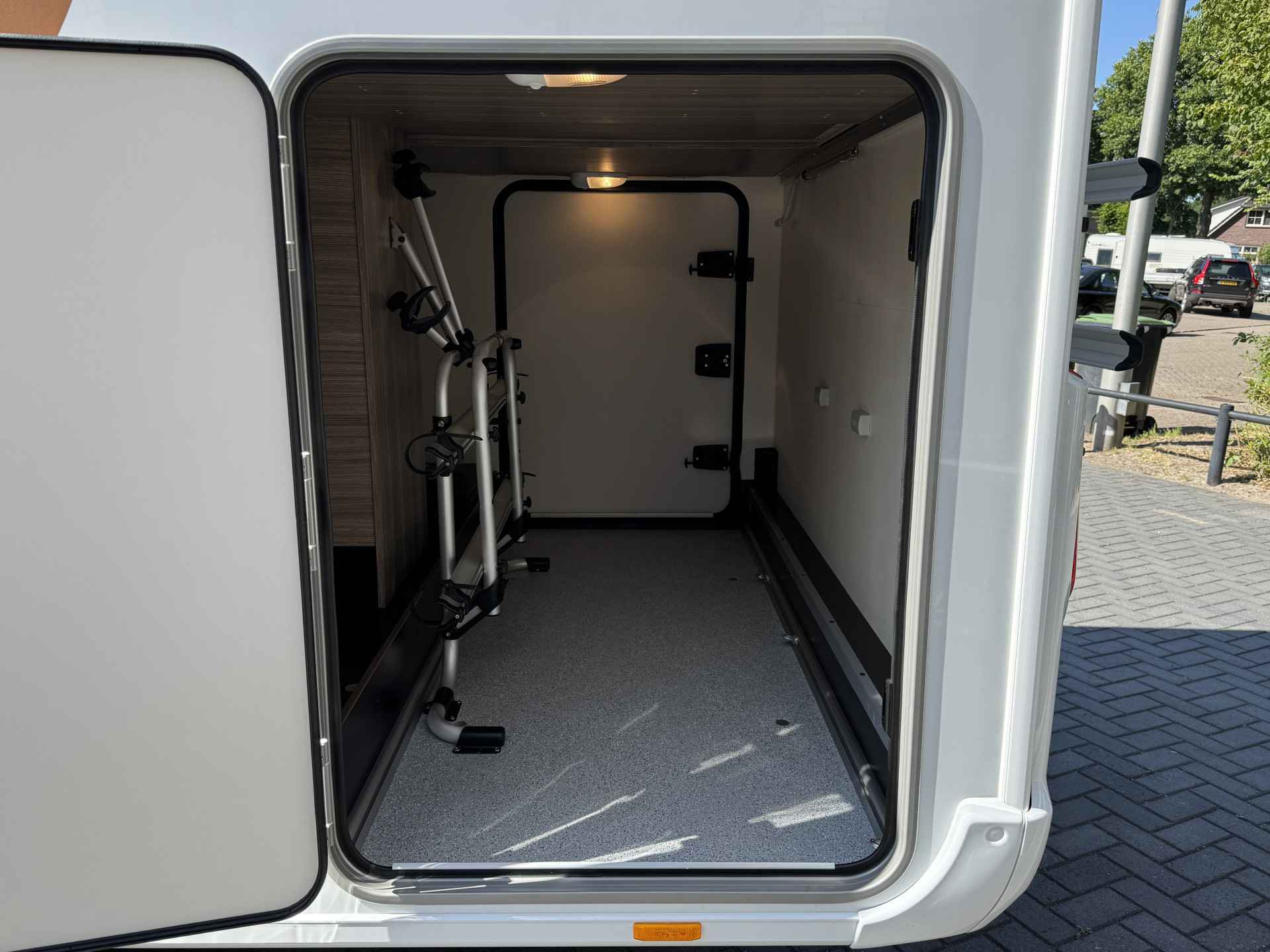 - Grote XXL Garage met grote deuren aan de linker en rechterzijde van de camper (Maatvoering garagedeuren: 92 cm x 115 cm breedte x hoogte)