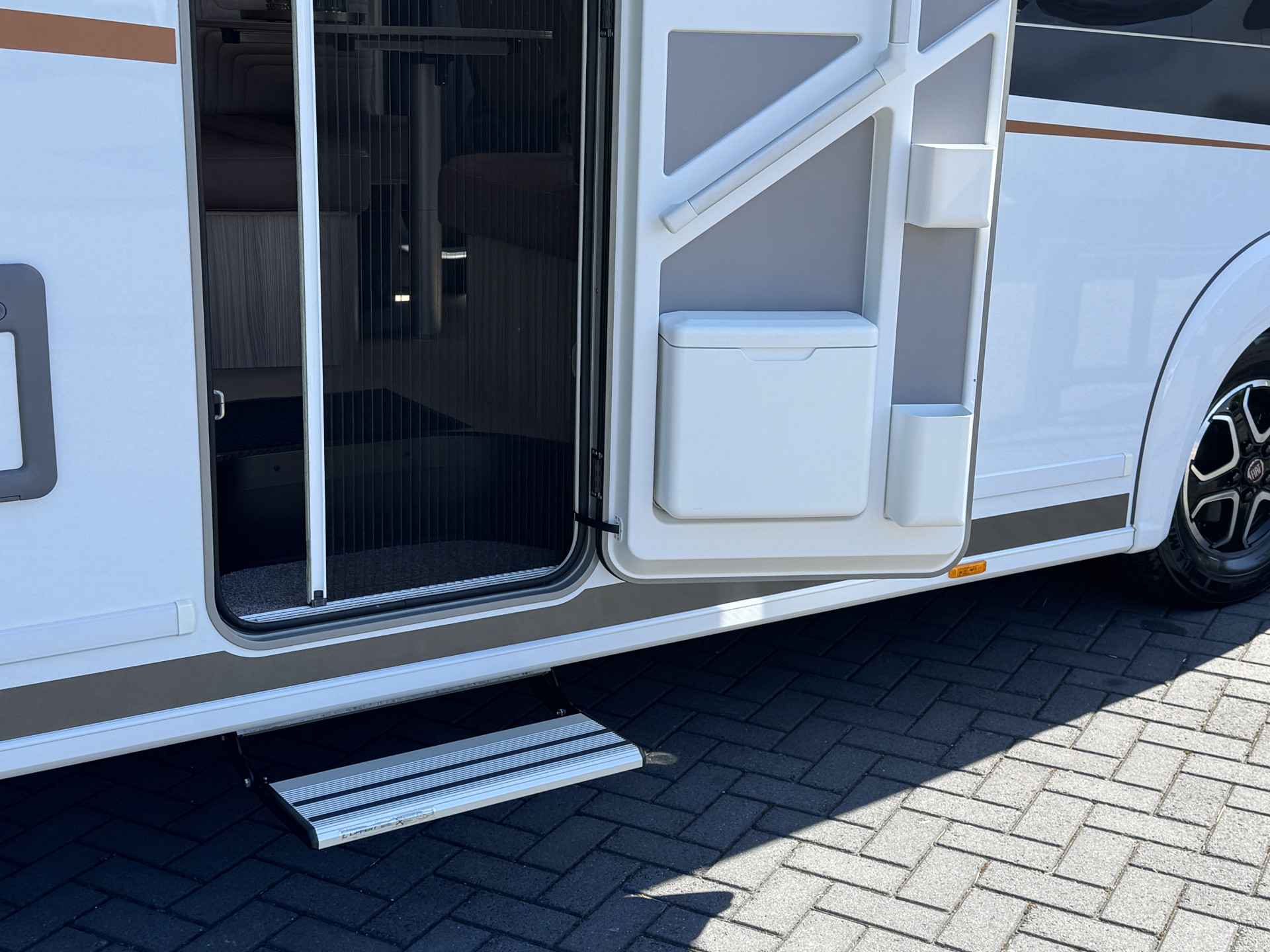 - Hordeur voor de entreedeur van de camper