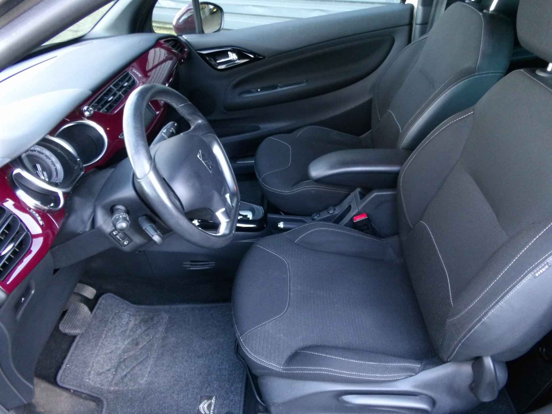 Hij is stijlvol en comfortabel, deze Citroën DS3, en hij is ontworpen om u veilig en comfortabel te laten rijden onder alle omstandigheden. Hij heeft een benzinemotor en een automatische transmissie. Ook 16 inch lichtmetalen velgen, zwarte hemelbekleding, elektrisch inklapbare buitenspiegels, donker getint glas achter, elektrisch bedienbare ramen voor en metallic lak zijn aan boord.