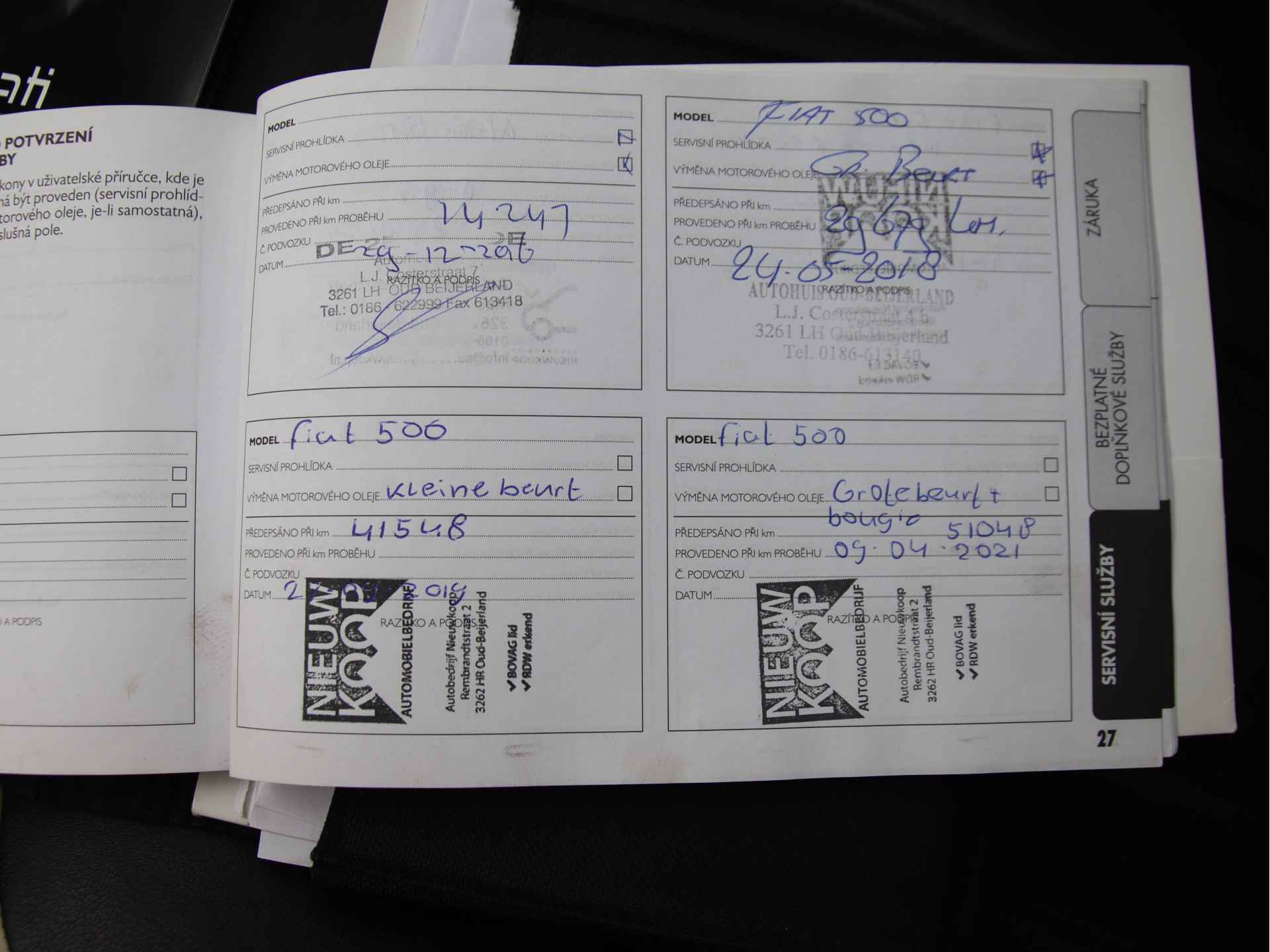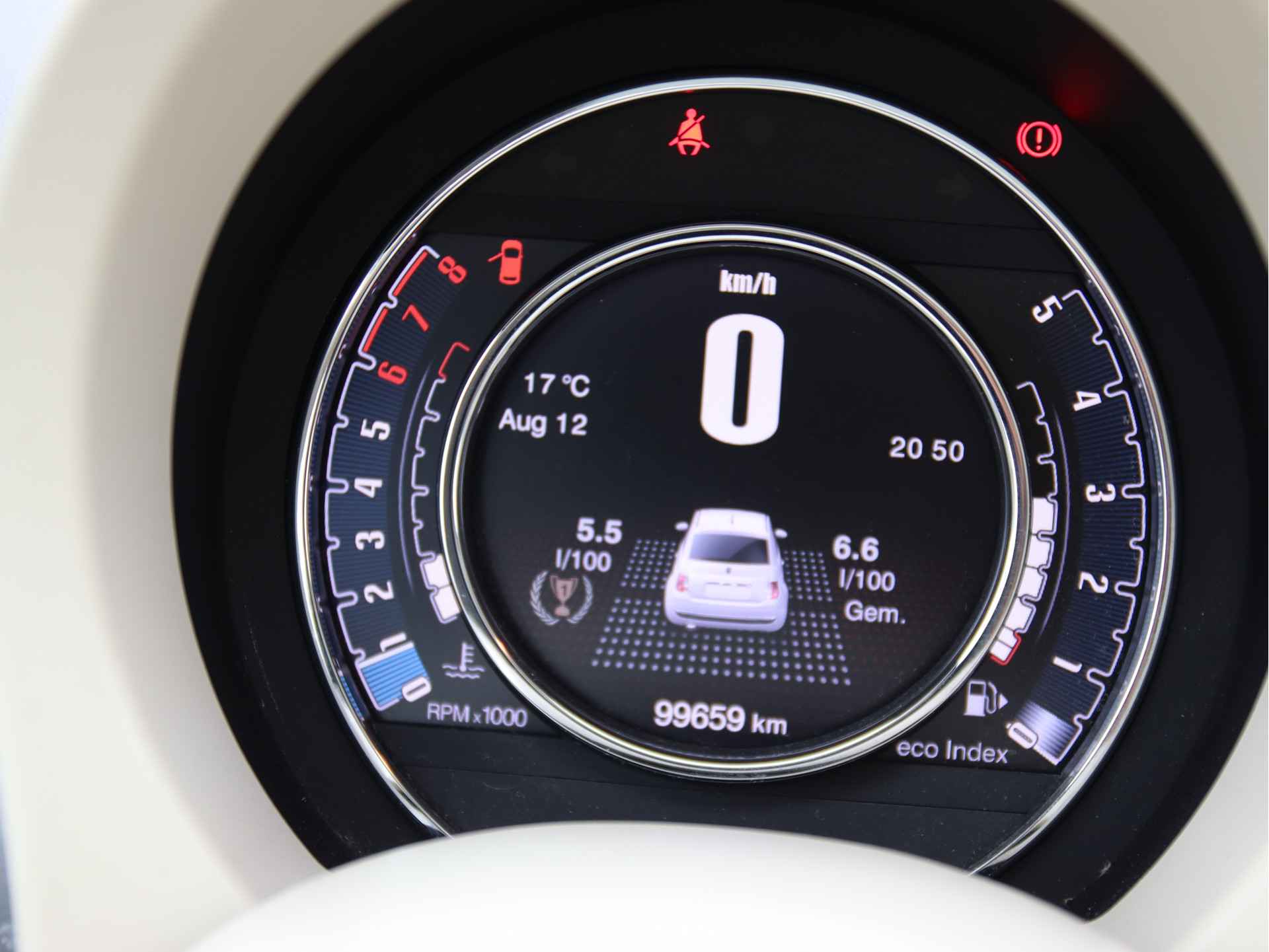 Actieprijs! Mooie originele Nederlandse 2e eigenaar Fiat 500 0.9 Twin-air Turbo LOUNGE aangeboden voor € 7950.- euro. Auto is rijk uitgerust en is o.a. voorzien van: Prachtige 2 kleuren lederen bekleding, geregelde airco, panorama dak, midden armsteun, centrale portier vergrendeling op afstandsbediening, elektrisch pakket (ramen en spiegels), chroom delen exterieur, dagrijverlichting, 16 inch licht metalen velgen met all-season banden, boordcomputer, Blue & Me audio multimedia audio systeem met AUX/USB/Carkit interface, metallic lak, leder multifunctioneel stuurwiel, mistlampen etc. Auto verkeerd in fraaie staat. Auto is volledig (dealer als binnen ons bedrijf) onderhouden, onderhoudsboekje is aanwezig bij de auto. RDW teller rapport logisch verklaart (kilometrage gegarandeerd). Wegenbelasting Zuid-Holland € 32,- per maand. OPTIONEEL Afleveringspakket: APK controle-keuring incl. onderhoudsbeurt conform richtlijn fabrikant, 6 maanden garantie, reinigen binnen & buitenzijde wagen, 1/4 tank brandstof incl. nieuwe matten set € 499,-. OPTIONEEL: 12 maanden BOVAG garantie tegen bijbetaling van € 499.- euro (enkel mogelijk icm met afleveringspakket). Voor meer informatie en beschikbaarheid, of voor het maken van en afspraak om deze auto te bezichtigen: EMAIL:info@autobedrijfnieuwkoop.nl, TEL: 0186-640950
