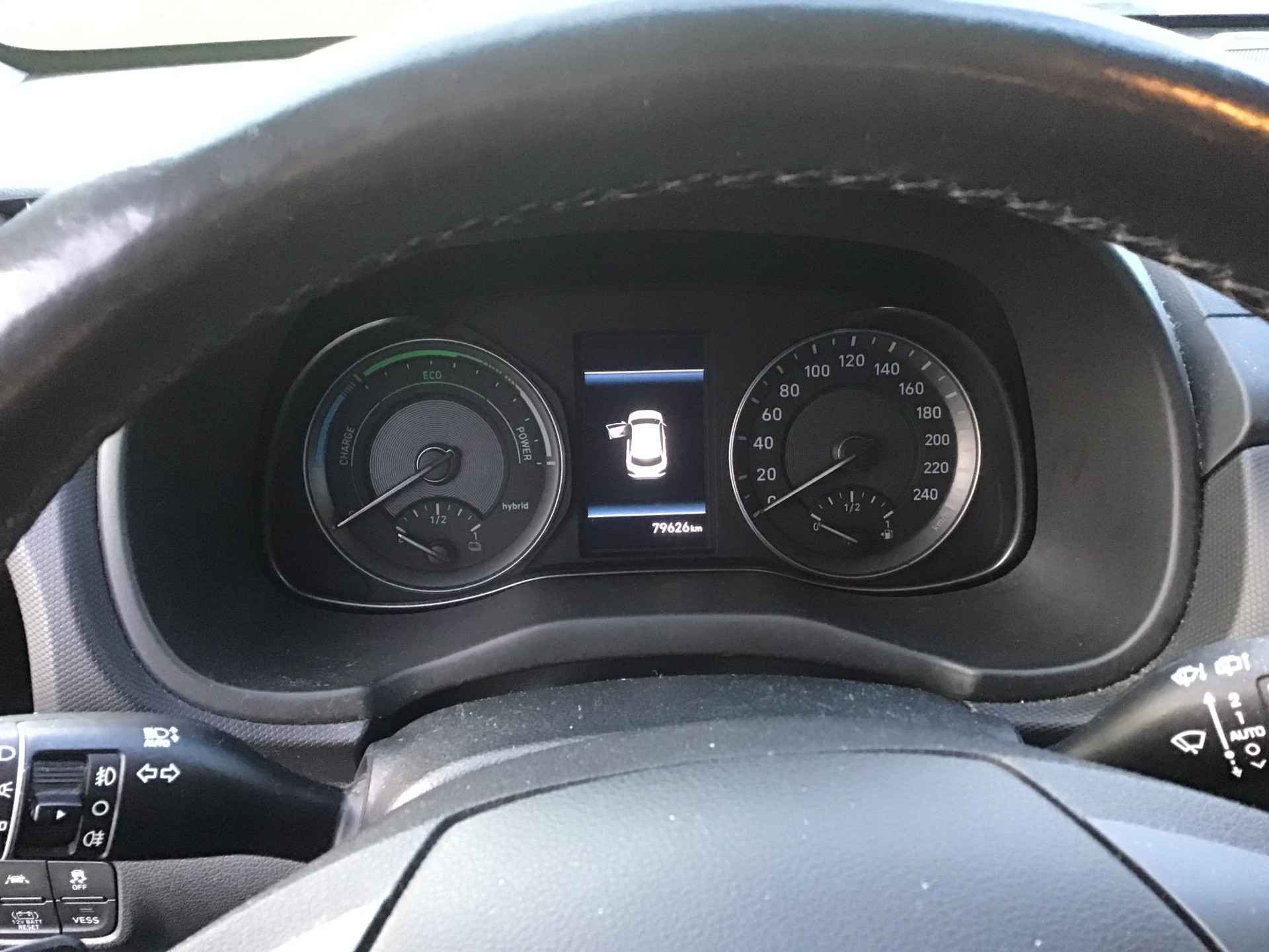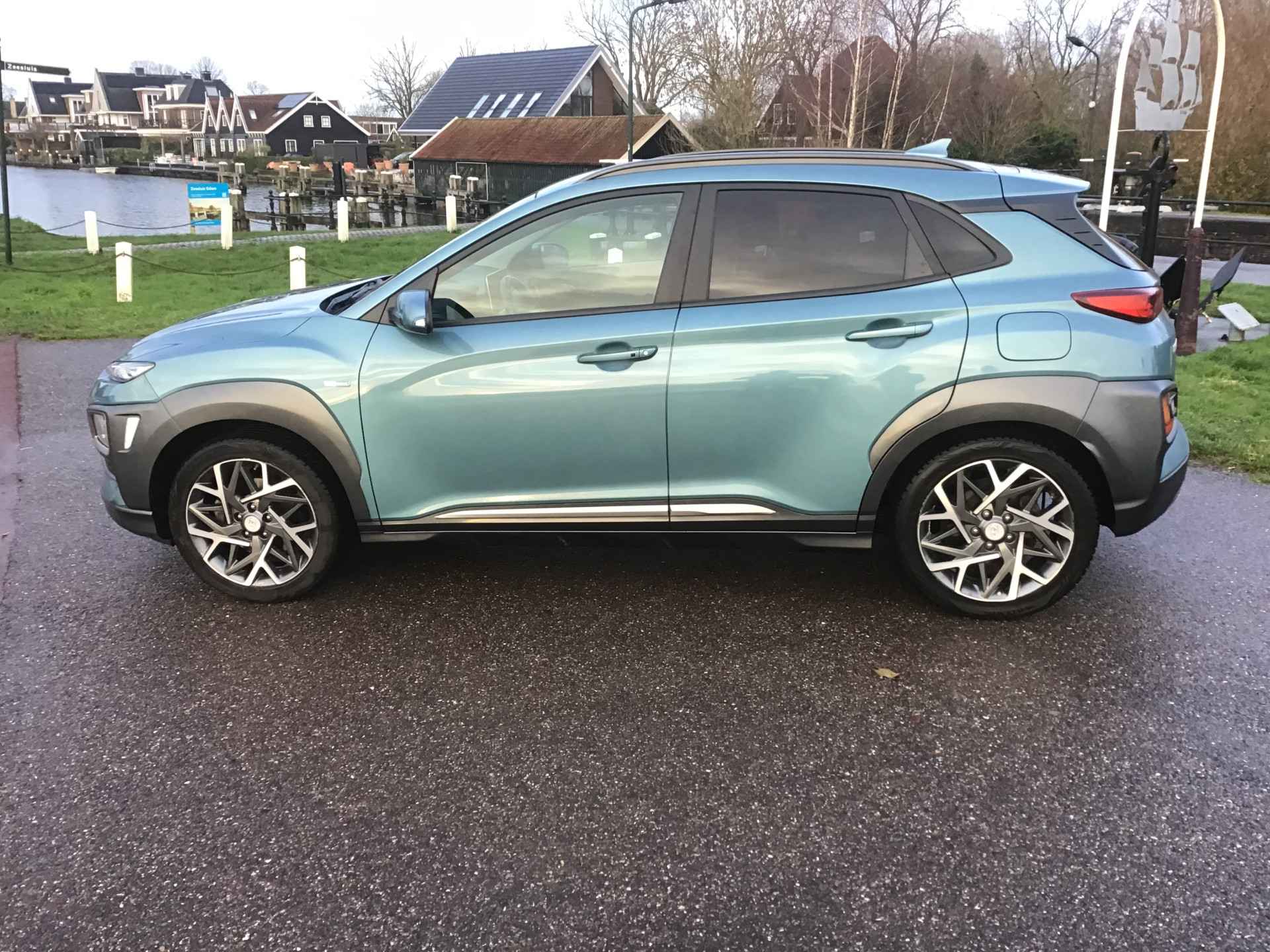 Zoals u mag verwachten van deze Hyundai Kona is hij uitgerust met een reeks aan actieve veiligheidssystemen. De actuele snelheidslimiet, een inhaalverbod en andere verkeersborden; de verkeersborddetectie ondersteunt u tijdens elke rit. Met het Lane-keeping systeem komt u nooit per ongeluk buiten de rijstrook. Forward collision warning waarschuwt bij een dreigende aanrijding en vermindert de gevolgen van een ongeval. Met voorzieningen als head-up display, dodehoekdetectie, hill hold functie, vermoeidheidsherkenning, autonoom remsysteem en bandenspanningcontrolesysteem, bent u altijd veilig onderweg.