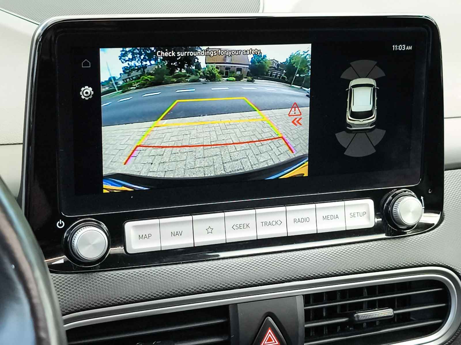 De nieuwste veiligheidssystemen komen in deze Hyundai Kona samen. De actuele snelheidslimiet, een inhaalverbod en andere verkeersborden. De verkeersborddetectie ondersteunt u tijdens elke rit. Het Lane-keeping systeem doet precies wat nodig is: waarschuwen en corrigeren bij onbedoelde overschrijding van de rijstrooklijnen. Botsingen met een voorligger gebeuren relatief vaak. De forward collision warning slaat tijdig alarm als dat risico ontstaat, zodat u kunt ingrijpen. Dankzij veiligheidsvoorzieningen als head-up display, hill hold functie, autonoom remsysteem en bandenspanningcontrolesysteem, bent u steeds veilig onderweg.