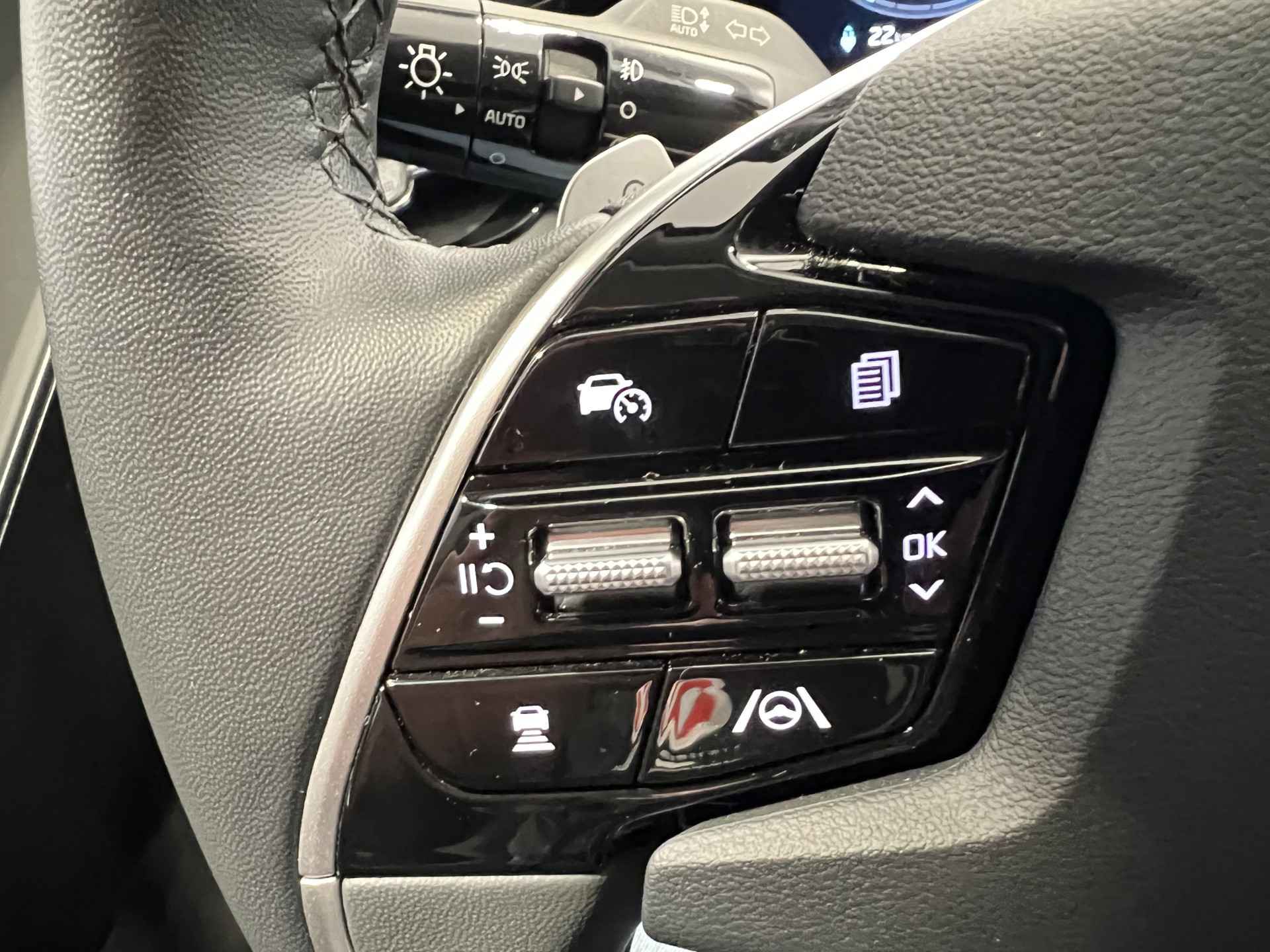 Ontdek de digitale mobiliteitswereld, met zijn dashboard dat alle noodzakelijke informatie projecteert om uw reis comfortabel en veilig te maken. Nooit meer parkeerschade dankzij de achteruitrijcamera. Adaptive cruise control is veilig en comfortabel. De snelheidsregelaar houdt automatisch afstand tot het voertuig dat voor u rijdt. De ingebouwde file assistent is een echte helper als het vaststaat onderweg. Het systeem meet ruimte tot de auto vóór u permanent en activeert zelfs de remmen als uw voorligger stopt. Dankzij Connected Services heeft u overal en altijd uw dashboard op zak. Alle belangrijke functies zijn te checken via de app. De uitrusting van deze Kia is met dashboard met spraakbediening, full map navigatiesysteem, kruisend verkeer detectie, automatische airconditioning, schakelpaddles aan het stuur en DAB ontvangst behoorlijk compleet.