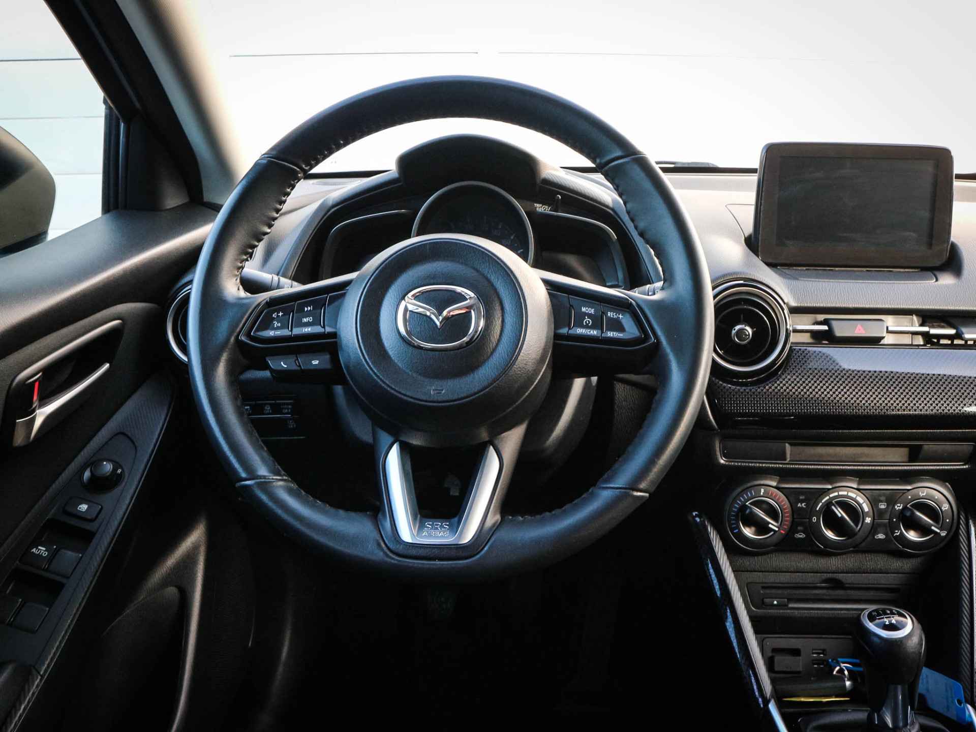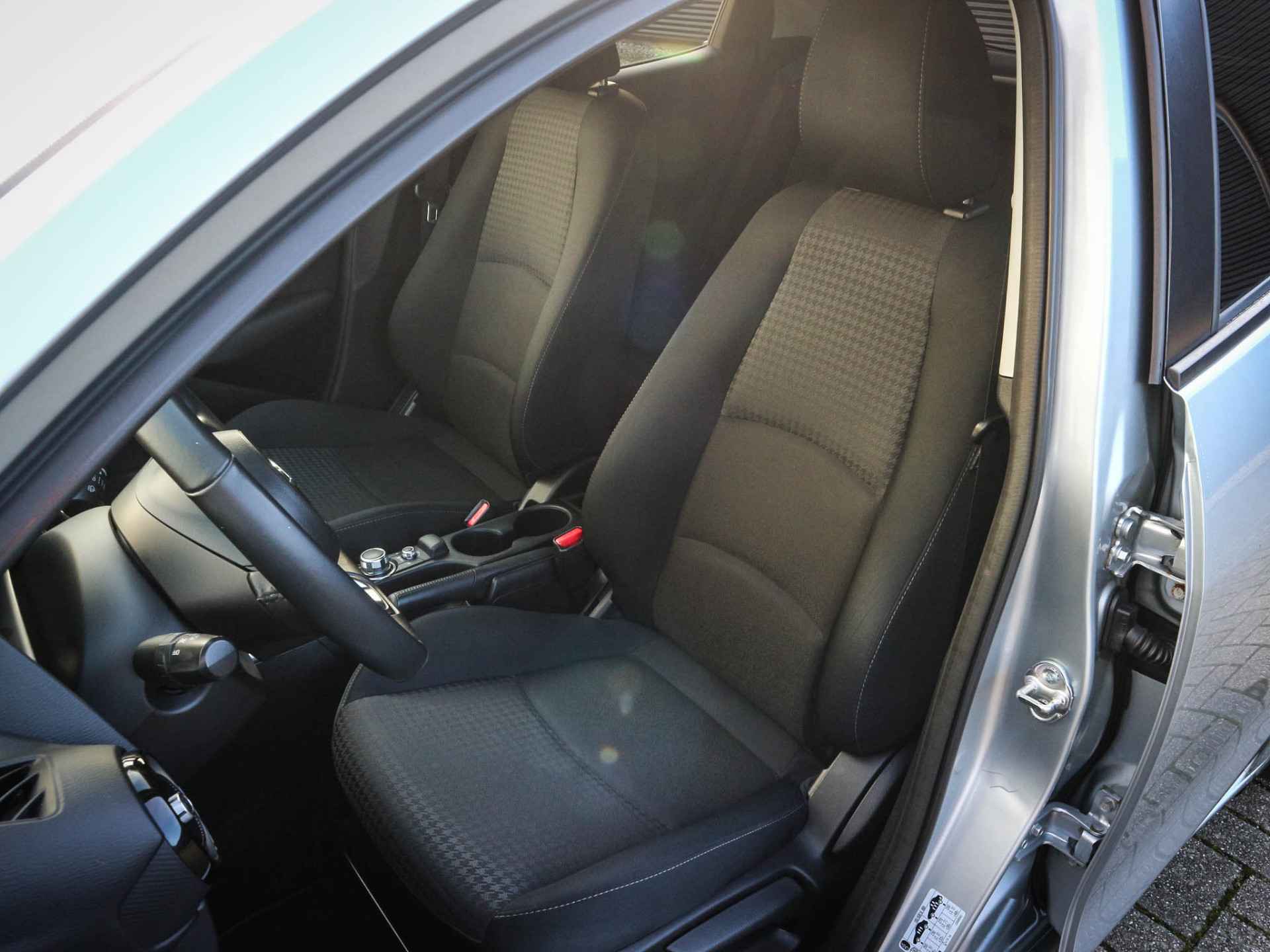 Achteruitrijden en inparkeren worden een eitje dankzij de achteruitrijcamera. Radarsensoren aan de achterkant van de auto zorgen voor een achteropkomend verkeer waarschuwing als de afstand tot het verkeer achter te klein wordt. Met de cruise control komt u bijna nog fitter aan dan u vertrekt. De keyless start maakt een eind aan de ouderwetse autosleutel. Met de elektronische sleutel op zak stapt u in en een druk op de startknop doet de rest. Het maakt niet uit hoe warm het buiten is, want met de airconditioning bepaalt u zelf de binnentemperatuur. Ook is de Mazda uitgerust met: dashboard met spraakbediening, full map navigatiesysteem, DAB ontvangst, lederen stuur, centrale deurvergrendeling met afstandsbediening en boordcomputer.