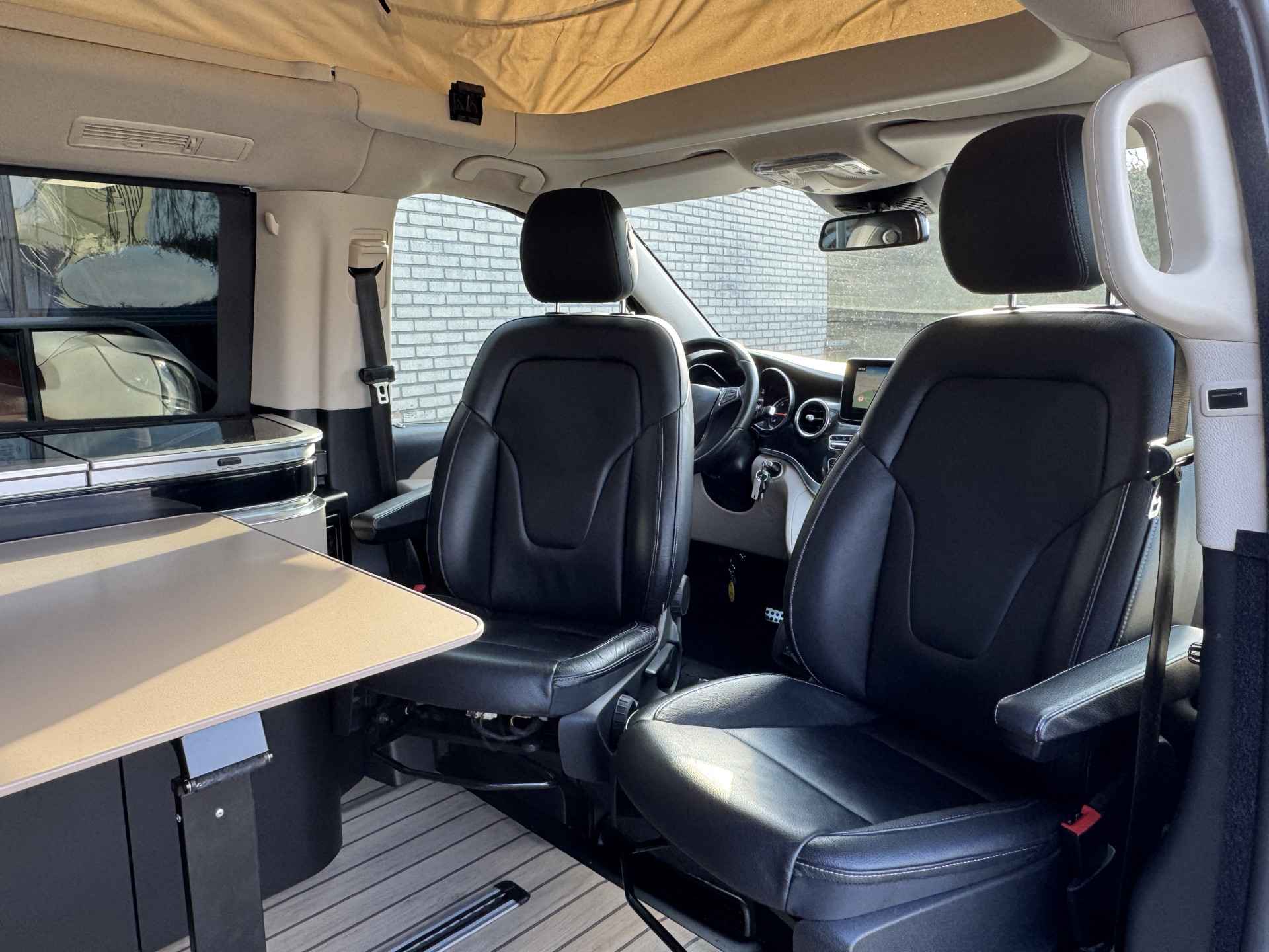 Naast het comfort dat een Mercedes-Benz V-Klasse u standaard al biedt beschikt deze Marco polo ook over tal van extra opties die enorm bijdragen aan het comfort. Denk hierbij o.a. aan: Cruise control, Climate control, Lane Assist, 360 graden camera, een 9-Traps Automaat, bijzonder luxe lederen (volledig draaibare) stoelen voor chauffeur en bijrijder met armleuningen, tal van oplaadpunten en een compleet en luxe uitgerust multimedia Navigatie systeem met o.a. beeldweergave van de parkeersensoren aan voor en achterzijde, een 360 graden camera & DAB.