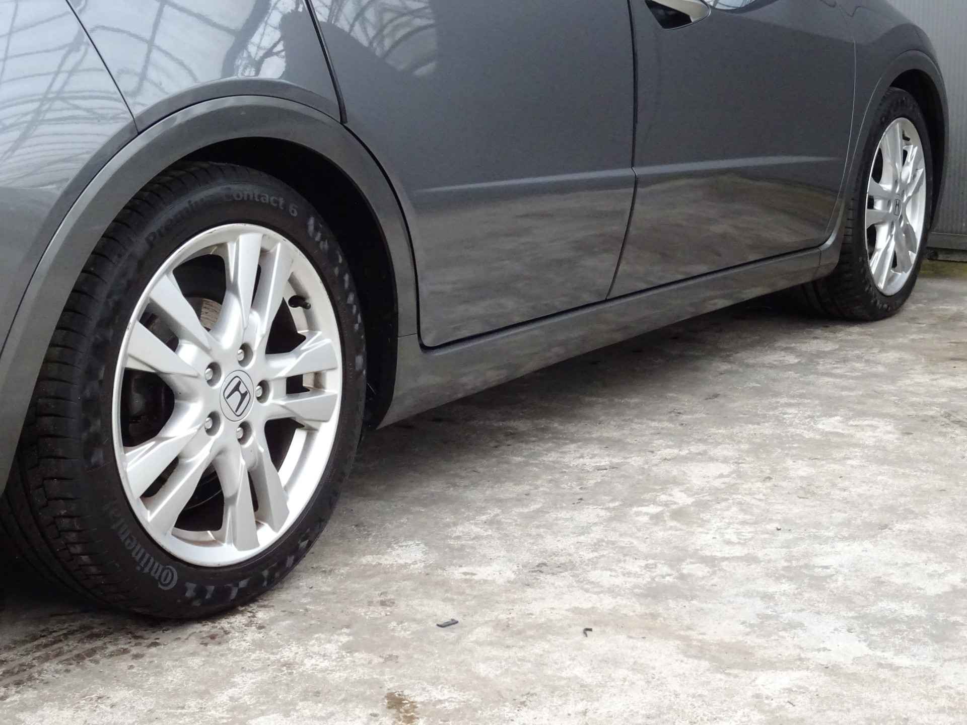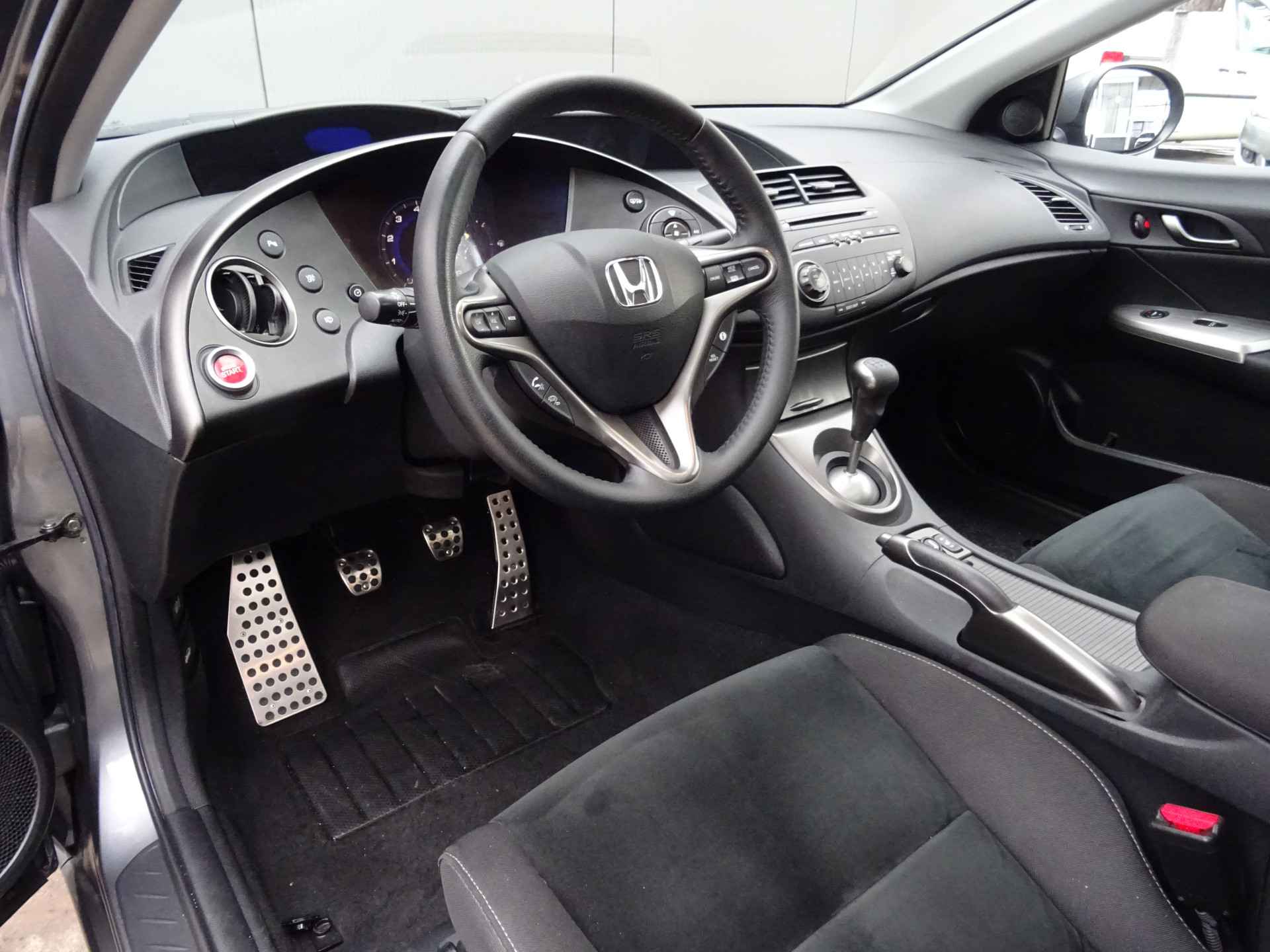 In deze Civic vindt u schakelaars op het stuur om het audiosysteem te bedienen. Of het buiten nu warm is of koud, dankzij automatische airconditioning is het binnen altijd behaaglijk. Parkeersensoren helpen u tijdens het in- en uitparkeren. De automatisch inschakelbare verlichting en regensensor zorgen dat onderweg automatisch de verlichting en de ruitenwissers worden ingeschakeld. Daarmee nemen ze u veel werk uit handen. De voordelen van de aanwezige cruise control hoeven we niet uit te leggen. Een mooie, constante snelheid - niet te snel, niet te langzaam. Precies goed. En dan is deze auto ook nog eens voorzien van automatisch dimmende binnenspiegel, lederen stuur, centrale deurvergrendeling met afstandsbediening en boordcomputer.
