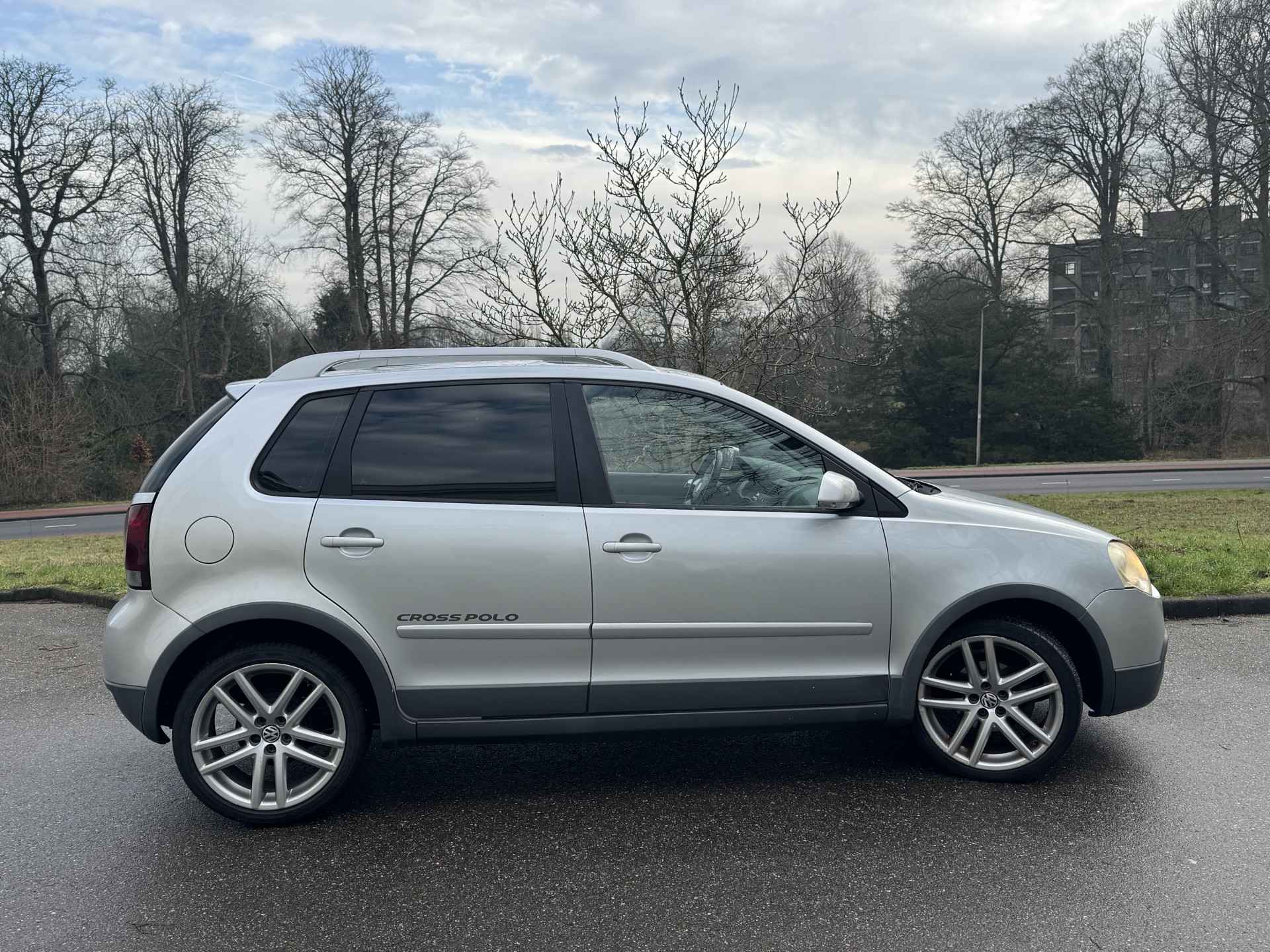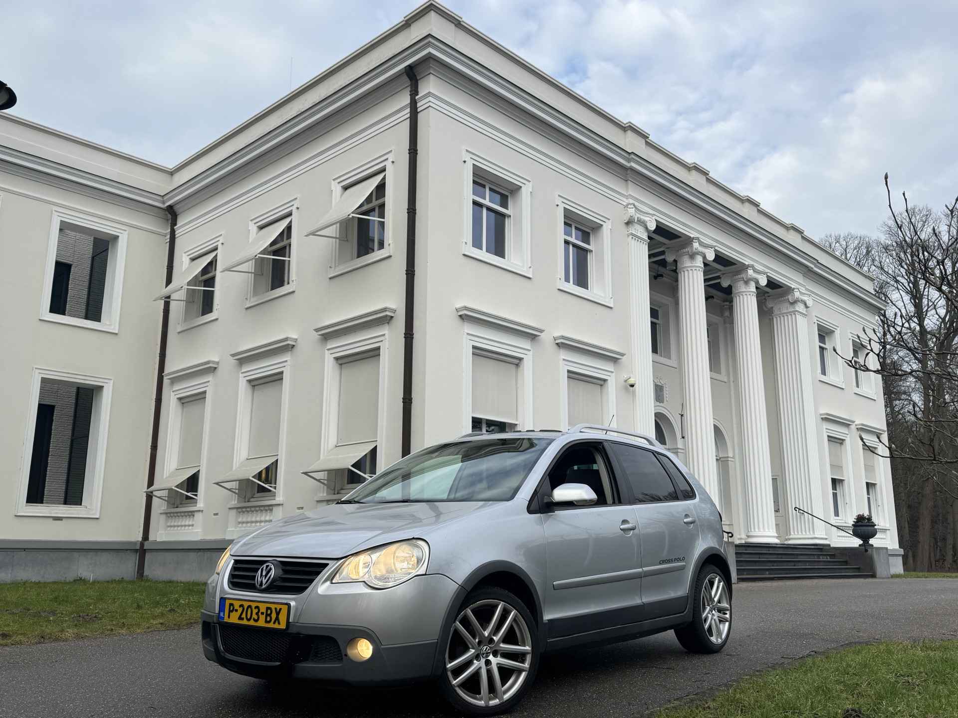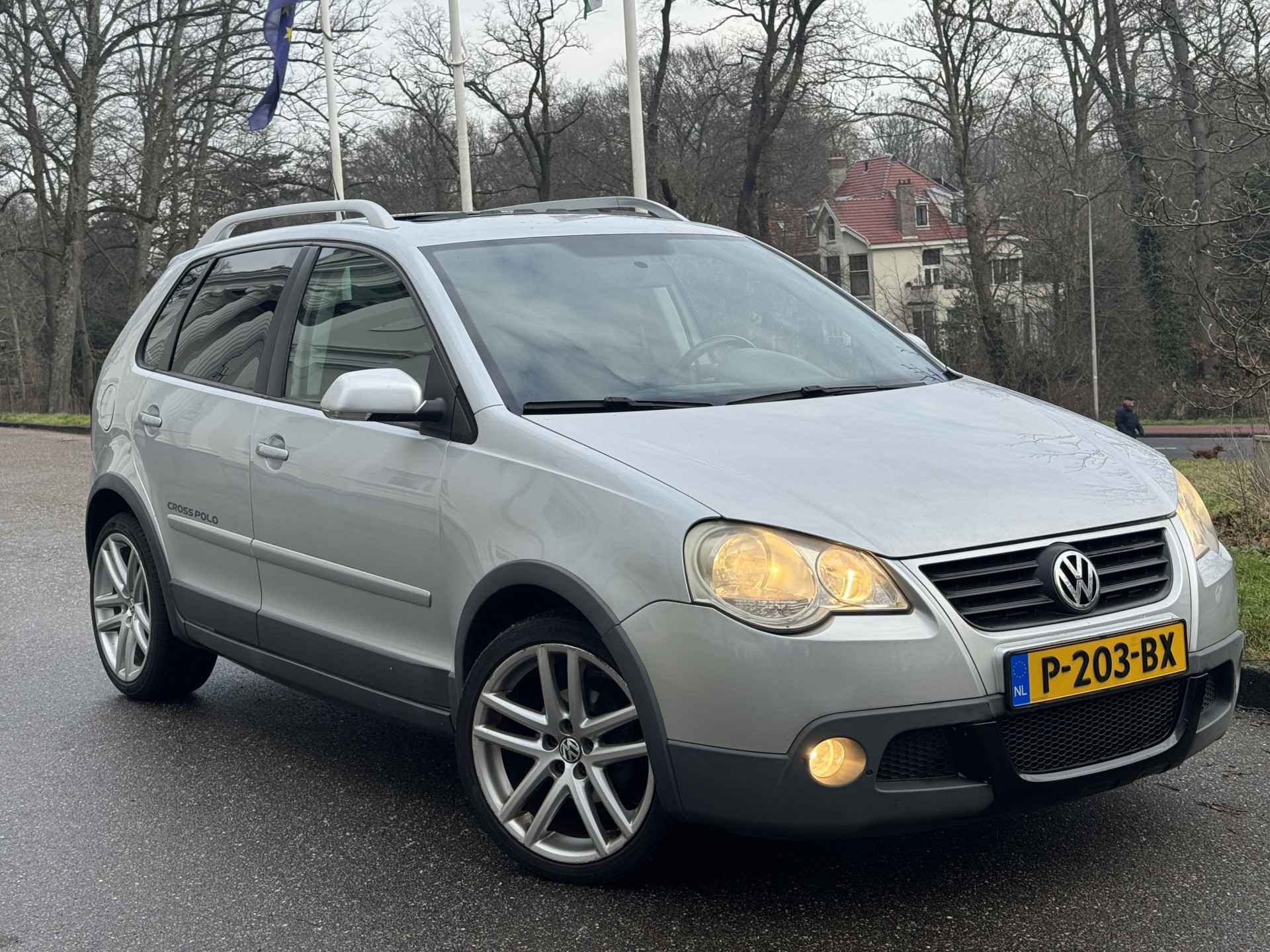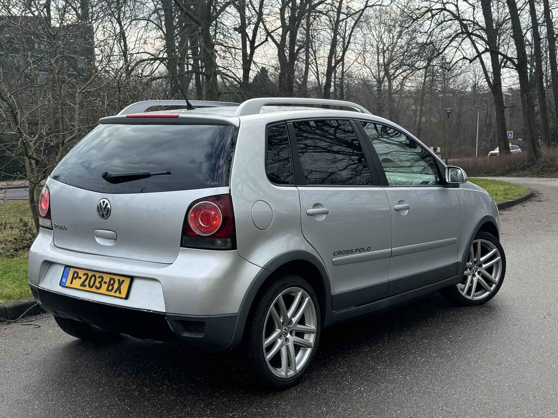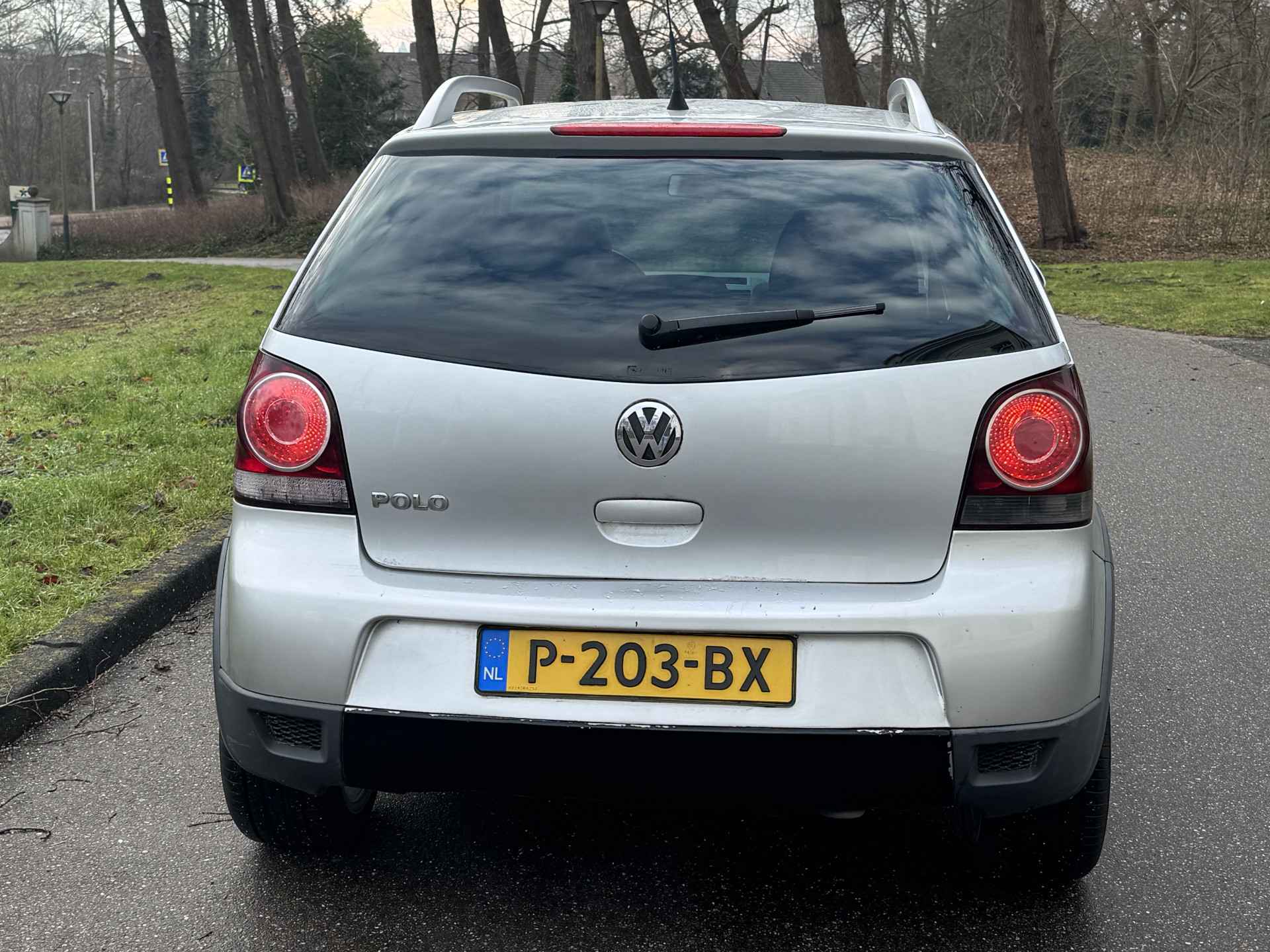 ZELDZAME EN STOERE POLO CROSS, HERKENBAAR AAN DE SPECIALE BUMPERS, DE DAKDRAGERS, DE KUNSTSTOF WIELKUIPLIJSTEN EN HET SPECIALE INTERIEUR.