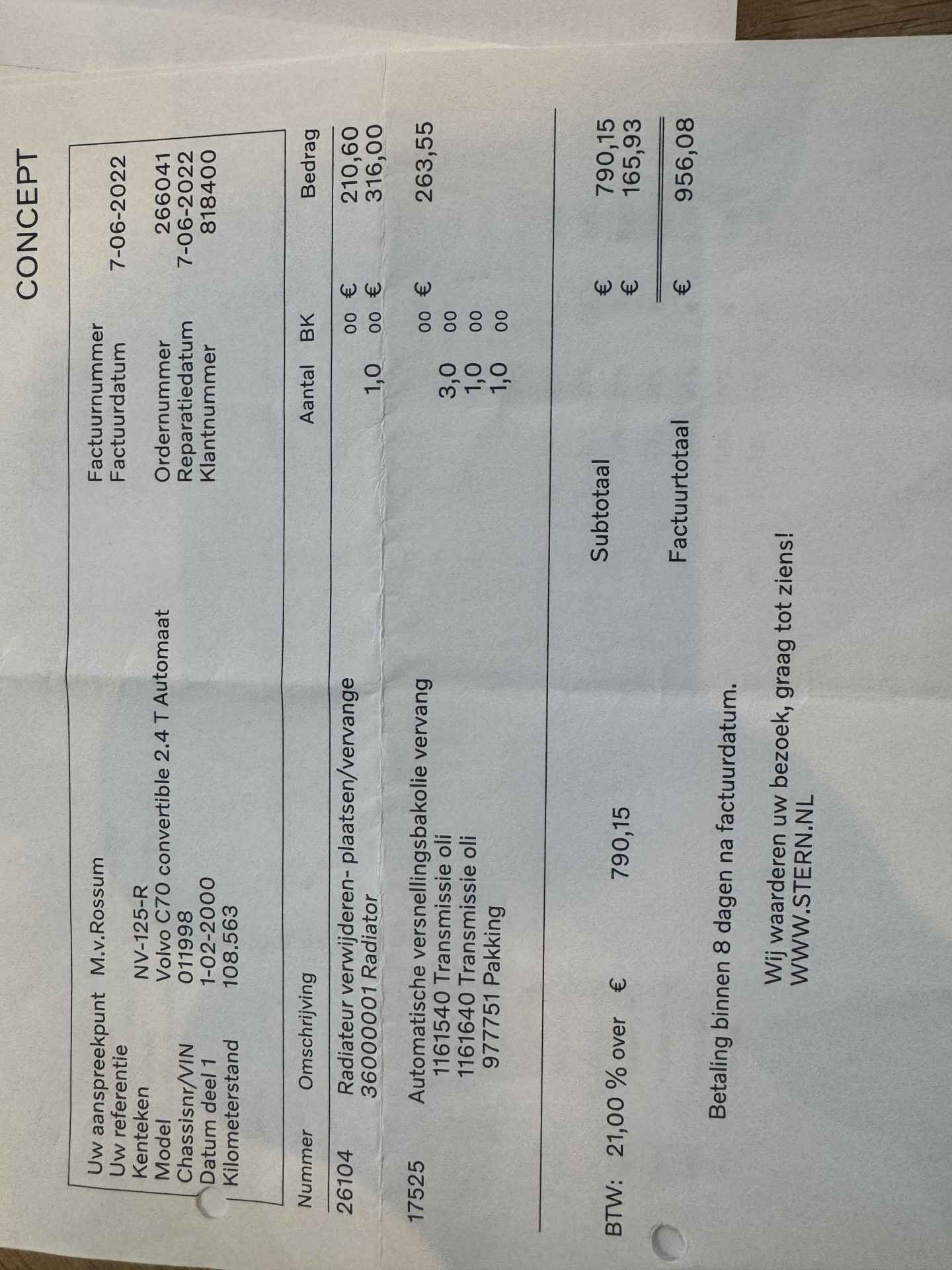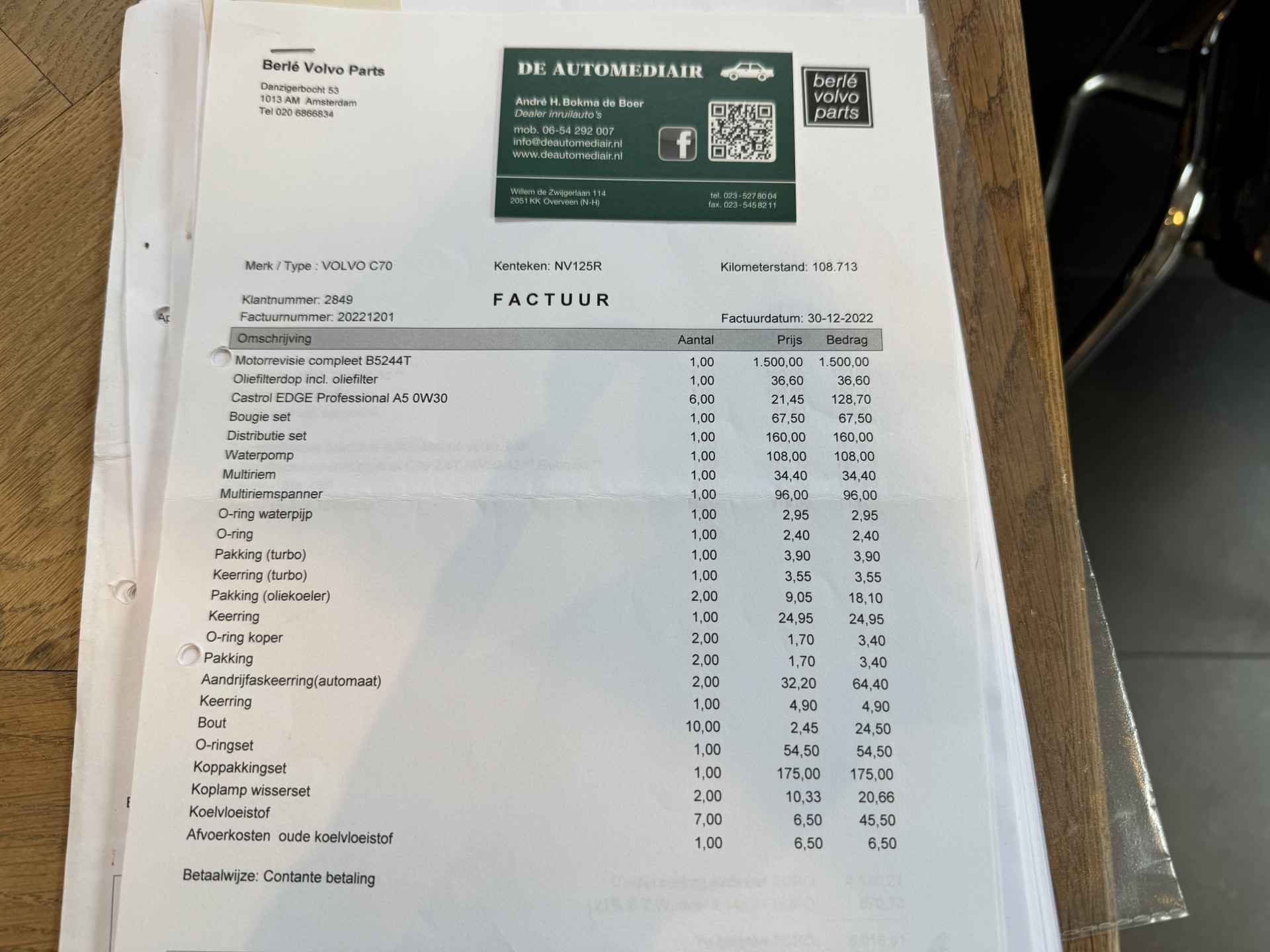 IN 2022 IS IS EEN BIJZONDER GROTE ONDERHOUDSBEURT UITGEVOERD INCLUSIEF NIEUWE DISTRIBUTIERIEM VOOR € 4.500,= !! FACTUUR AANWEZIG VAN VOLVO SPECIALIST.