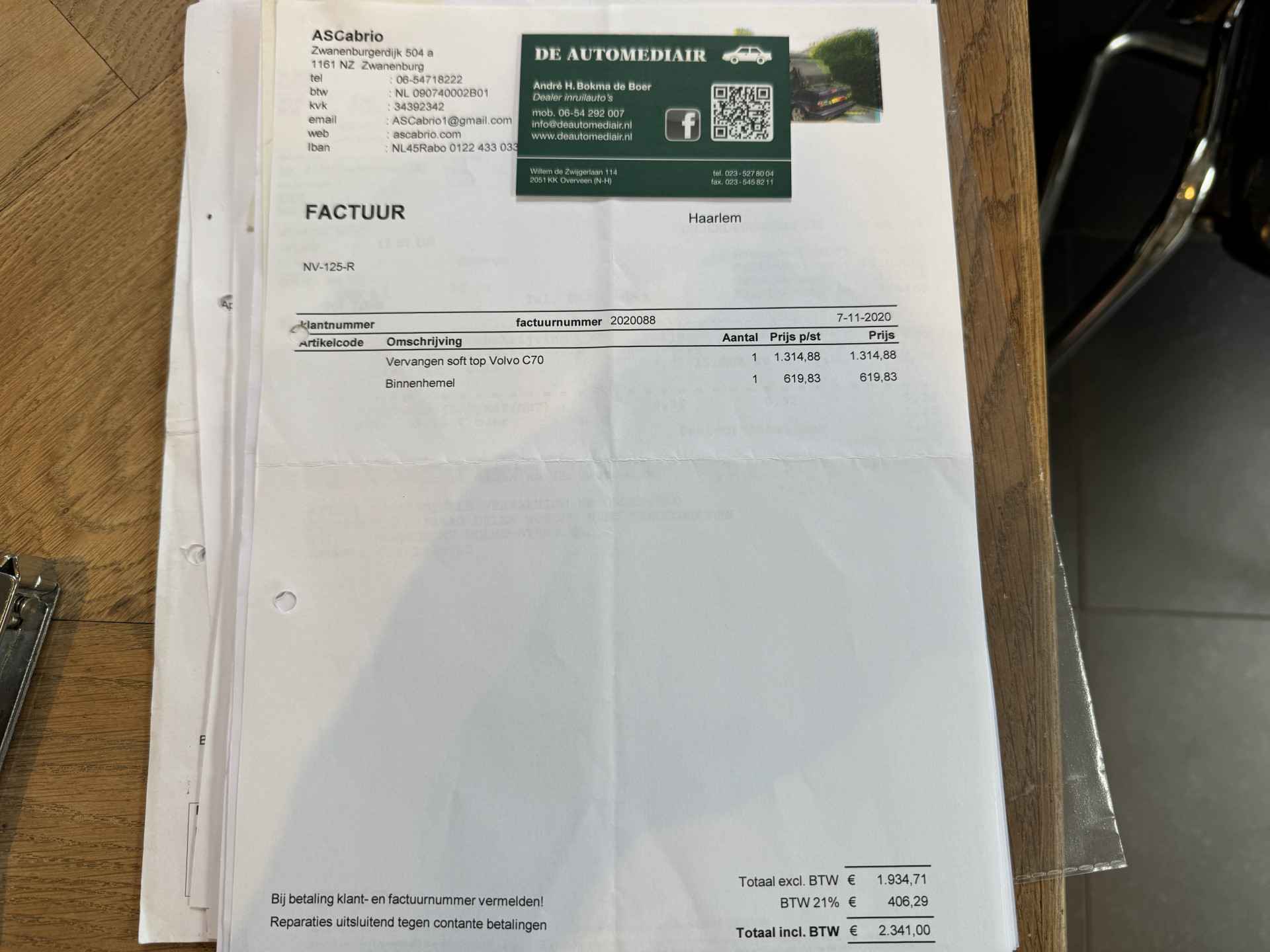 IN 2020 IS DE KAP VERNIEUWD INCLUSIEF DE BINNENHEMELBEKLEDING VOOR € 2.300,= FACTUUR AANWEZIG.