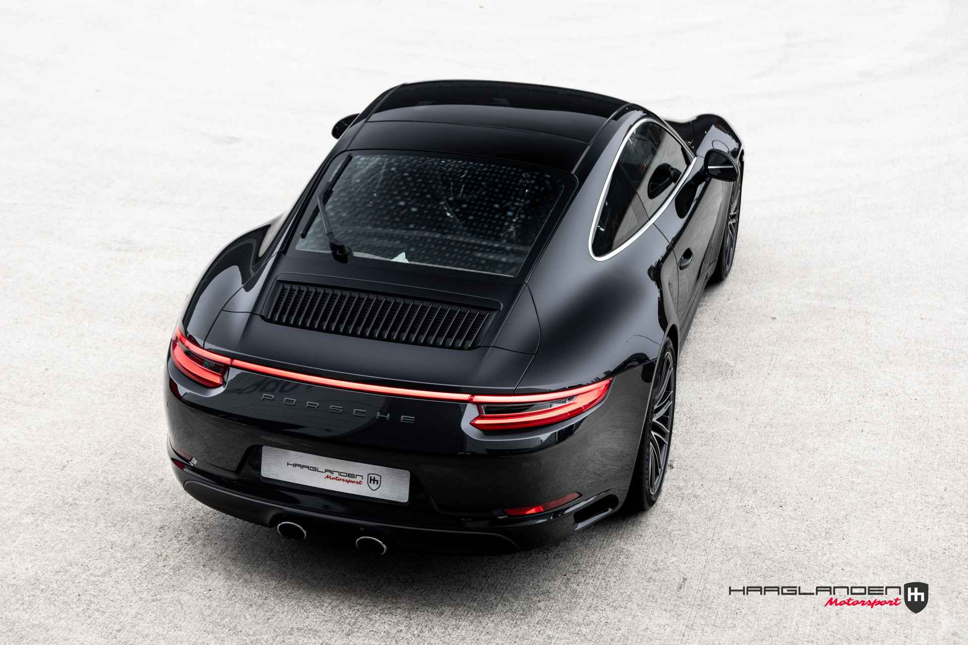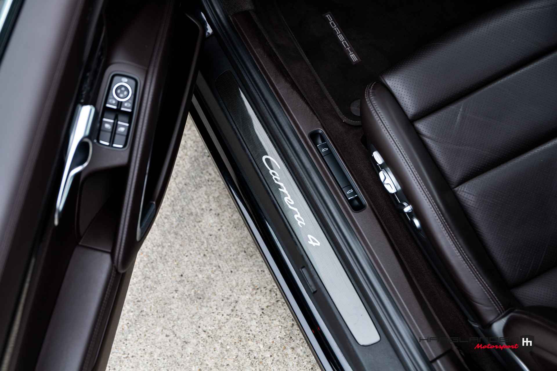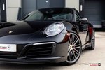 Bij ons in de showroom deze prachtige Duits geleverde 991 Carrera 4 generatie 2 Coupe. Dit exemplaar is uitgevoerd in een klassiek en tijdloos thema, zwart exterieur van buiten en bruin lederen interieur van binnen. Het mooie aan deze Carrera 4 is dat de carroserie de brede heupen heeft combineert met de 20’’ velgen die een chique uitstraling geeft. Daarnaast heeft de 911 nog meer leuke design features zoals nieuwe xenon koplampen en LED dagrijverlichting, uitklapbare spoiler en centraal geplaatste uitlaatsierstukken voor de 3 liter boxer motor met turbo. Vanaf de 991.2 heeft de 911 namelijk ook als ‘instapper’ een turbo motor ter vervanging van de atmosferische 3.4 liter boxer motor.