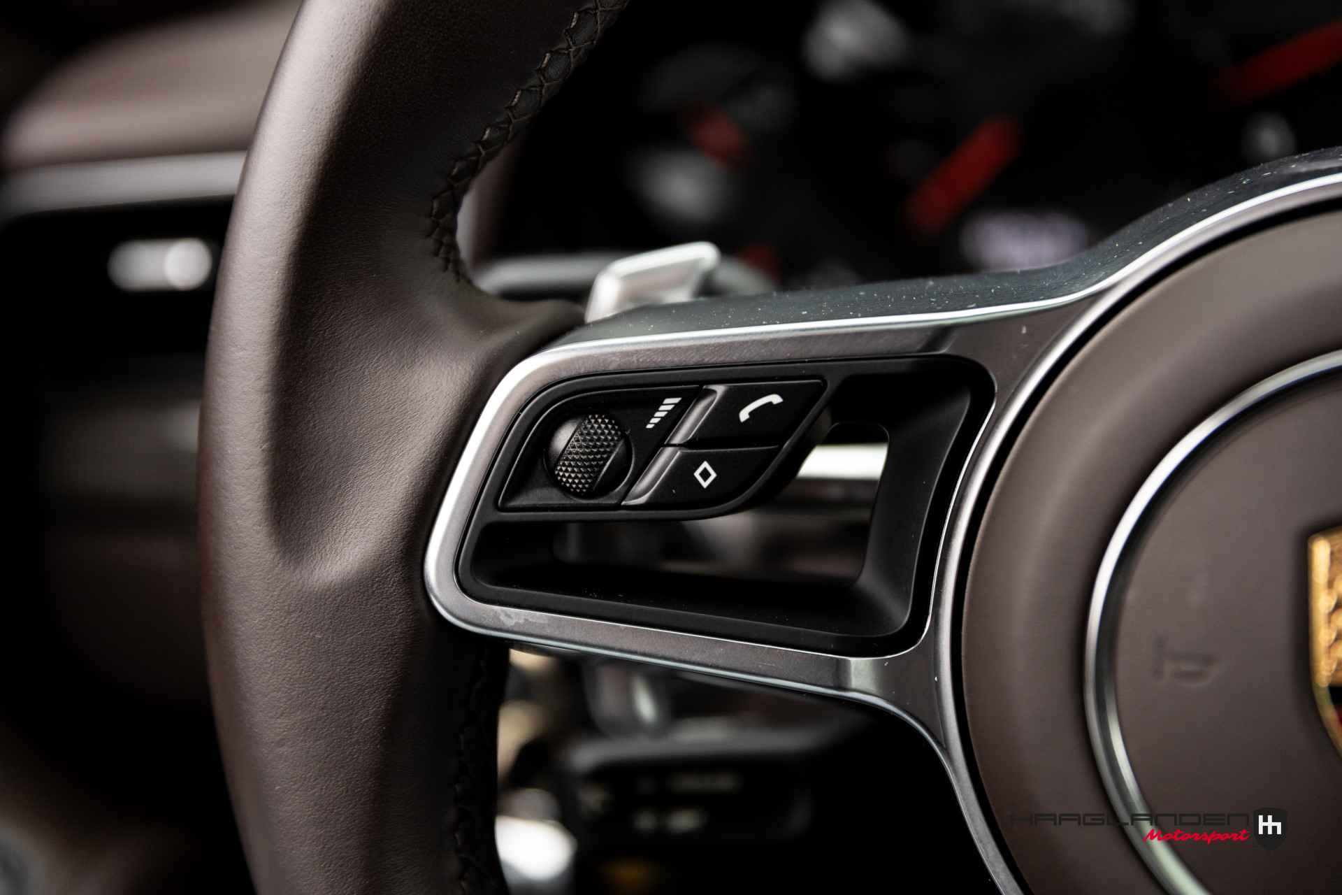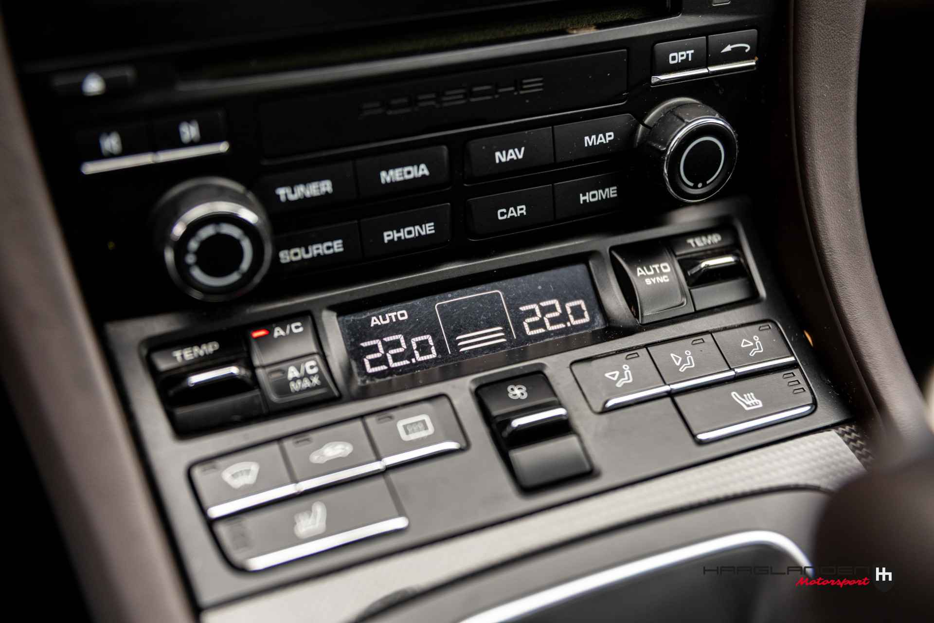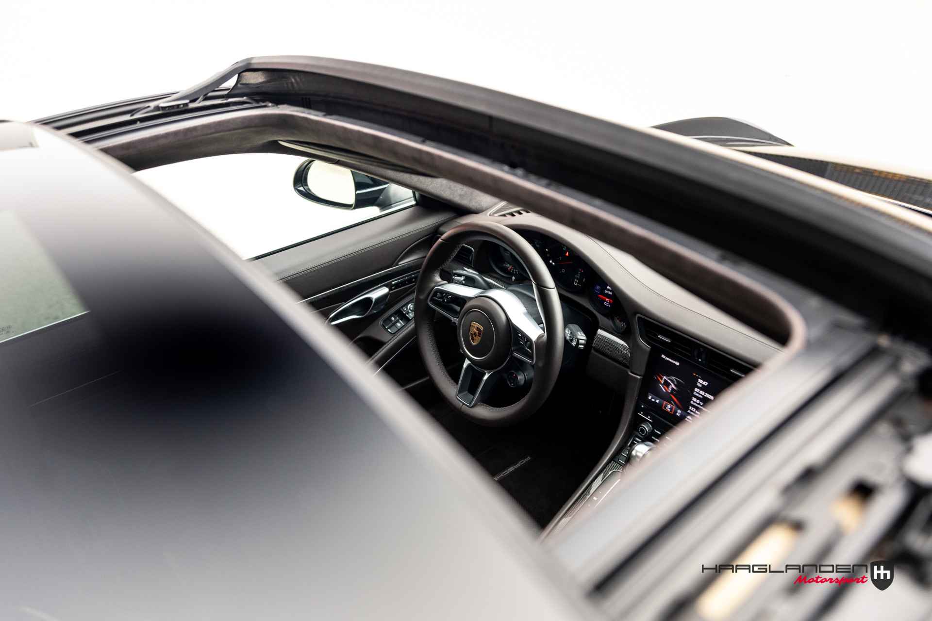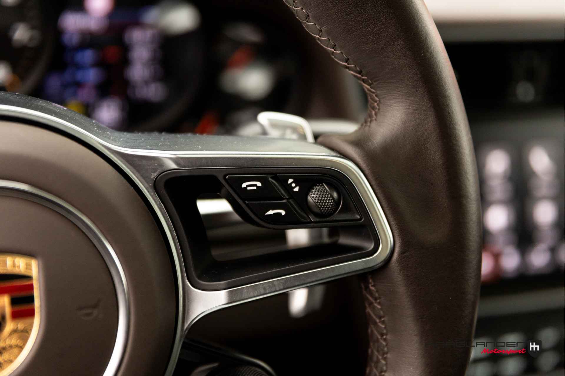 Het luxe bruine lederen interieur contrasteert prachtig met het donkere exterieur en is dankzij het gebruik van fijne materialen een prettige plek om te zijn. Zowel bij sportief als normaal gebruik zitten de meervoudige elektrisch verstelbare sportstoelen, die verwarmbaar zijn heerlijk en is elke rit aangenaam om de 3,0 liter 6-cilinder boxermotor met een lekkere roffel wakker te schudden. Het geluid doet meteen vermoeden dat de 370 pk’s en 450 Newtonmeters jouw met geweld in de stoel drukken wanneer het gas erop gaat. Inderdaad, een perfecte zitpositie is een absolute must in plaats van luxe. Uiteraard zijn er ook vele opties aanwezig die via knoppen of het touch screen te bedienen zijn. Climate control bijvoorbeeld, maar ook een geweldig Bose surround sound audio systeem voor de beste muziekkwaliteit. Verder heb je de beschikking over DAB+, full map navigatie en boordcomputer. Het lederen sportstuur met schakelflippers is voorzien van sportplus knop waarmee de 911 veranderd van luxe Gran Tourer naar pure sportwagen door de schokdempers strakker af te stellen, sportuitlaat te openen en gasrespons plus stuurinput aan te scherpen.