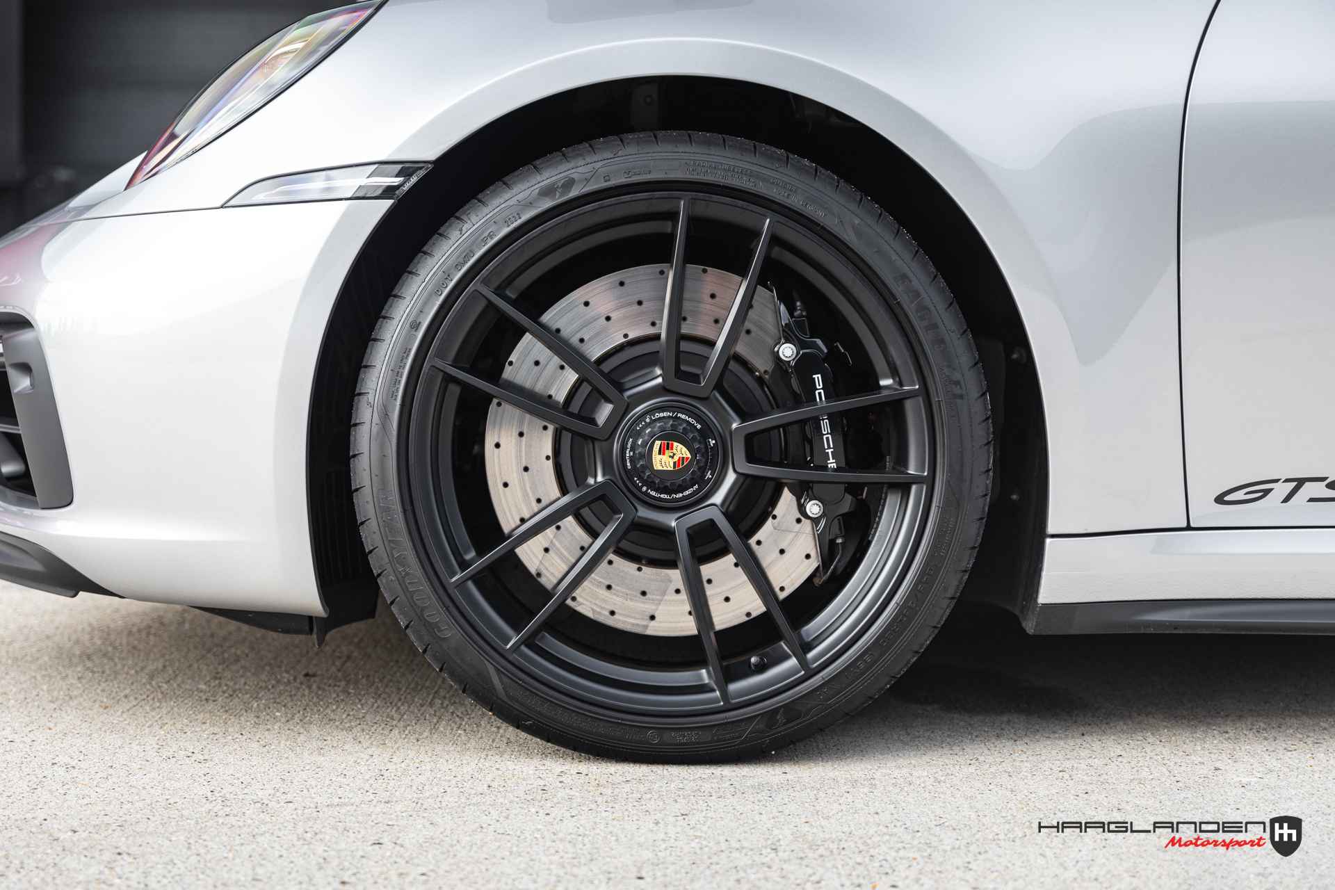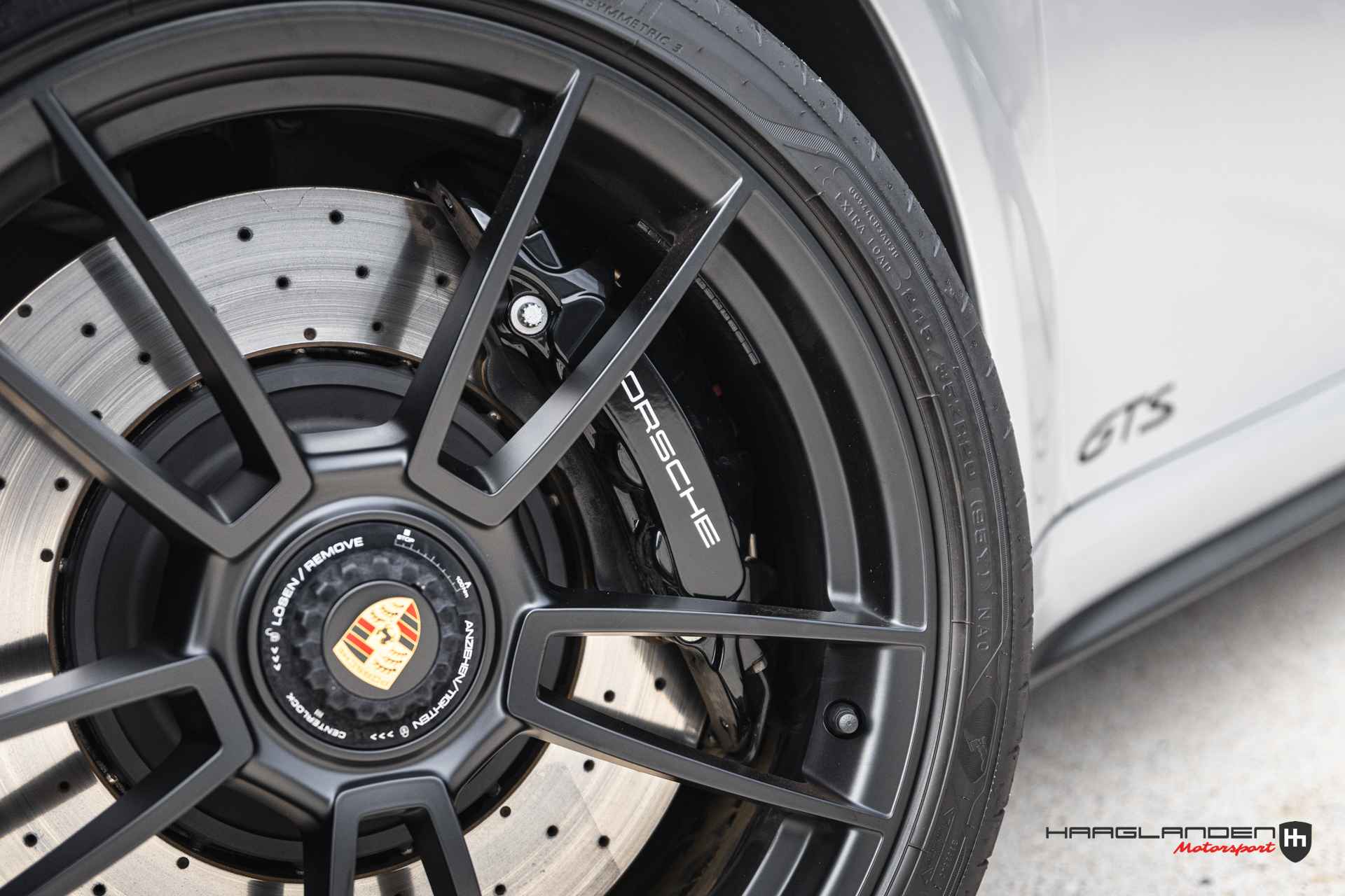 Porsche heeft de remmen aangepast aan het hogere vermogen van de GTS. De remmen komen van de 911 Turbo. De 20 inch (voor) en 21 inch (achter) grote, zwarte lichtmetalen velgen met centrale wielmoer gebruikt Porsche ook op de 911 Turbo S.