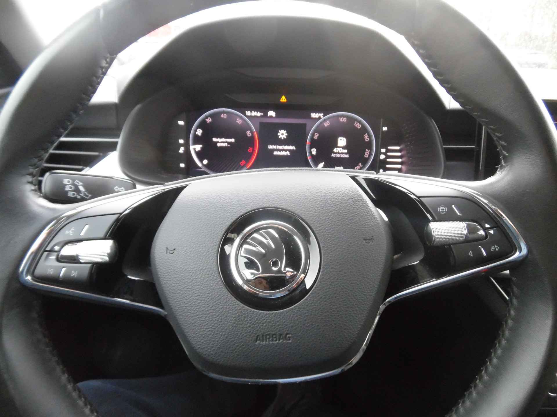 Het digitale dashboard stelt u in staat uw cockpitinterface te personaliseren. Zoals u van zo'n jonge auto mag verwachten, zijn hier ook de geavanceerde remote services aanwezig. Simpelweg met een app op uw smartphone controleert u op afstand de status van de auto en bedient u diverse functies. U kunt tijdens de rit uw ogen steeds op de weg houden, want het audiosysteem (met DAB!) en het navigatiesysteem met harde schijf kunt u bedienen vanaf het stuur of met spraak. Geef uw smartphone onderweg weer energie; zonder snoer, met de draadloze oplaadmogelijkheid voor telefoons. Uiteraard voorzien van Qi-technologie. Of het buiten nu warm is of koud, dankzij electronic climate control is het binnen altijd behaaglijk. U bent in deze ŠKODA ook voorzien van parkeersensoren voor en achter, regensensor, cruise control, automatisch dimmende binnenspiegel, lederen stuur en centrale deurvergrendeling met afstandsbediening.