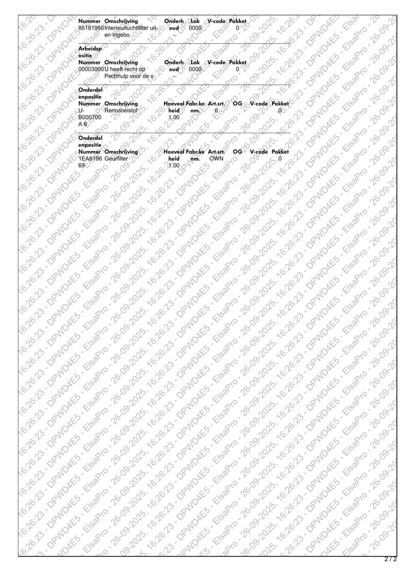 Tijdens het rijklaar maken van deze auto zijn de volgende handelingen verricht: