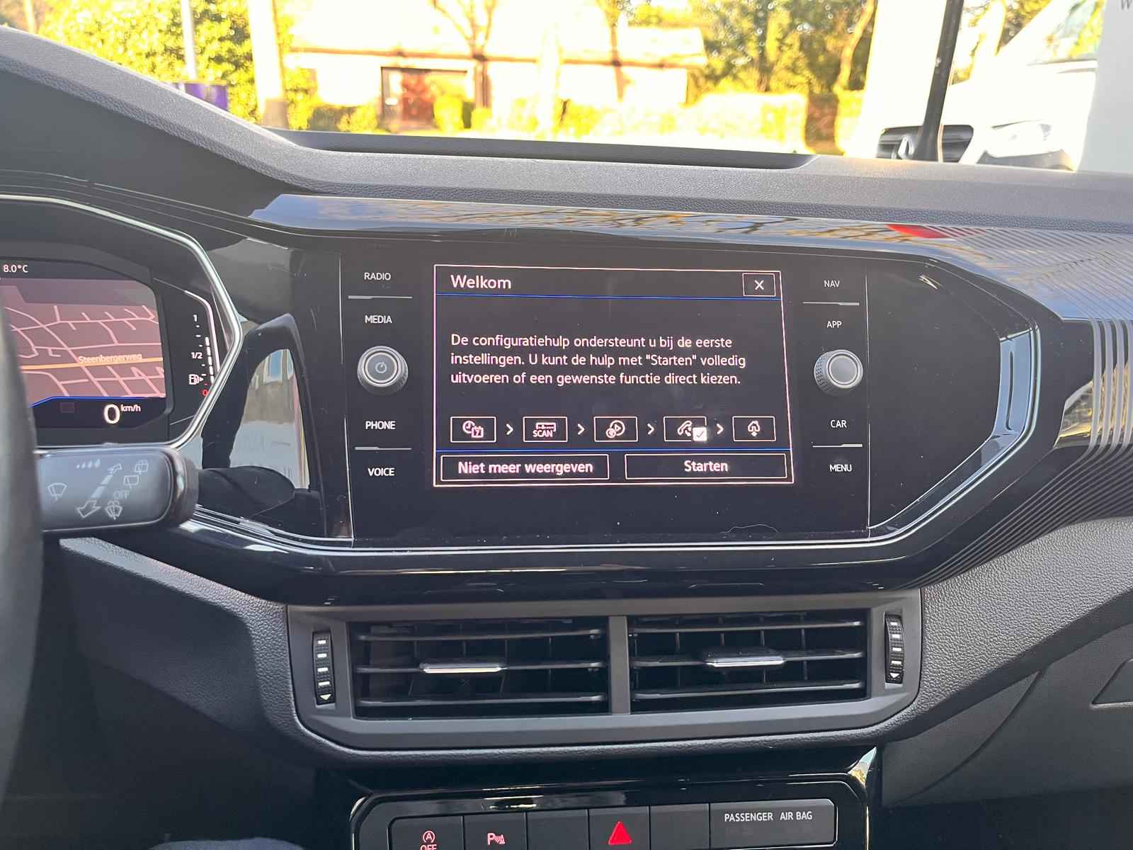 Snelheid, brandstofinfo, noem maar op. Het digitale dashboard houdt u permanent op de hoogte. Goed en overzichtelijk. Met adaptive cruise control houdt de auto zelfstandig afstand tot uw voorligger. Een veiligheidsverhogende optie waarmee u comfortabel onderweg bent. Connected Services zorgen ervoor dat de belangrijkste functies en data van de auto altijd en overal te checken zijn. Gewoon via de app op de smartphone. De bediening van het audio-installatiesysteem en het navigatiesysteem gebeurt met knoppen op het stuur. De audio is overigens voorzien van DAB-radio voor een altijd heldere ontvangst. Zoals van een eigentijdse auto verwacht mag worden, is deze Volkswagen T-Cross voorzien van een draadloze oplaadmogelijkheid voor telefoons. Ook is de Volkswagen uitgerust met: automatische airconditioning, parkeersensoren achter, regensensor, keyless entry, automatisch dimmende binnenspiegel en lederen stuur.