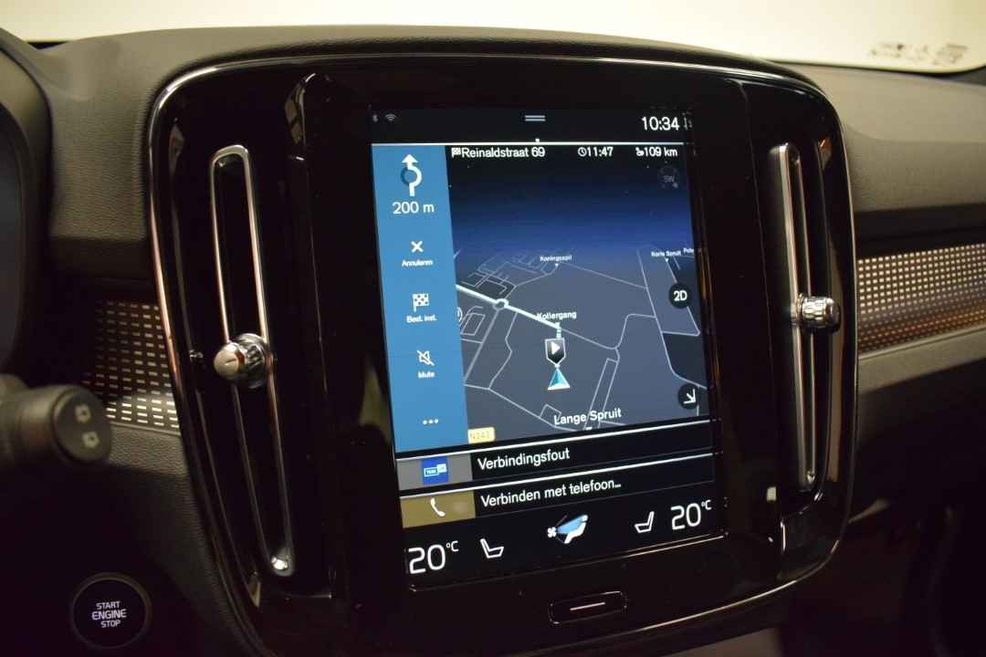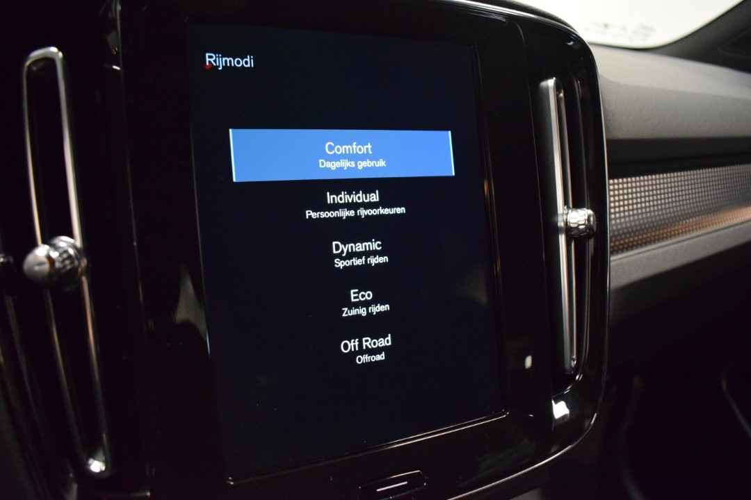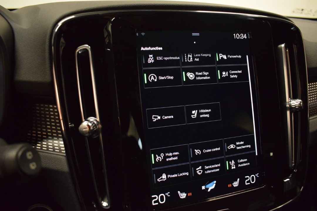 De nieuwste veiligheidssystemen komen in deze Volvo XC40 samen. Tijdens de rit hebt u altijd een bijrijder, want de verkeersbord-detectie leest de borden langs de weg en projecteert ze voor u op het instrumentarium. Deze Volvo XC40 is ook behulpzaam als het gaat om een rechte koers. Het Lane-keeping systeem signaleert en corrigeert als u onbedoeld de rijstrooklijnen dreigt te overschrijden. Voertuigen of personen buiten uw zicht kunnen gevaar opleveren. De actieve dodehoekdetectie waarschuwt direct. Verder is deze auto uitgerust met forward collision warning system, hill hold functie, brake assist, vermoeidheidsherkenning en bandenspanningcontrolesysteem.