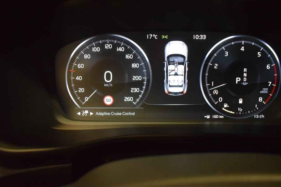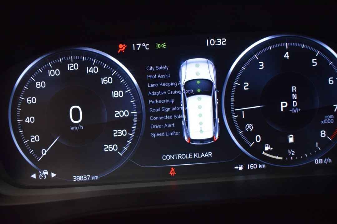 Slim, efficiënt, veilig en goed geïnformeerd rijden? Het digitale dashboard vertelt u alles wat u wilt weten. De achteruitrijcamera laat duidelijk zien hoeveel ruimte u nog heeft bij het inparkeren. Adaptive cruise control houdt de ingestelde snelheid vast en houdt automatisch afstand tot uw voorligger. Kop aan kont langzaam rijden: dan is afstand houden soms lastig. De file assistent helpt en zorgt automatisch voor veilige ruimte tot de voorligger. Ook als die tot stilstand komt. Waar u zelf ook bent, u staat altijd in contact met de auto via de app op uw smartphone. Zo controleert u uiteenlopende functies, ook op afstand. Ook is de Volvo uitgerust met: dashboard met spraakbediening, high performance audiosysteem, navigatiesysteem met harde schijf, WIFI-hotspot, achteropkomend verkeer waarschuwing en R-design.