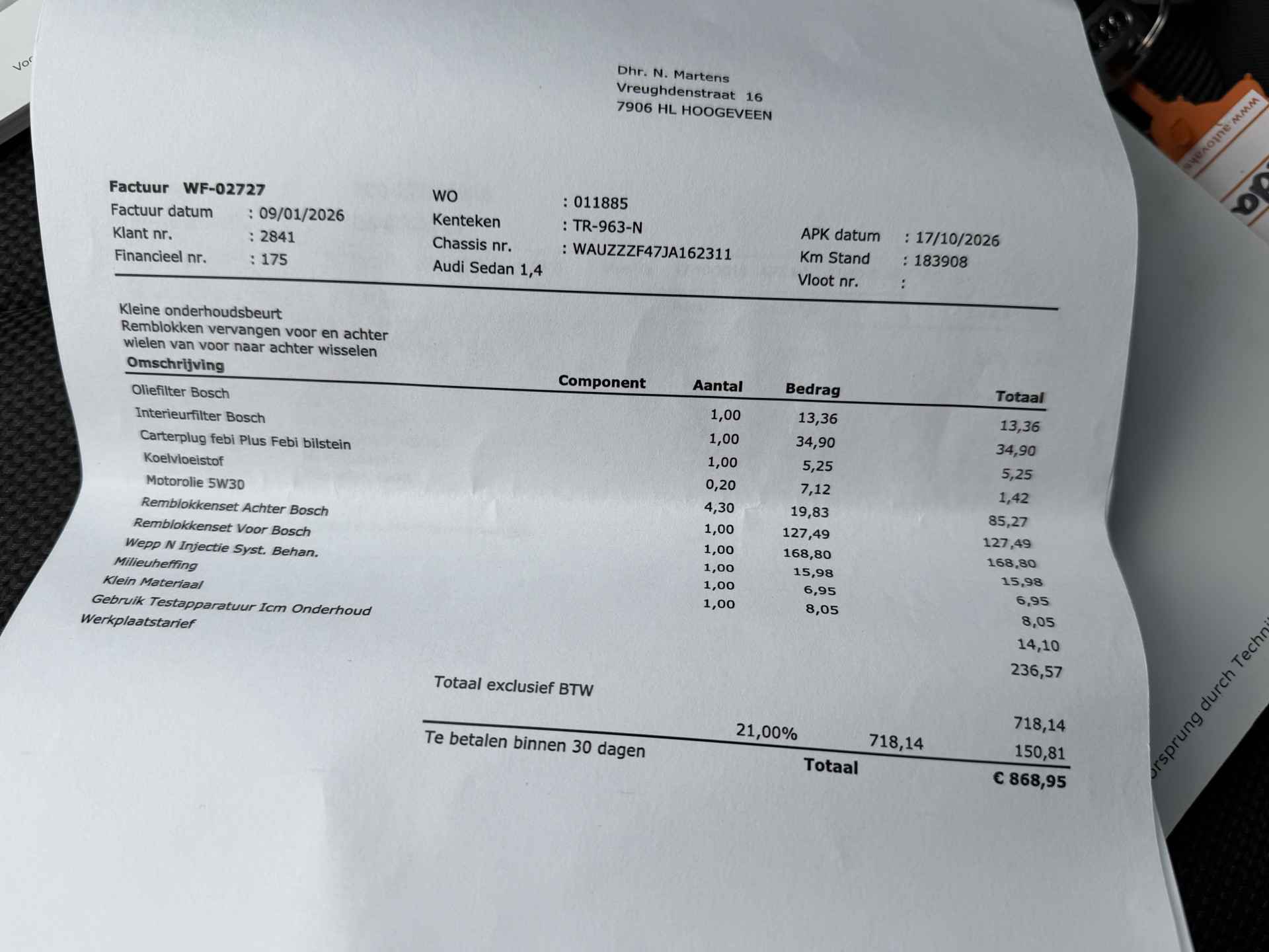 Volgende onderhoudsbeurt is bij 199.000km pas weer!