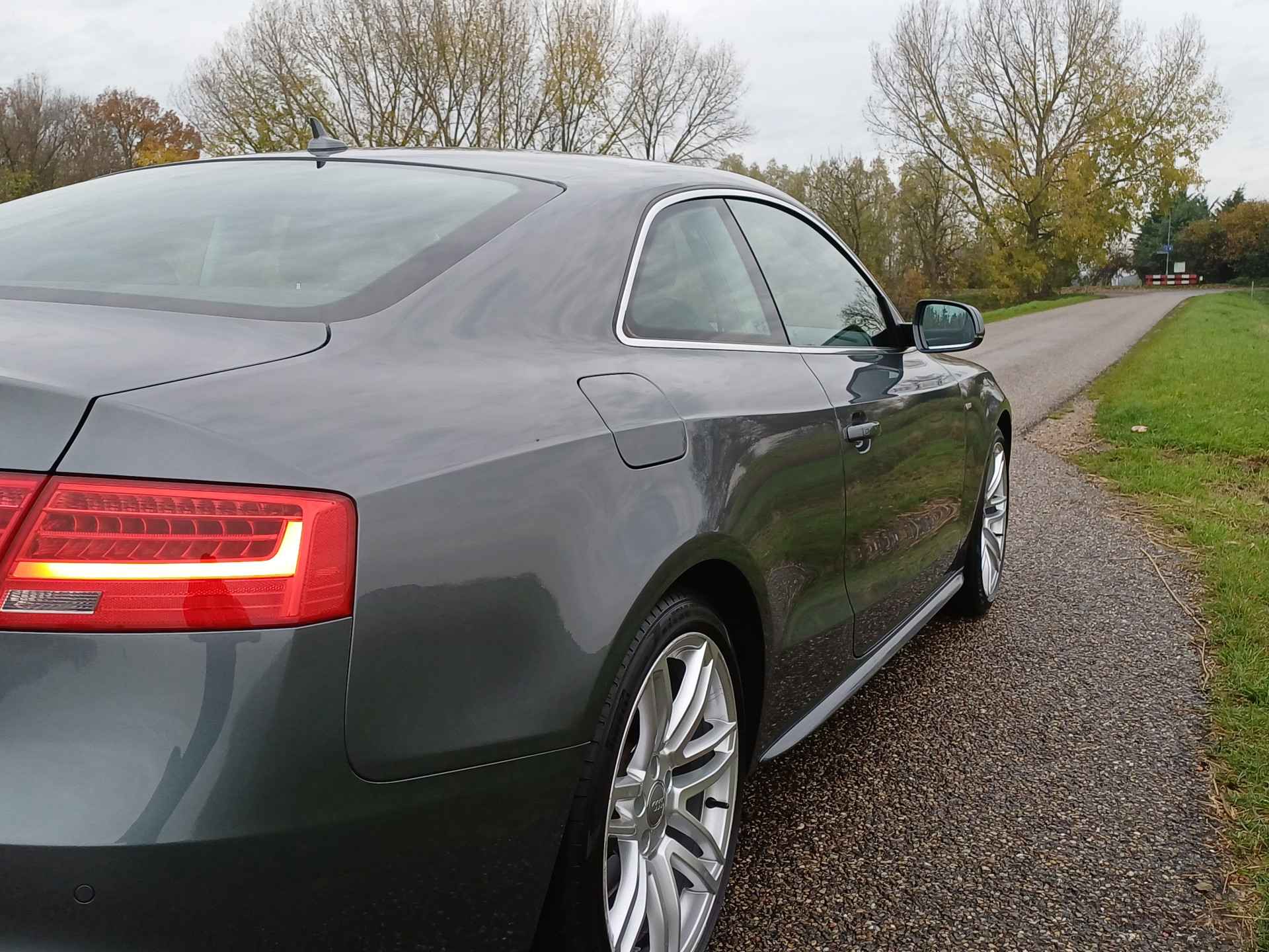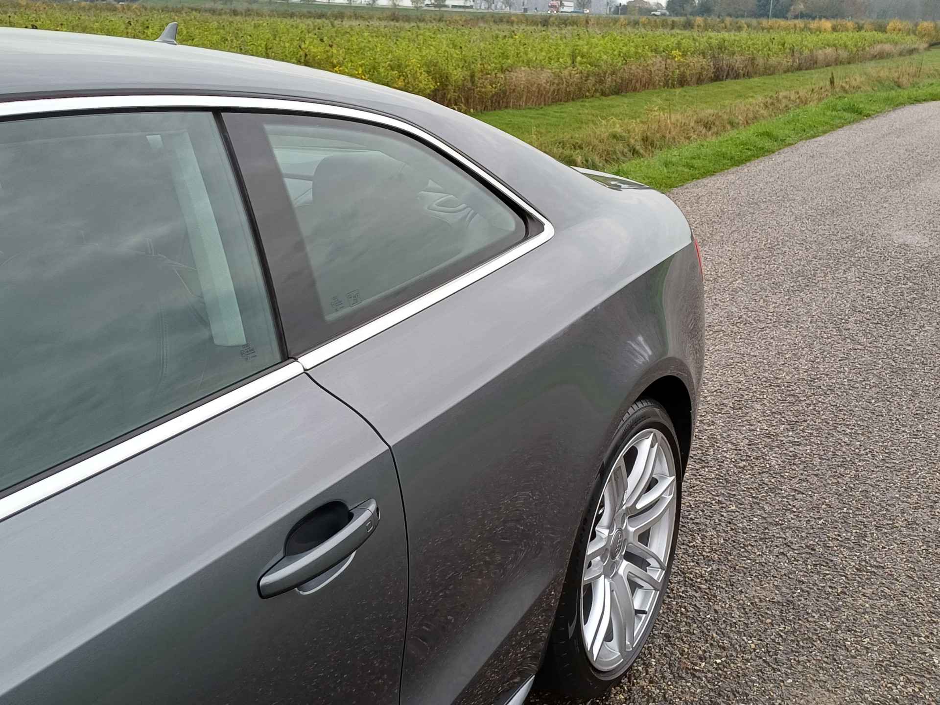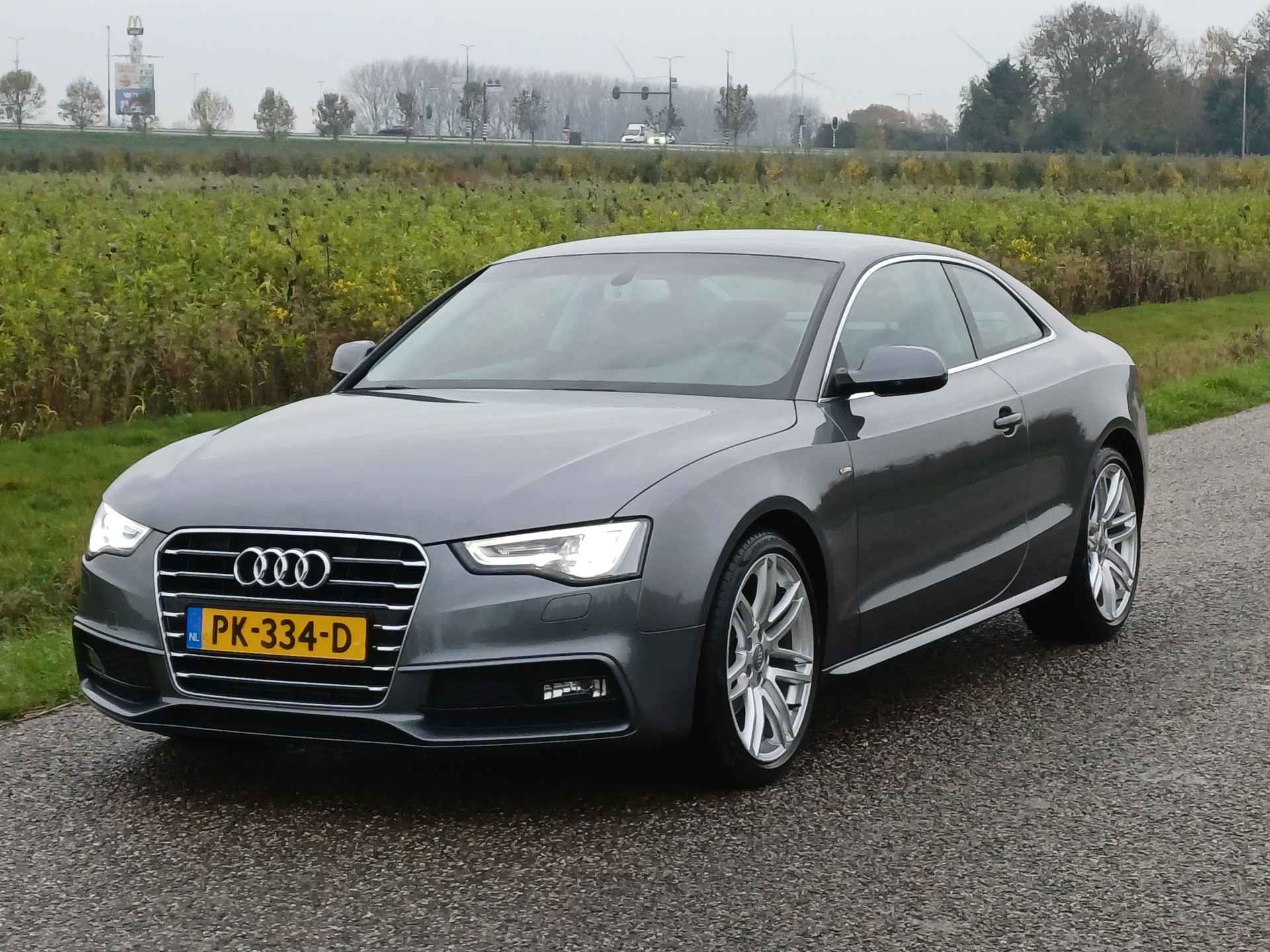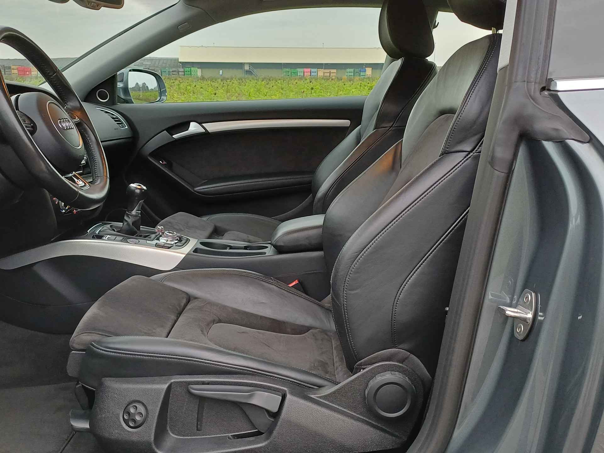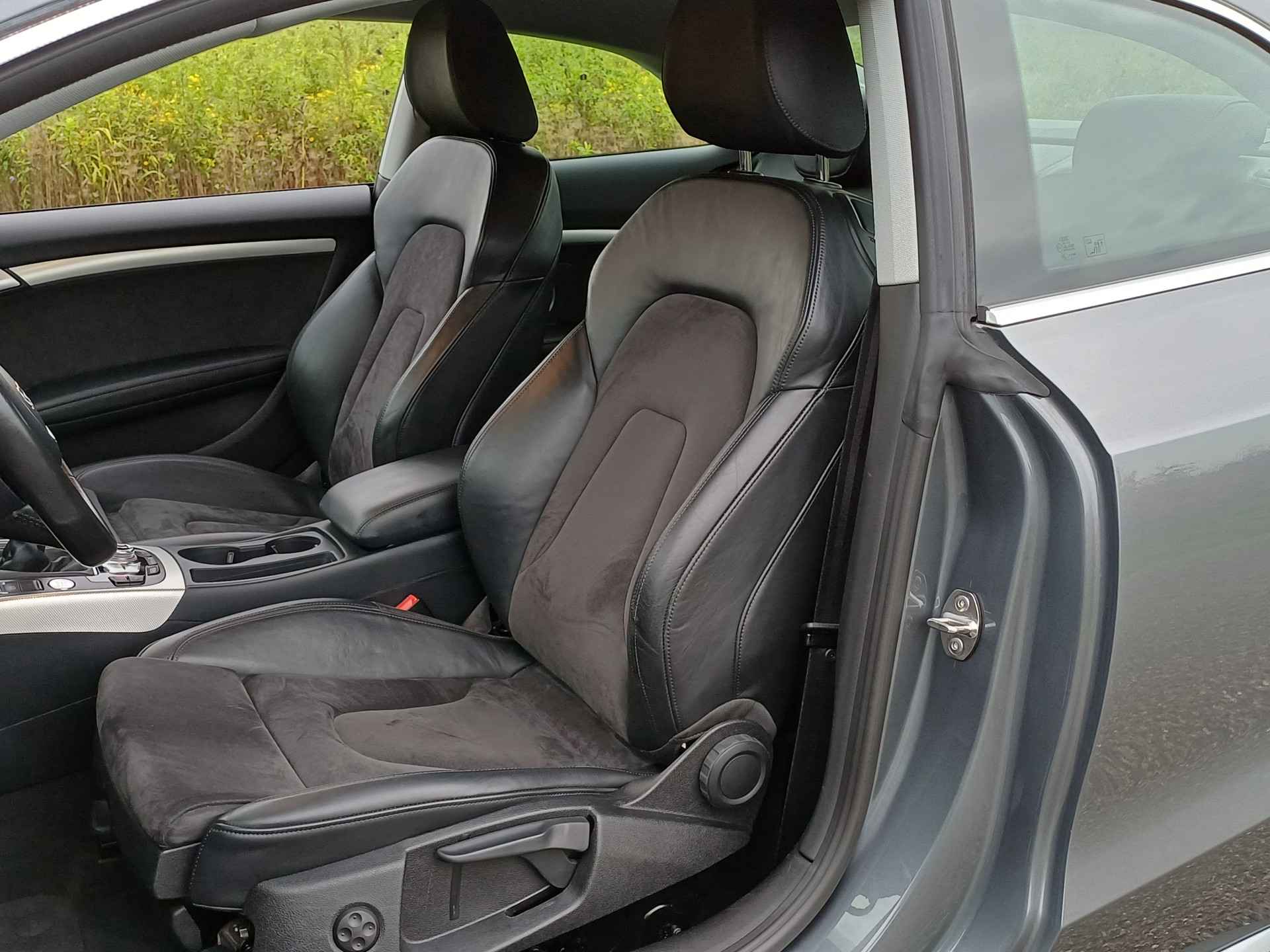 Let op! Trekhaak niet aanwezig. Kan geleverd en gemonteerd worden voor een meerprijs van Euro 875,-. De Audi A5 Coupé combineert comfort met een uitstekende wegligging en dynamische rijkwaliteiten. S-Line styling vertegenwoordigt de overtreffende trap in smaakvolle sportiviteit. Hij heeft een benzinemotor en een handgeschakelde zesversnellingsbak. Tijdens gure dagen is het prettig zitten in de verwarmbare voorstoelen. U blijft ook in de scherpe bochten goed ondersteund door de fraaie sportstoelen. De gasontladingslampen van de xenonverlichting zorgen voor een krachtige en heldere lichtbundel. In deze Audi profiteert u onder andere ook van: 19 inch lichtmetalen velgen, sportonderstel, halflederen bekleding, adaptief dempingsysteem en verstelbare lendensteunen.