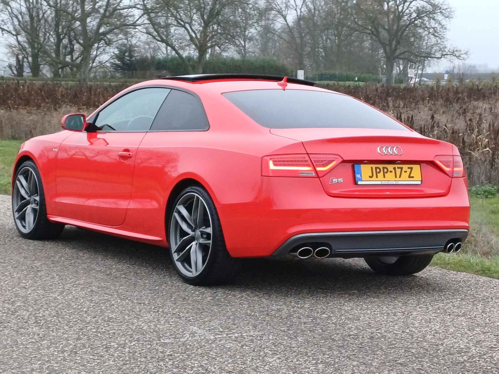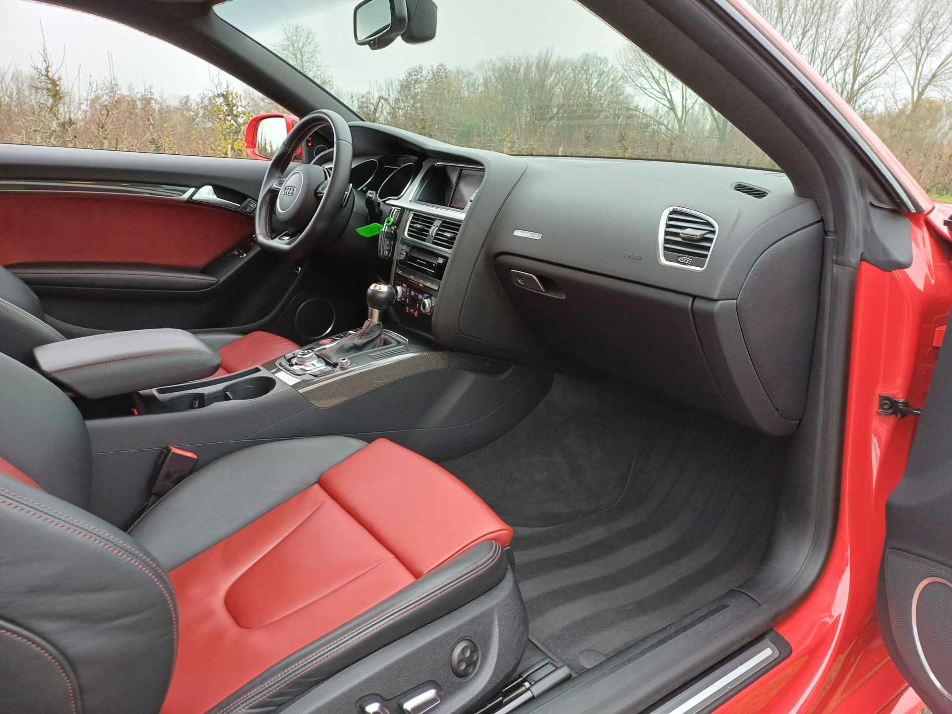 Tja, wat kunnen we zeggen? Dit is een echte Duitse auto, in alle opzichten. Niet rijden, maar fahren. Kunnen ze wel hoor, bij onze oosterburen. Ook de uitstraling is lekker sportief: de S-Line styling geeft echt dat beetje extra. Met een zescilinder benzinemotor en een automatische transmissie beschikt deze Audi over uitstekende prestaties. Als u nog nooit een elektrisch bediend glazen panorama dak hebt gehad, is dit echt een ontdekking. Licht, lucht en ruimtelijk gevoel maken elke rit tot een feest. Helemaal in dit fraaie lederen interieur. Deze Audi A5 Coupé heeft verwarmbare voorstoelen, voor zowel bestuurder als bijrijder. Pittig rijden wordt nog comfortabeler dankzij de fraaie sportstoelen. Xenonverlichting zorgt voor een krachtige en heldere lichtbundel. Bij de uitrusting van deze Audi horen onder meer 20 inch lichtmetalen velgen, sportonderstel en verstelbare lendensteunen.