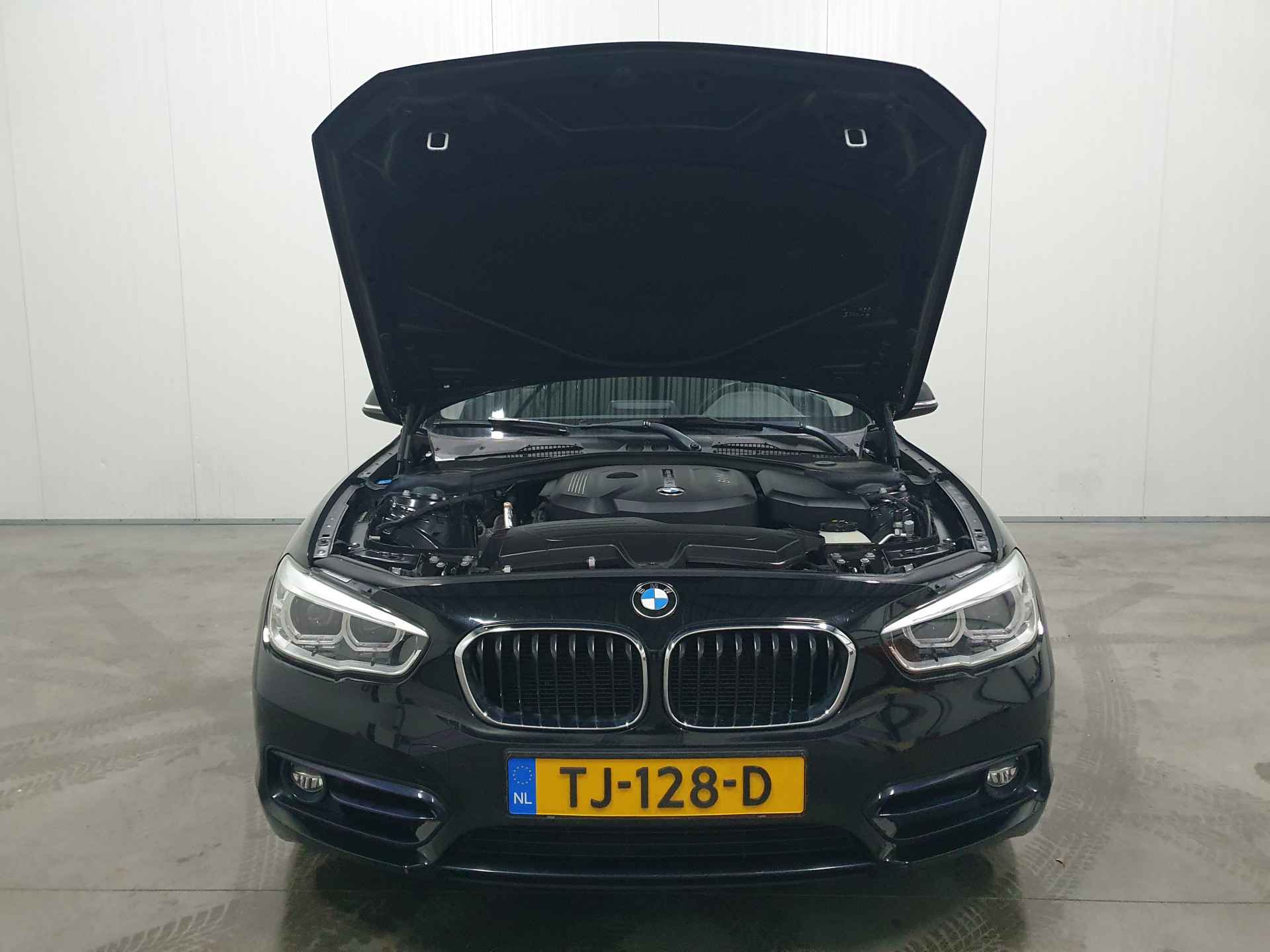 Deze BMW 1-serie is 'connected'. Belangrijke functies worden permanent gemeten en zijn uit te lezen via een speciale app, ook op afstand. Nooit meer de weg kwijt: daarvoor zorgt het onboard full map navigatiesysteem. Radarsensoren aan de achterkant van de auto zorgen voor een achteropkomend verkeer waarschuwing als de afstand tot het verkeer achter te klein wordt. Of het buiten nu warm is of koud, dankzij electronic climate control is het binnen altijd behaaglijk. Het geluidssysteem is gemakkelijk en veilig te bedienen vanaf het stuur. De BMW is standaard voorzien van: parkeersensoren achter, regensensor, cruise control, sportstuurwiel, centrale deurvergrendeling met afstandsbediening en boordcomputer.