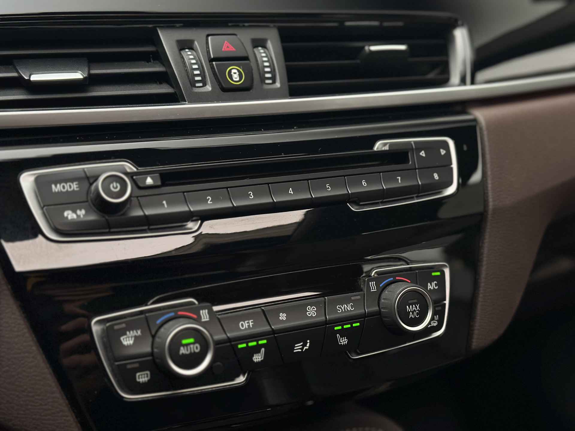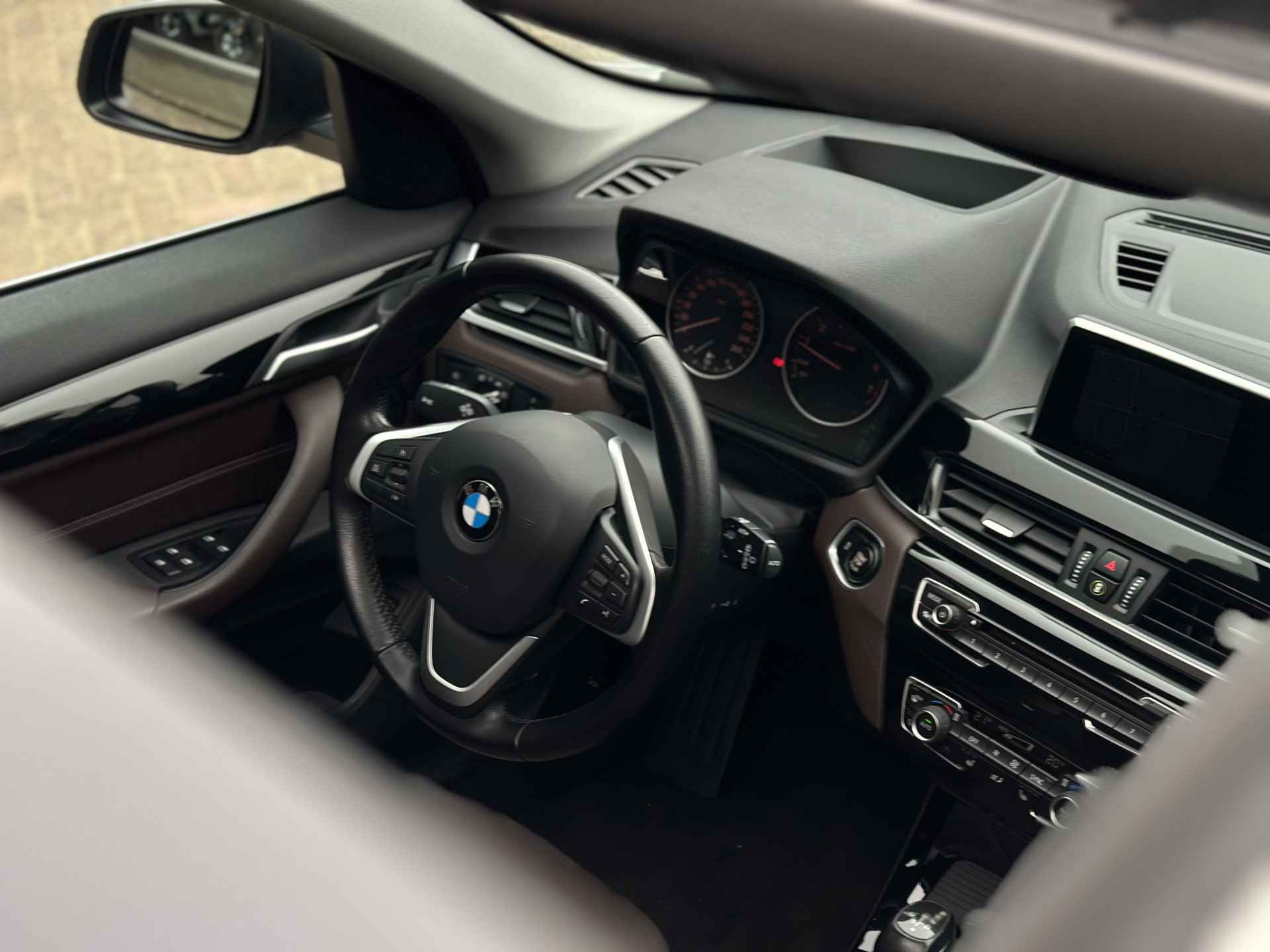 Zoals u mag verwachten van deze BMW X1 is hij uitgerust met een reeks aan actieve veiligheidssystemen. Onderweg zorgt verkeersborddetectie ervoor dat u geen waarschuwingsbord mist. Het systeem van forward collision warning, of in gewoon Nederlands 'botswaarschuwing', treedt in werking als de sensor te weinig afstand signaleert met een voor- of tegenligger. De auto is ook uitgerust met head-up display, hill hold functie, brake assist en bandenspanningcontrolesysteem.