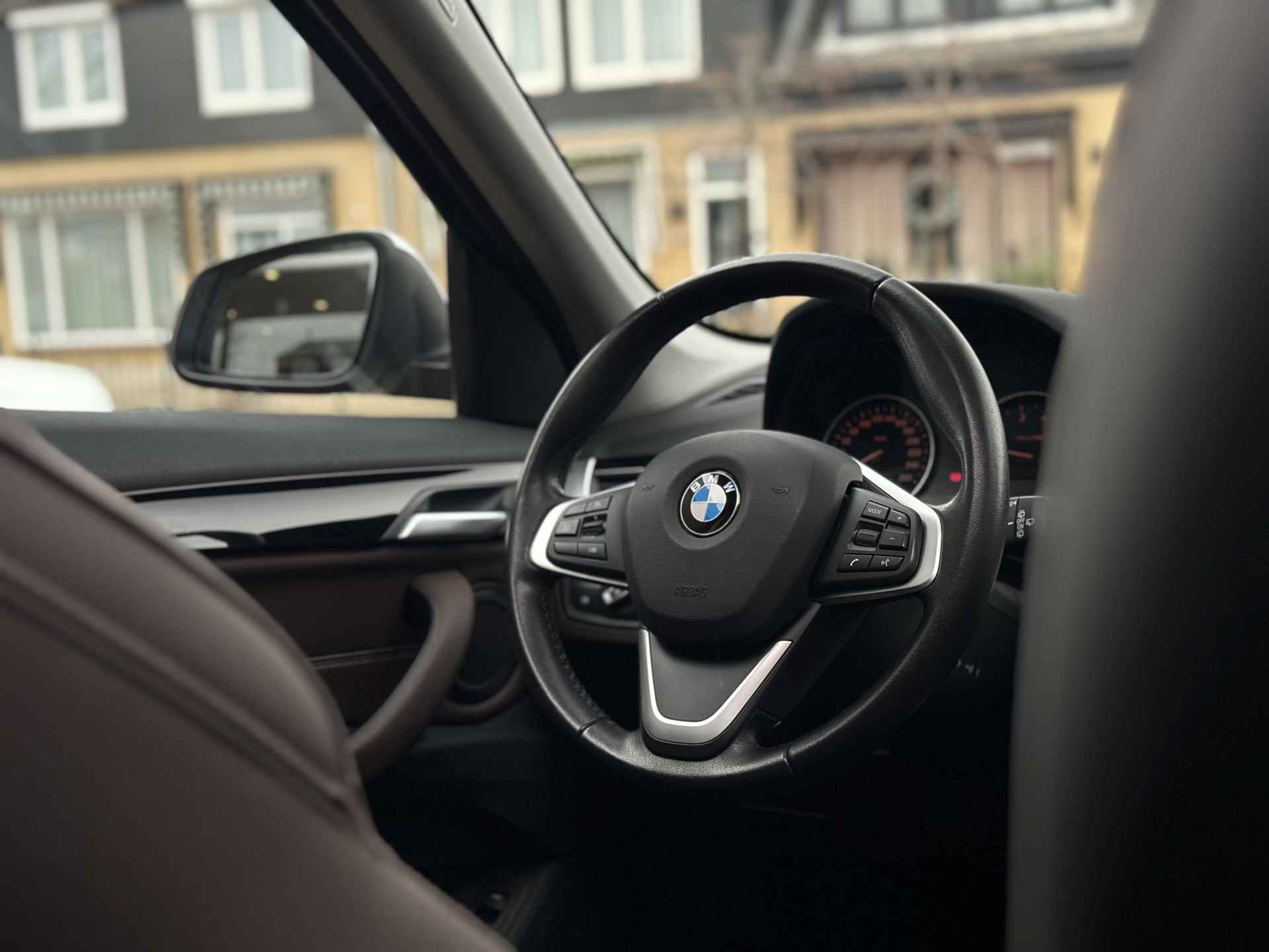 Deze BMW X1 bewijst haar klasse met een elegant uiterlijk en een comfortabele binnenruimte, onmiskenbaar een kwaliteitsauto uit Duitsland. Hij heeft een benzinemotor en een automatische transmissie. Een blik van dichtbij onthult meteen twee mooie pluspunten: het lederen interieur en de elektrisch bedienbare achterklep. Op koude en donkere dagen zijn de verwarmbare voorstoelen een uitkomst. Tot de voorzieningen van deze auto behoren 17 inch lichtmetalen velgen, LED koplampen, in delen neerklapbare achterbank, LED-achterlichten en snelheidsafhankelijke stuurbekrachtiging.