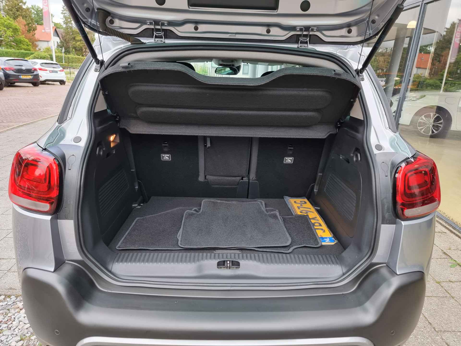In de Citroën C3 Aircross Shine zeer Luxe heeft uw veiligheid en die van uw omgeving prioriteit. De camera van de verkeersborddetectie herkent verschillende soorten verkeersborden en toont deze op het dashboard. Het Lane-keeping systeem let constant op en waarschuwt of corrigeert als u onoplettend over de lijnen van de rijstrook gaat. Forward collision warning is een automatisch waarschuwingssysteem dat direct in werking treedt bij gevaar voor een kop-staartbotsing. Bovenop deze veiligheidsfeatures heeft deze Citroën bovendien head-up display, hill hold functie en bandenspanningcontrolesysteem.