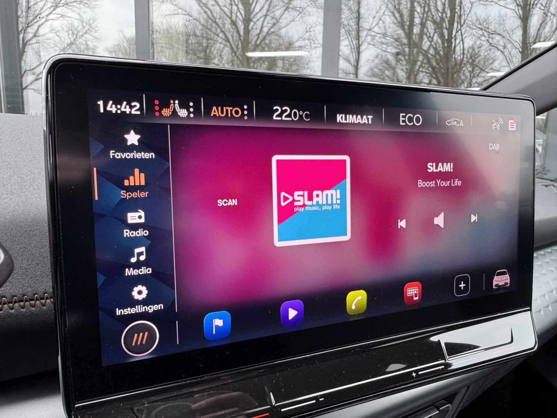Elektrisch vermogen of onderscheidend vermogen? De CUPRA Born heeft het allebei in overvloed. Met de elektromotor zoeft u fluisterzacht over de weg. Een krachtige motor geeft deze auto zijn sportieve prestaties. Lang onderweg zijn kan een behoorlijke uitdaging zijn voor rug en schouders. Daarom zijn de verwarmbare voorstoelen voorzien van een weldadige massagefunctie. Pittig rijden wordt nog comfortabeler dankzij de fraaie sportstoelen. Bij de uitrusting van deze auto horen onder meer 19 inch lichtmetalen velgen, Full LED koplampen, sportonderstel, donker getint glas achter, in delen neerklapbare achterbank en LED-achterlichten. Het digitale dashboard vertelt u alles wat u wilt weten voor een slimme, comfortabele en veilige rit. De achteruitrijcamera levert eersteklas parkeerservice. U weet precies hoeveel ruimte u nog heeft, in beeld en geluid. Als u de adaptive cruise control inschakelt, regelt de auto zelf de snelheid en de afstand tot de auto voor u. Ingebouwde spraakbediening maakt het mogelijk om de auto te bedienen zonder dat uw aandacht wordt afgeleid. Met uw smartphone maakt u overal contact met de auto. Remote services geven direct inzicht in uiteenlopende functies en zijn op afstand te activeren. En dan is deze auto ook nog eens voorzien van full map navigatiesysteem, automatische airconditioning, draadloos opladen, DAB ontvangst, regensensor en sportstuurwiel.