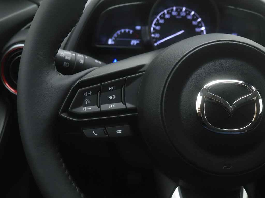 Let op: dit betreft een auto welke door ons wordt ingezet als vervangend vervoer. De werkelijke kilometerstand kan afwijken van de getoond. De Mazda2 is werkelijk een heerlijke auto om kilometers mee te maken. De directe besturing, soepele transmissie maar bovenal de 90 pk sterke benzine motor geven de auto een sportief rijgedrag. De uitvoering betreft een Homura en dit is een actiemodel met uitrustingsvoordeel. Deze auto maakt zich uniek door de vele extra opties. De Homura uitvoering zorgt ervoor dat u niets ontbreekt aan luxe of comfort in de auto. Naast de bijzondere uiterlijke kenmerken heeft de Mazda2 een rijke uitrusting met onder andere: Climate Control, achteruitrijcamera en draadloze Apple CarPlay / Android Auto.