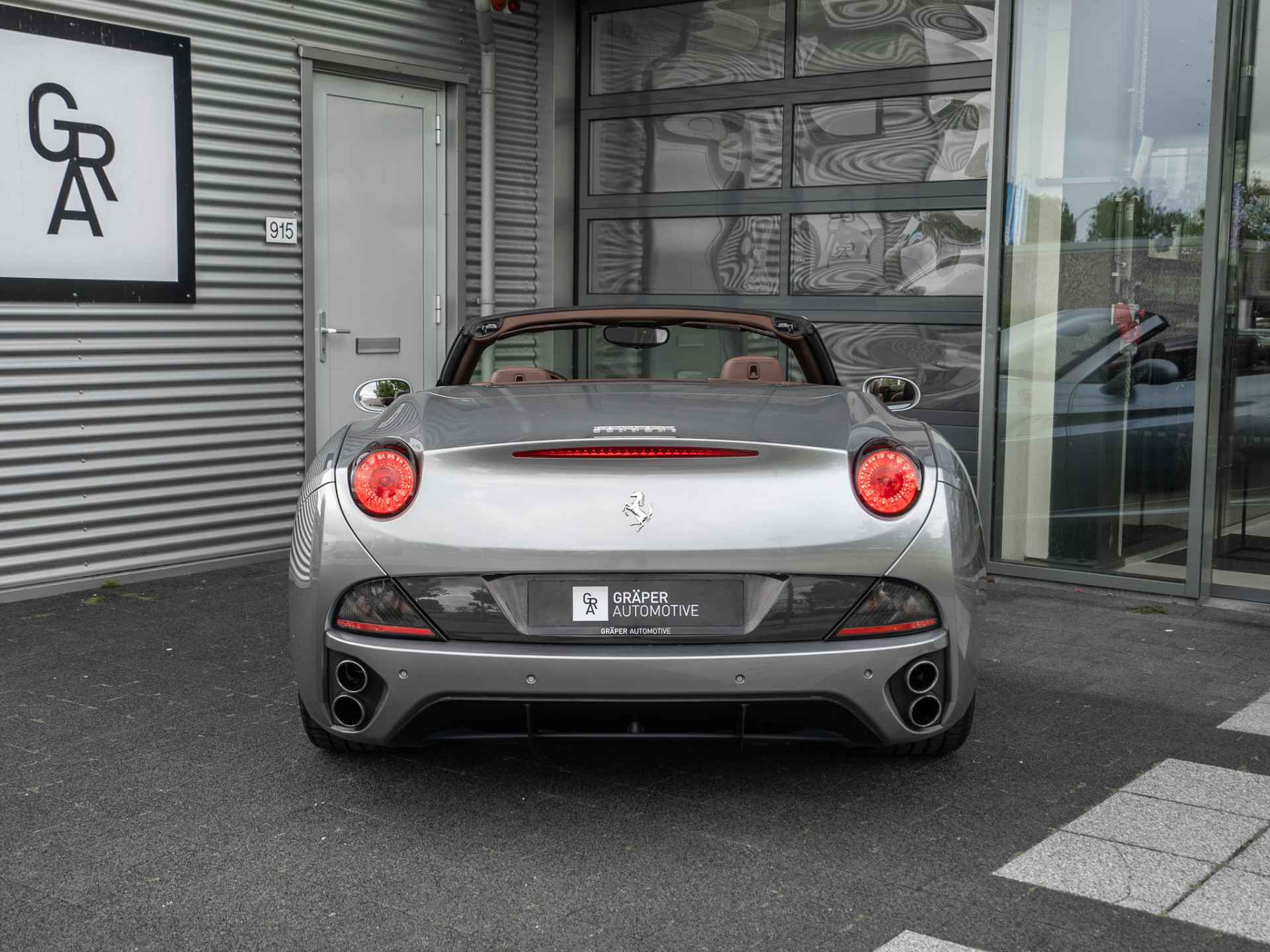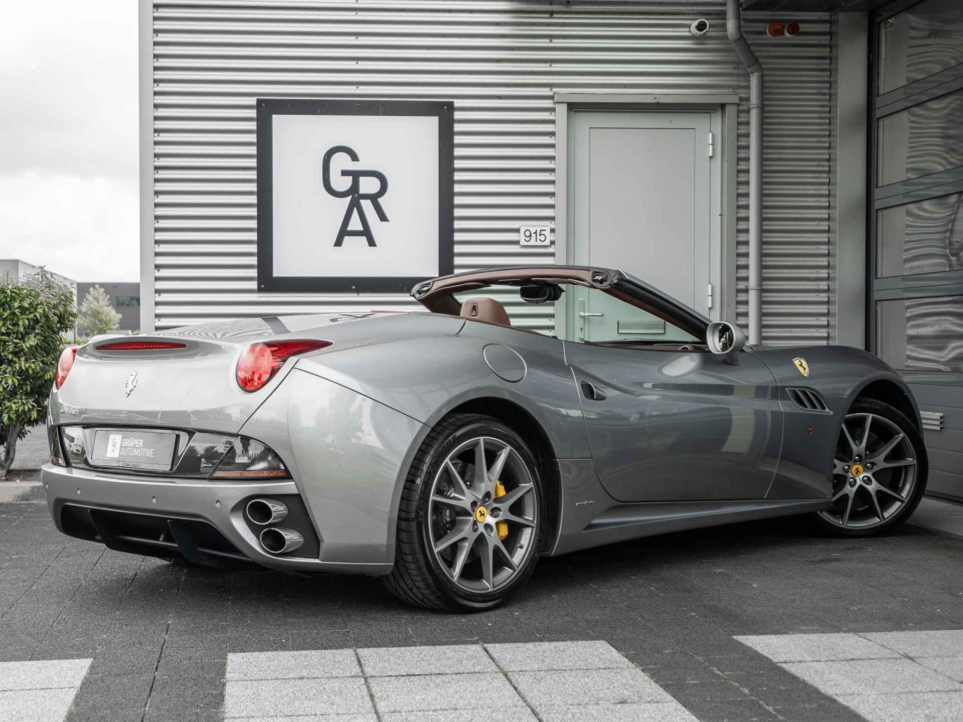 Een zéér exclusief uitgevoerde Ferrari California 4.3 V8 HELE uit maart 2013. Deze California is uitgevoerd in de lakkleur Grijs Metallic en beschikt over 20" lichtmetalen. De cabriolet is voorzien van een bruin leder interieur in combinatie met zwarte hemelbekleding en grijze gordels.