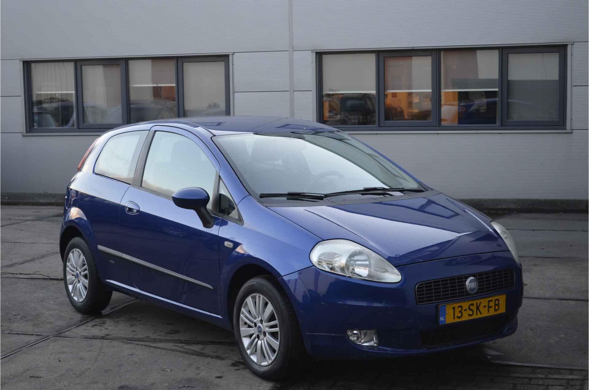 De Fiat Grande Punto biedt een overvloed aan stijl en elegance. Als zijn uitgebalanceerde vormgeving zijn Italiaanse afkomst niet duidelijk maakt, dan is het wel zijn krachtige motor en zijn sportieve weggedrag. Met zijn pittige benzinemotor stuurt u deze auto gemakkelijk en vlot door het verkeer. Ook 15 inch lichtmetalen velgen, elektrisch bedienbare en verwarmde buitenspiegels, elektrisch bedienbare ramen voor, metallic lak en snelheidsafhankelijke stuurbekrachtiging zijn aan boord.