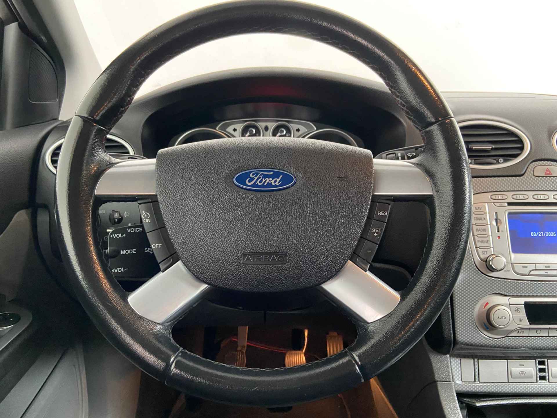 Het navigatiesysteem en het audio-installatiesysteem bedient u met knoppen op het stuur. Met automatische airconditioning hoeft u alleen de gewenste temperatuur in te stellen. Het systeem doet de rest. Parkeersensoren helpen u tijdens het in- en uitparkeren. Het drukke verkeer eist onderweg al uw aandacht op. Daarom is het goed dat deze Ford is voorzien van diverse systemen die u assisteren tijdens de rit. Een automatisch inschakelbare verlichting neemt het waar als het donker wordt of gaat schemeren, en schakelt dan automatisch de verlichting in. Op dezelfde manier "ziet" de regensensor de eerste spatjes regen en schakelt dan de ruitenwissers in, en als het harder gaat regenen zet hij de ruitenwissers ook in een snellere stand. Ook fijn als u op de voorgeschreven snelheid wilt blijven: de cruise control. Wat u ook in deze auto kunt vinden zijn automatisch dimmende binnenspiegel, centrale deurvergrendeling met afstandsbediening, boordcomputer en lederen versnellingspook.
