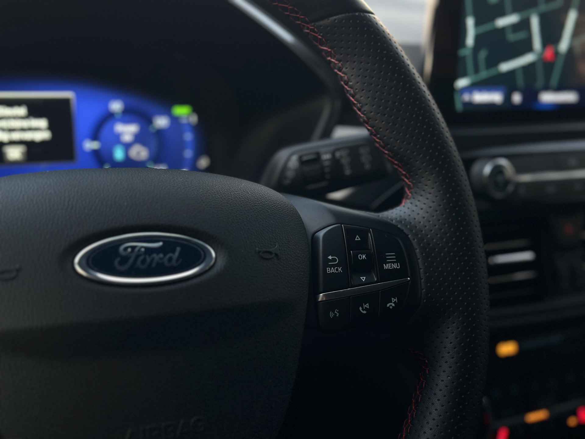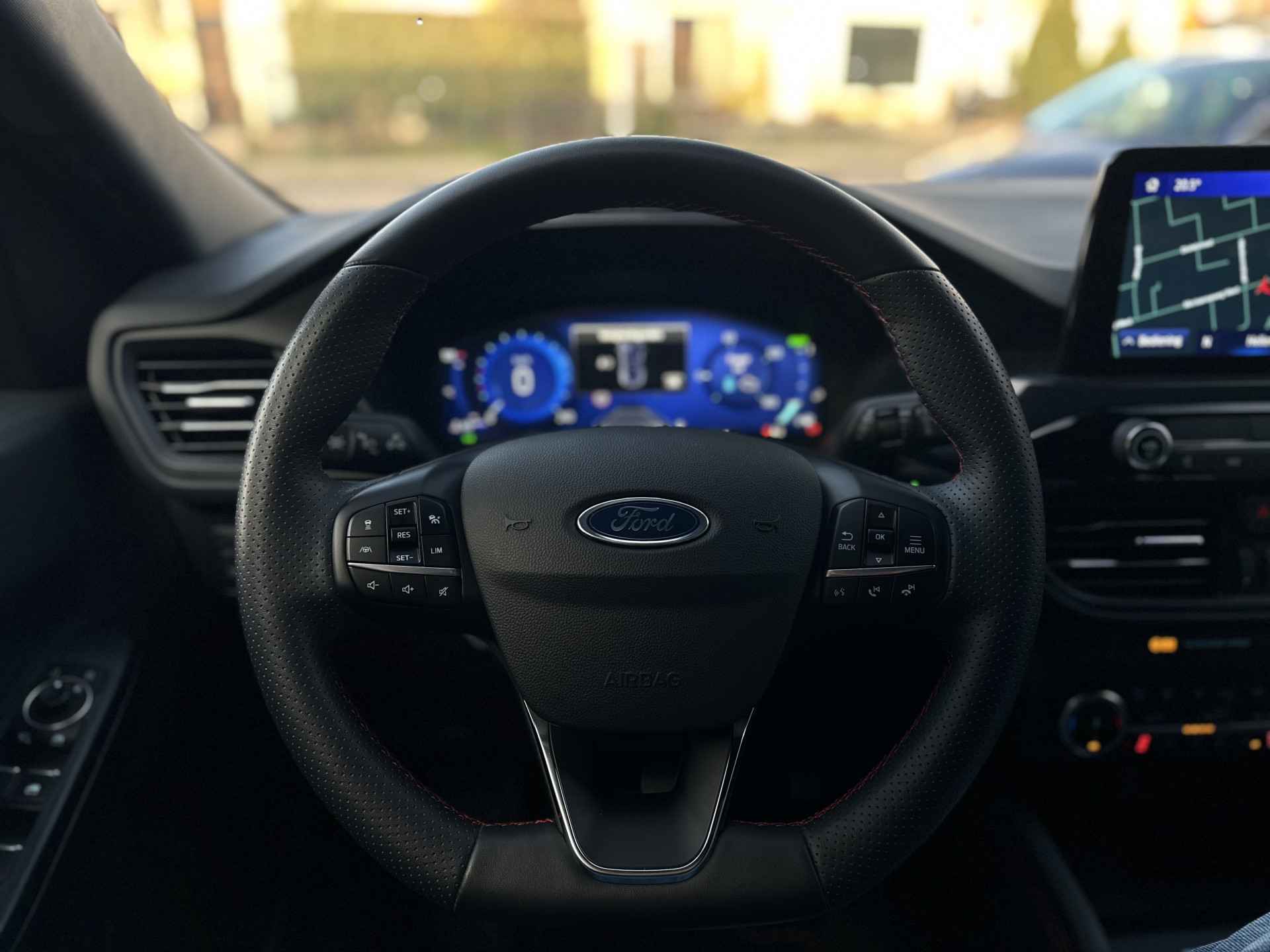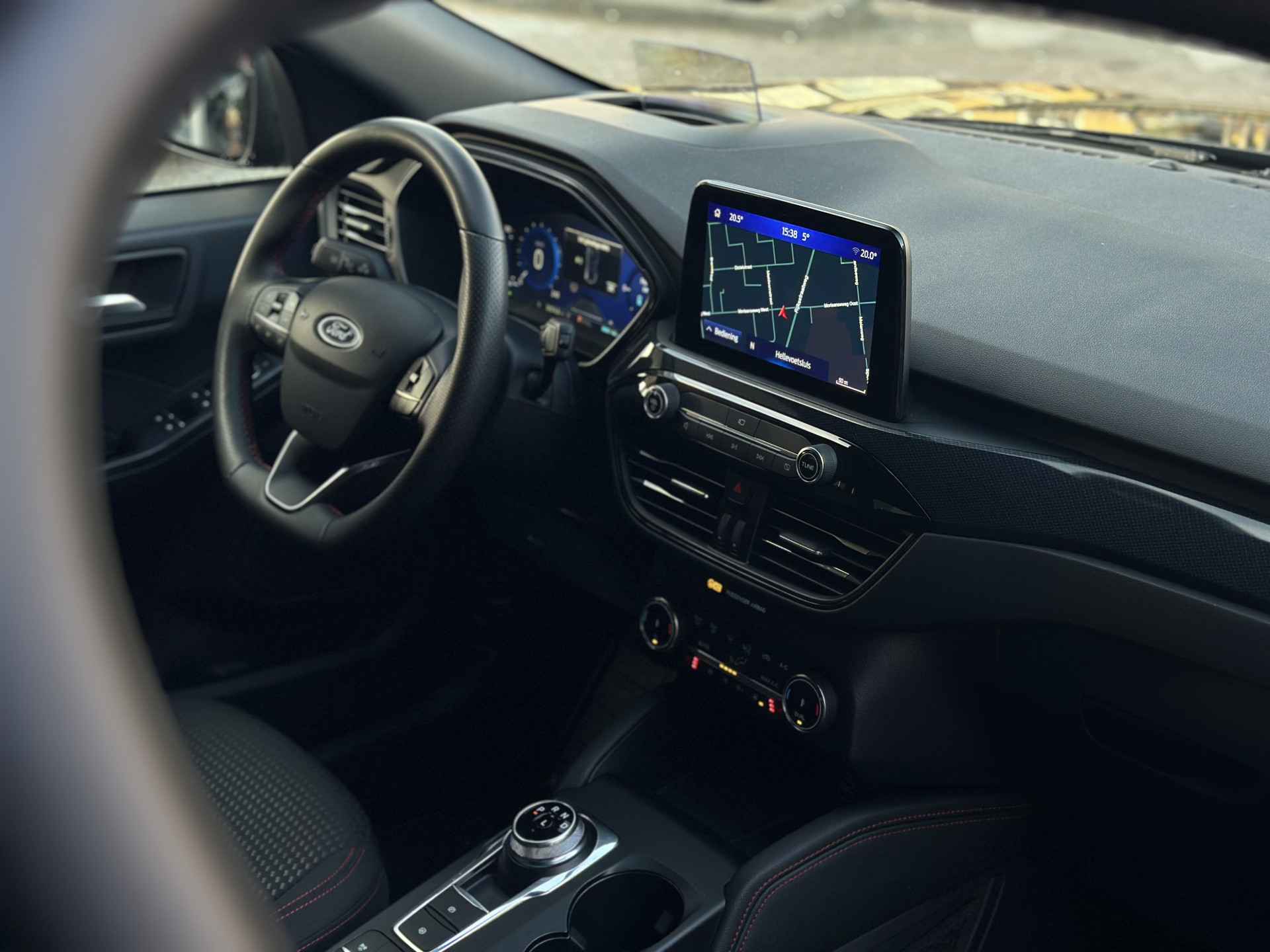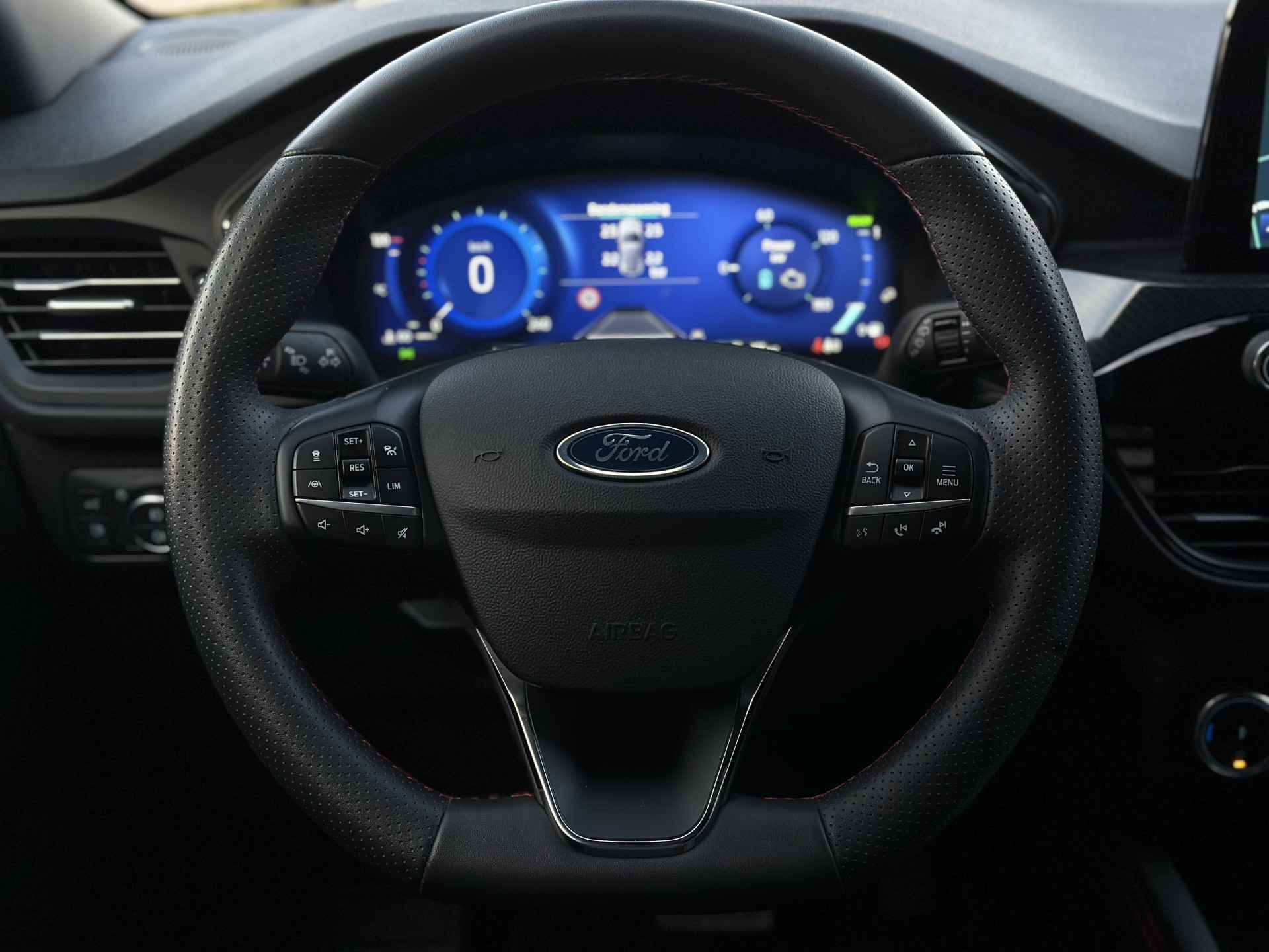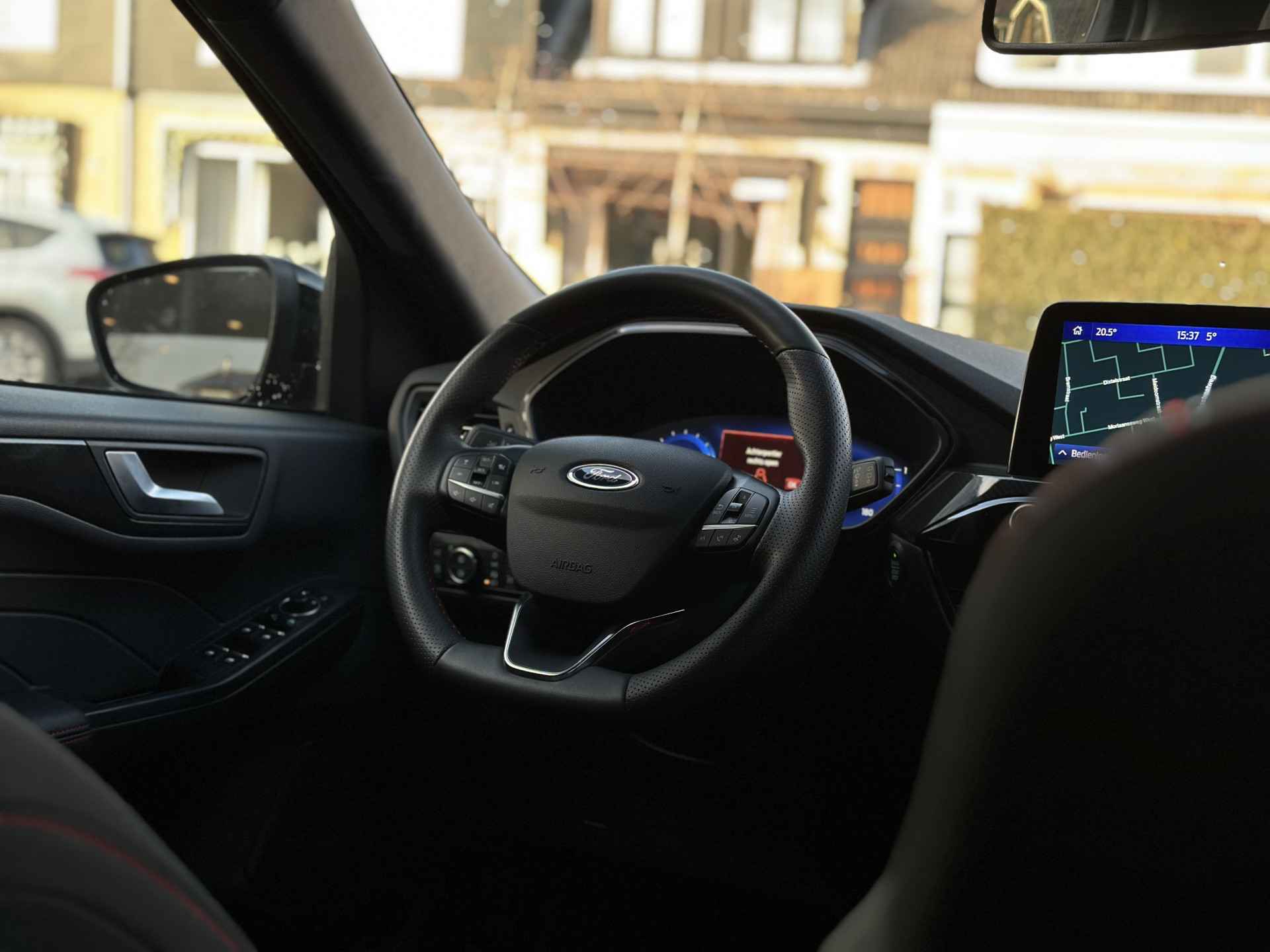 Uw rit wordt comfortabel en veilig gemaakt door het digitale dashboard dat alles projecteert wat u wenst in de digitale wereld van mobiliteit. Nooit meer parkeerschade dankzij de achteruitrijcamera. Met adaptive cruise control houdt de auto zelfstandig afstand tot uw voorligger. Een veiligheidsverhogende optie waarmee u comfortabel onderweg bent. Kilometerstand? Oliepeil? Accuspanning? Allemaal te zien via de app. Overal. Altijd. Dankzij Connected Services. Met spraakbediening of de knoppen op het stuur regelt u het audiosysteem en het full map navigatiesysteem, terwijl u uw blik op de weg gericht houdt. De audio-installatie biedt daarbij glasheldere ontvangst dankzij DAB-ontvangst. De uitrusting van deze Ford is met WIFI-hotspot, achteropkomend verkeer waarschuwing, automatische airconditioning, draadloos opladen, regensensor en keyless entry behoorlijk compleet.