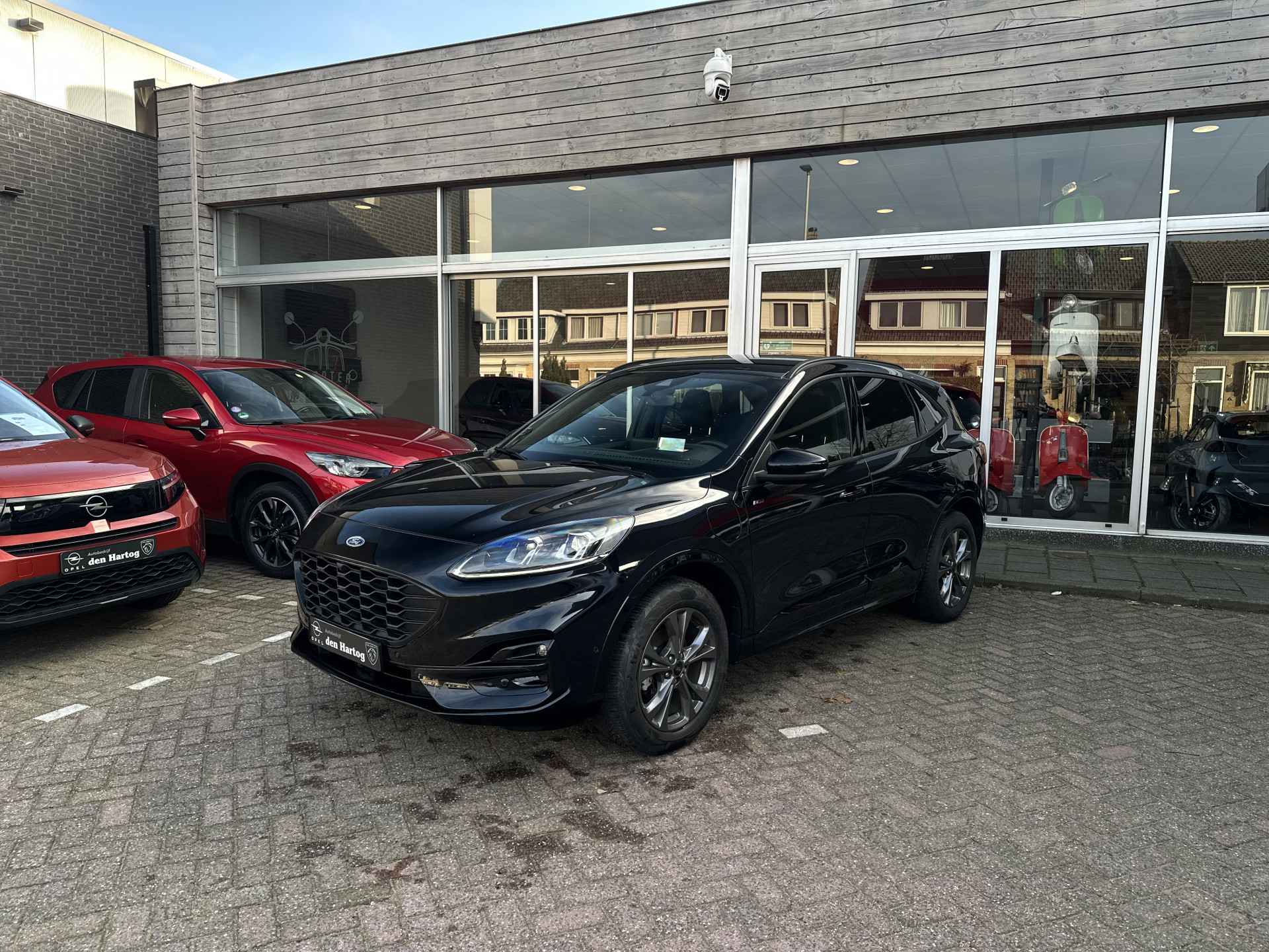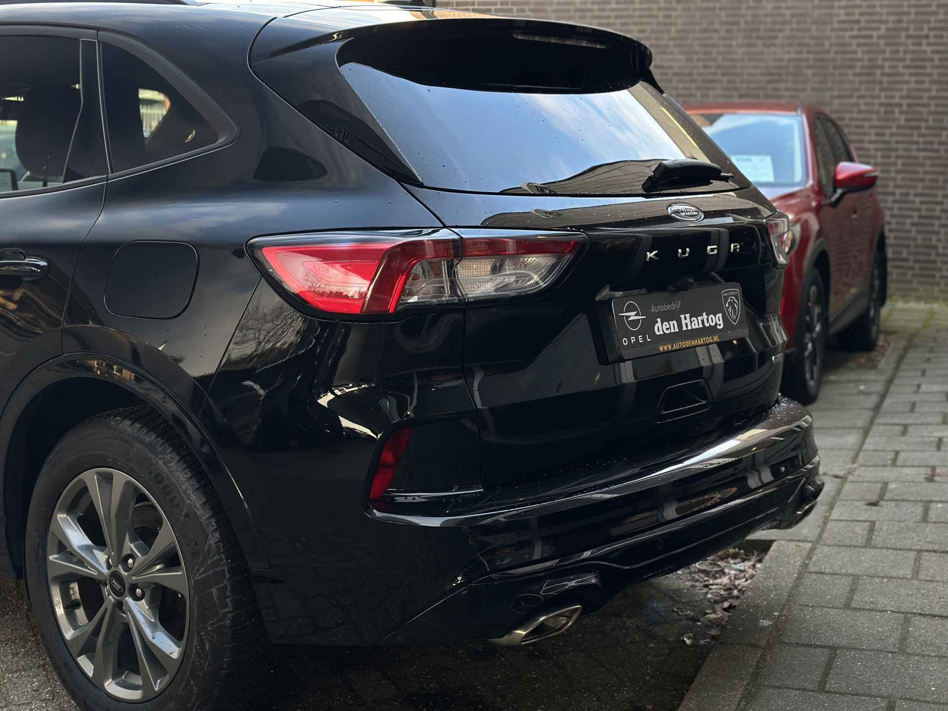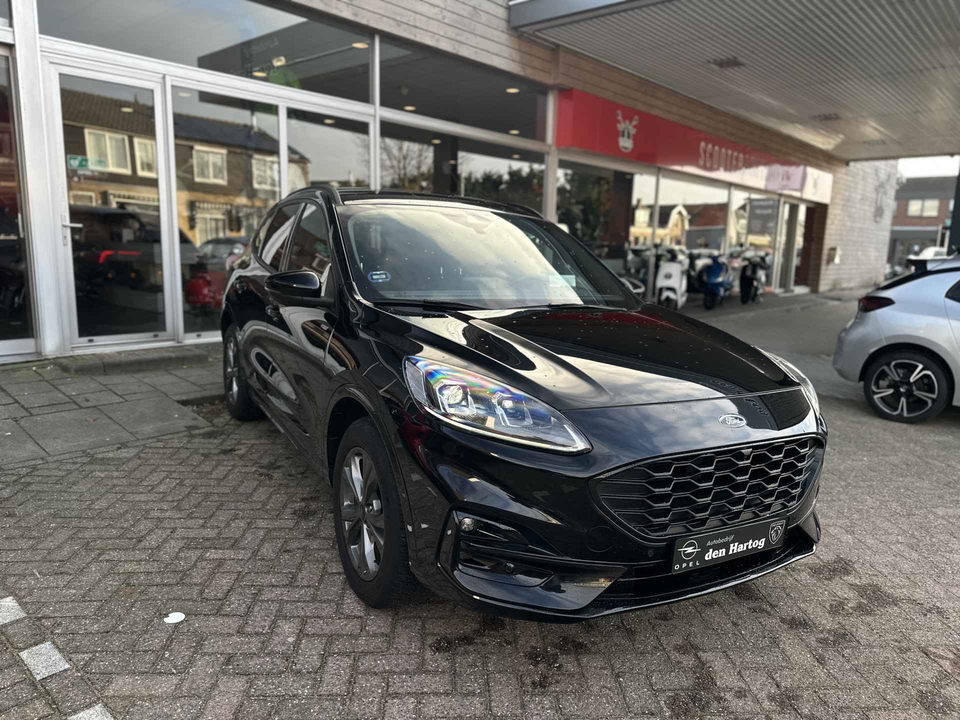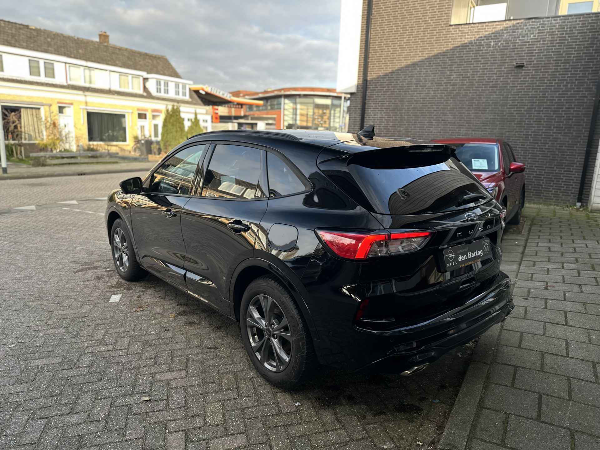 Ford huldigt het principe 'Go Further'. En dat betrekken ze ook op hun auto's zelf. Zuinig in brandstof, innovatieve toepassingen - Ford heeft veel te bieden. Het is een hybride, daardoor is de auto zuinig met brandstof. In de verwarmbare voorstoelen zitten is elke keer een welkom gevoel. Sportief rijden stelt eisen aan een stevige zitpositie voor rijder en bijrijder. Vandaar de strakke sportstoelen! Deze Ford Kuga heeft een verwarmd stuurwiel. Nooit meer koude handen onderweg. U wordt in deze auto ook getrakteerd op 18 inch lichtmetalen velgen, LED koplampen, zwarte hemelbekleding, donker getint glas achter, in delen neerklapbare achterbank en LED-achterlichten.