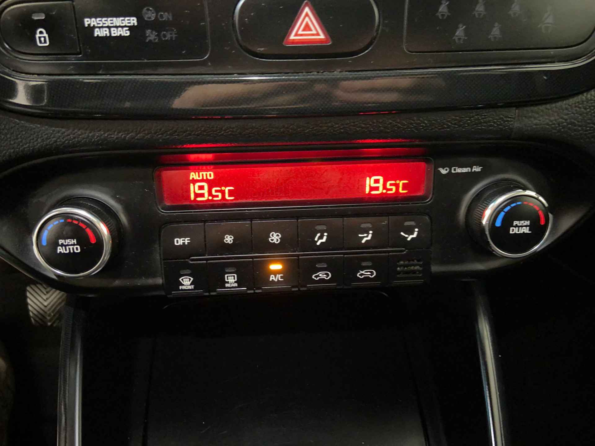 Kommaar-kommaar-kommaar, aldus de achteruitrijcamera. Iedere centimeter vrije ruimte komt haarscherp in beeld. Schadevrij inparkeren maar! Tijdens de rit bedient u het audiosysteem en het full map navigatiesysteem met de knoppen op het stuur. Het spreekt voor zich dat een auto als deze ook van electronic climate control is voorzien. Natuurlijk is een complete auto als deze ook voorzien van sensoren die de omgeving in de gaten houden. Deze Kia heeft niet alleen een automatisch inschakelbare verlichting aan boord, maar ook een regensensor. Niet te snel, niet langzaam maar precies goed: laat dat maar over aan de cruise control. Ook is de Kia uitgerust met: automatisch dimmende binnenspiegel en centrale deurvergrendeling met afstandsbediening.