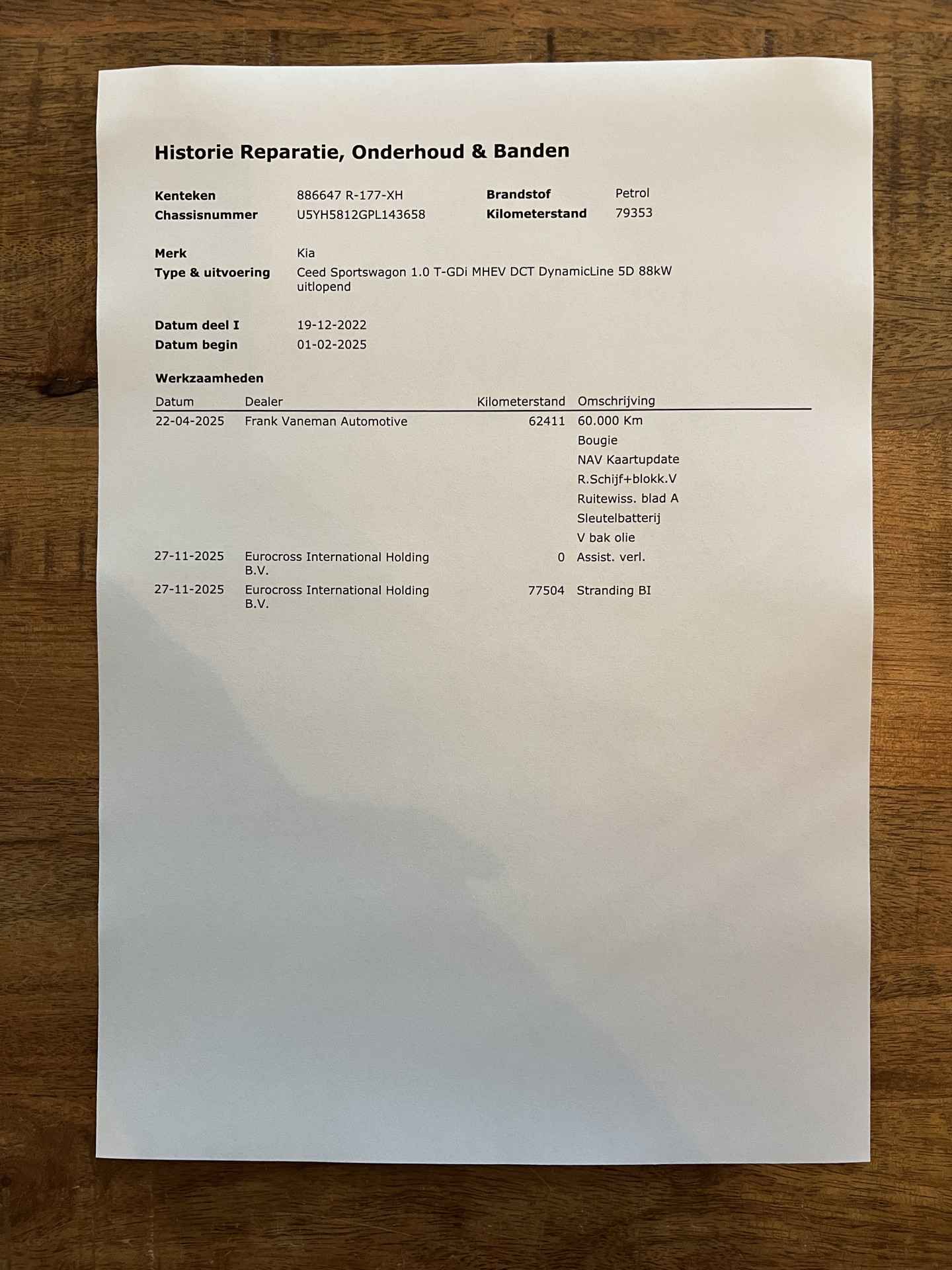 en volledige onderhoudshistorie.